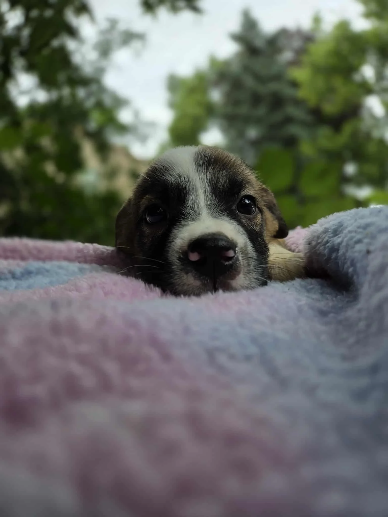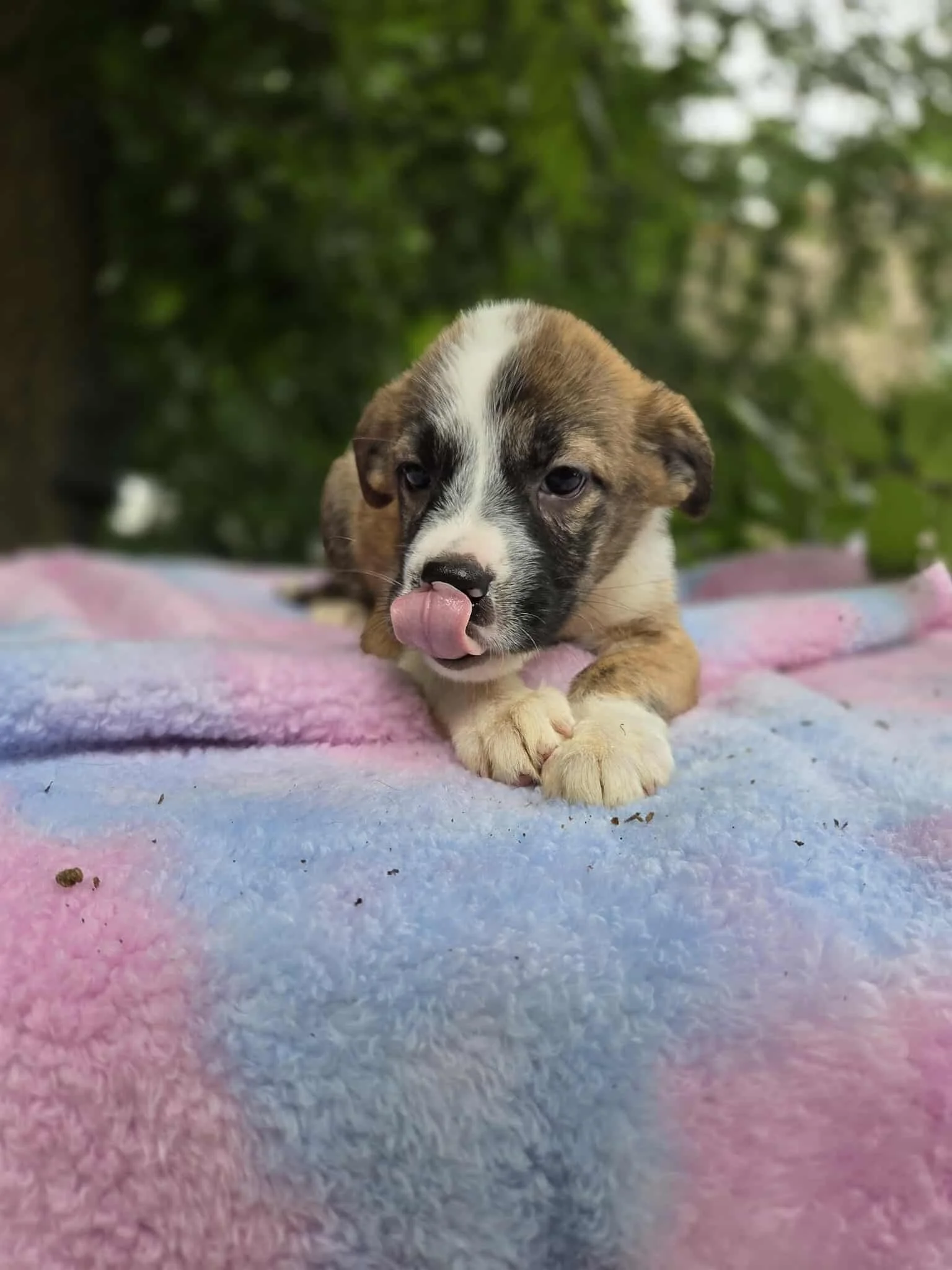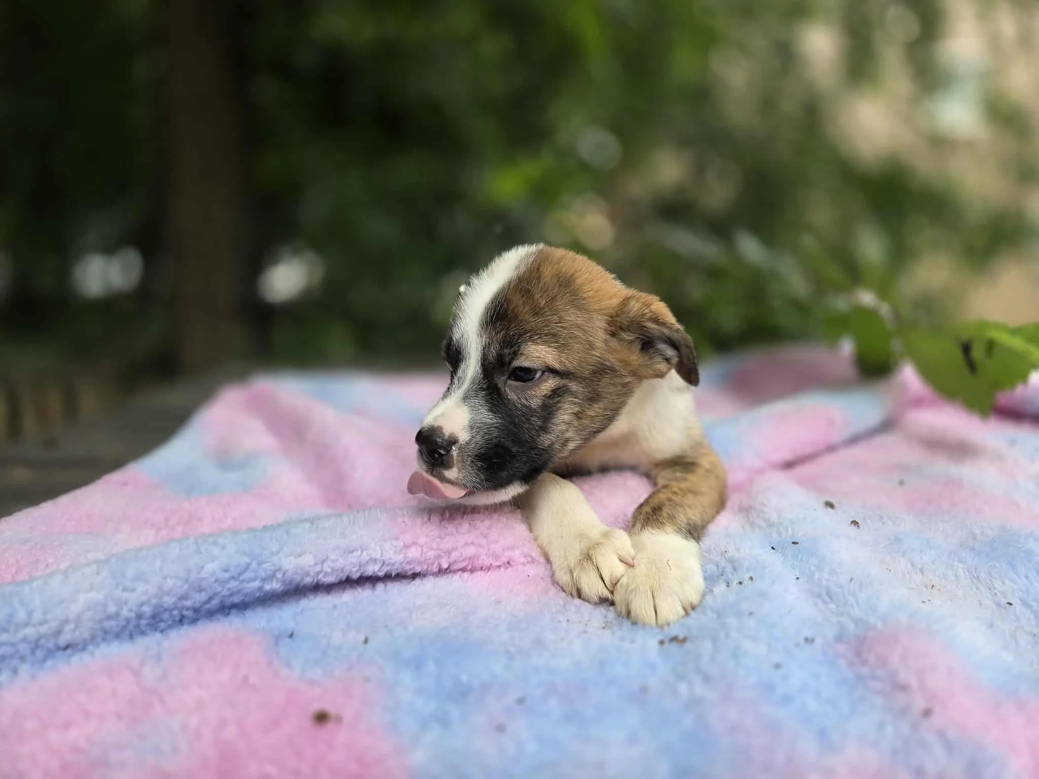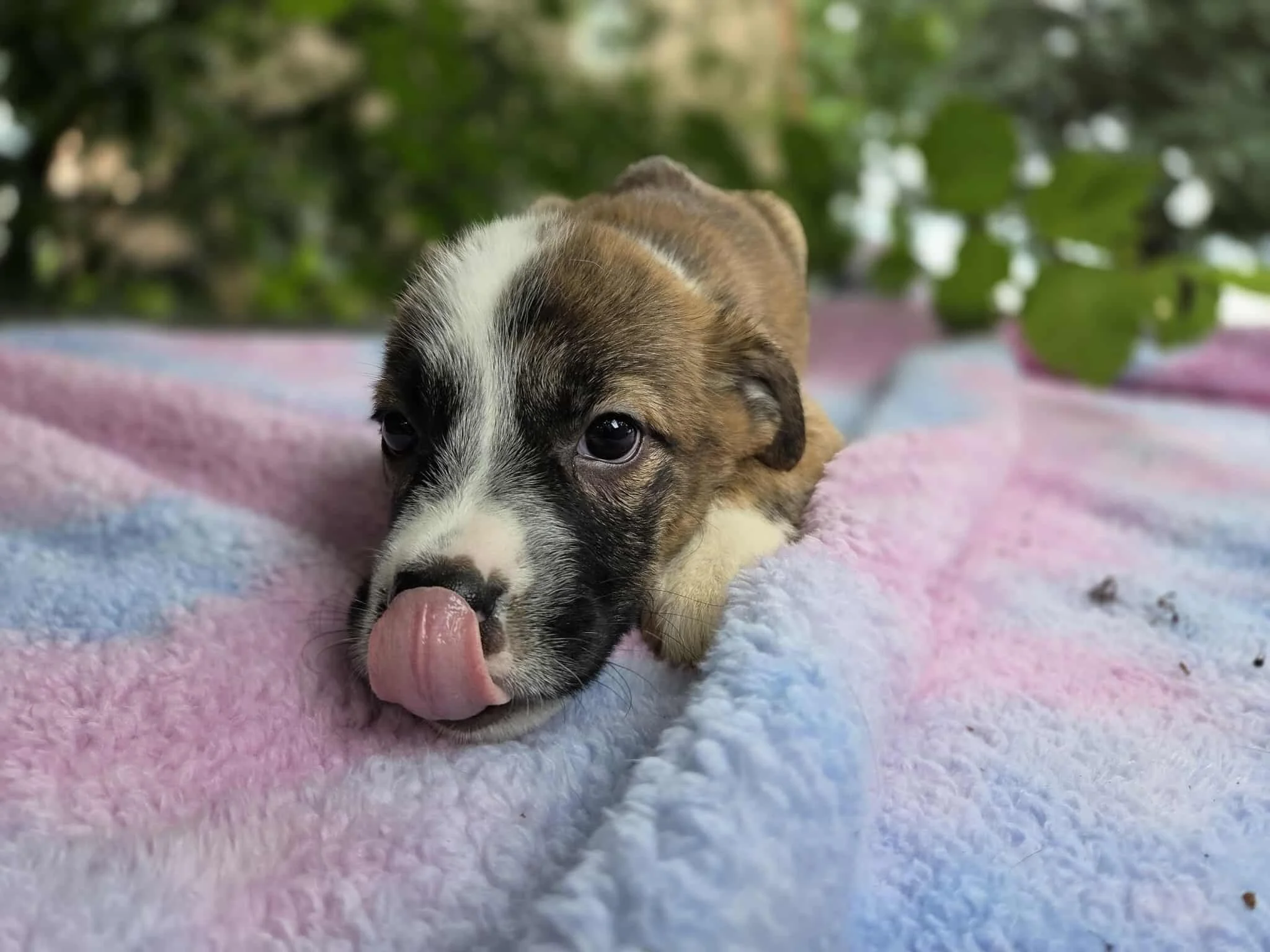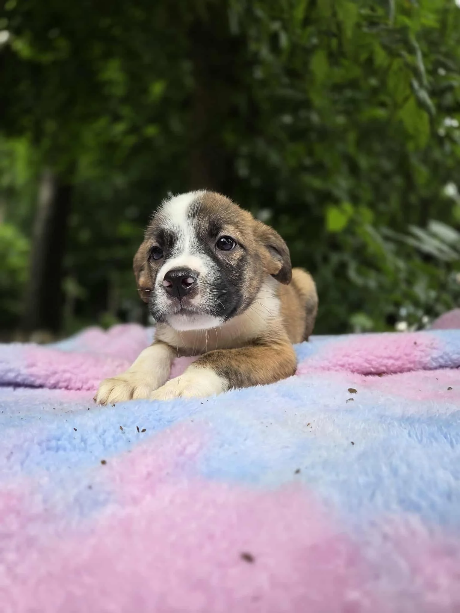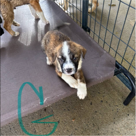 Your guess at breed is as good as ours, but they’re trending to be large mixed breeds with big-dog destinies. They may be pint-sized explorers now, but their future could include backyard zoomies, king-sized couch naps, and plenty of Epic-level adventures.