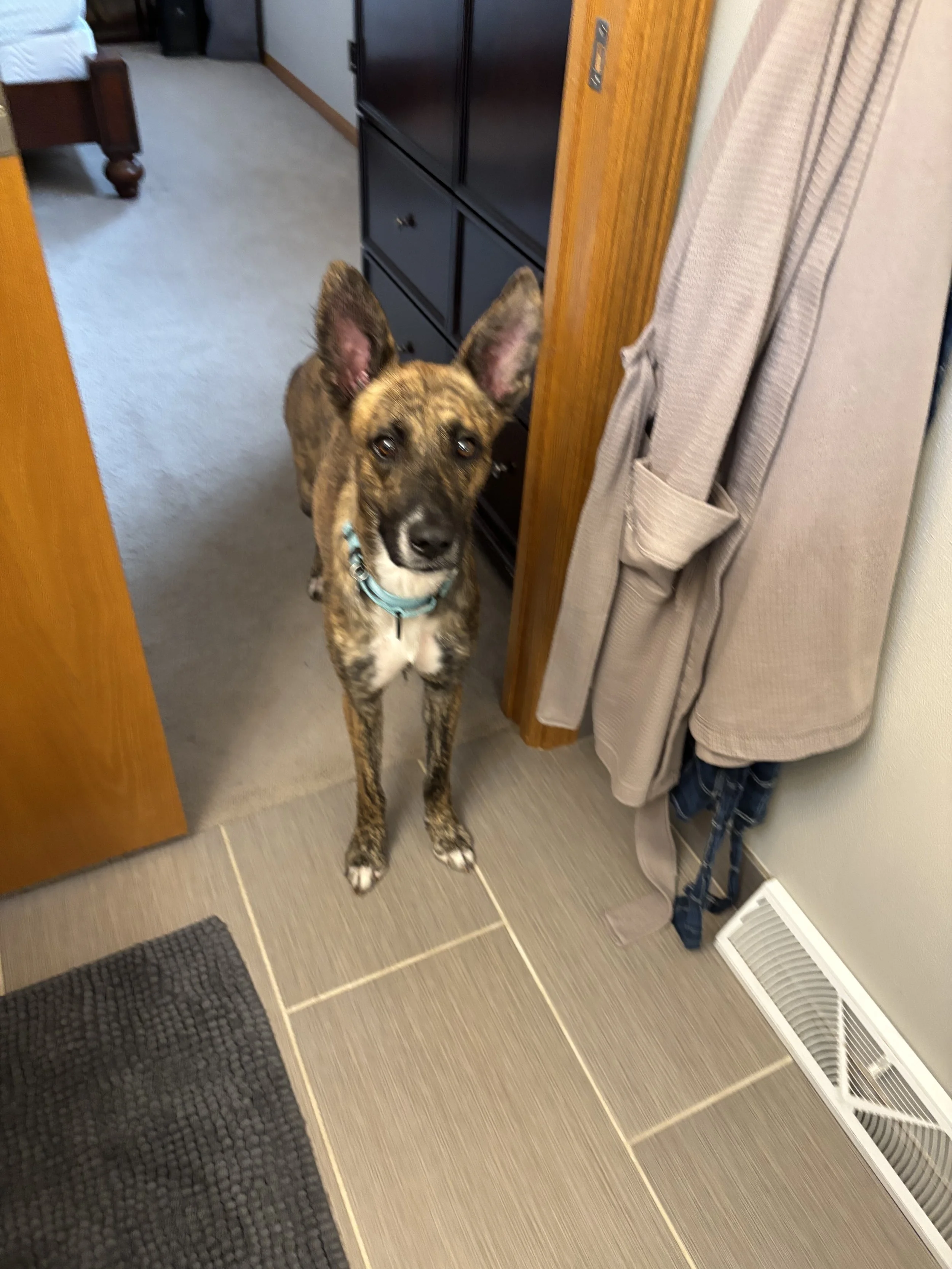 Important heads-up: she’s a world-class counter surfer, so you’ll want to keep food out of reach and maybe install a few baby locks. But here’s the upside — she’s agile, energetic, and would absolutely crush it at agility or dog sports!