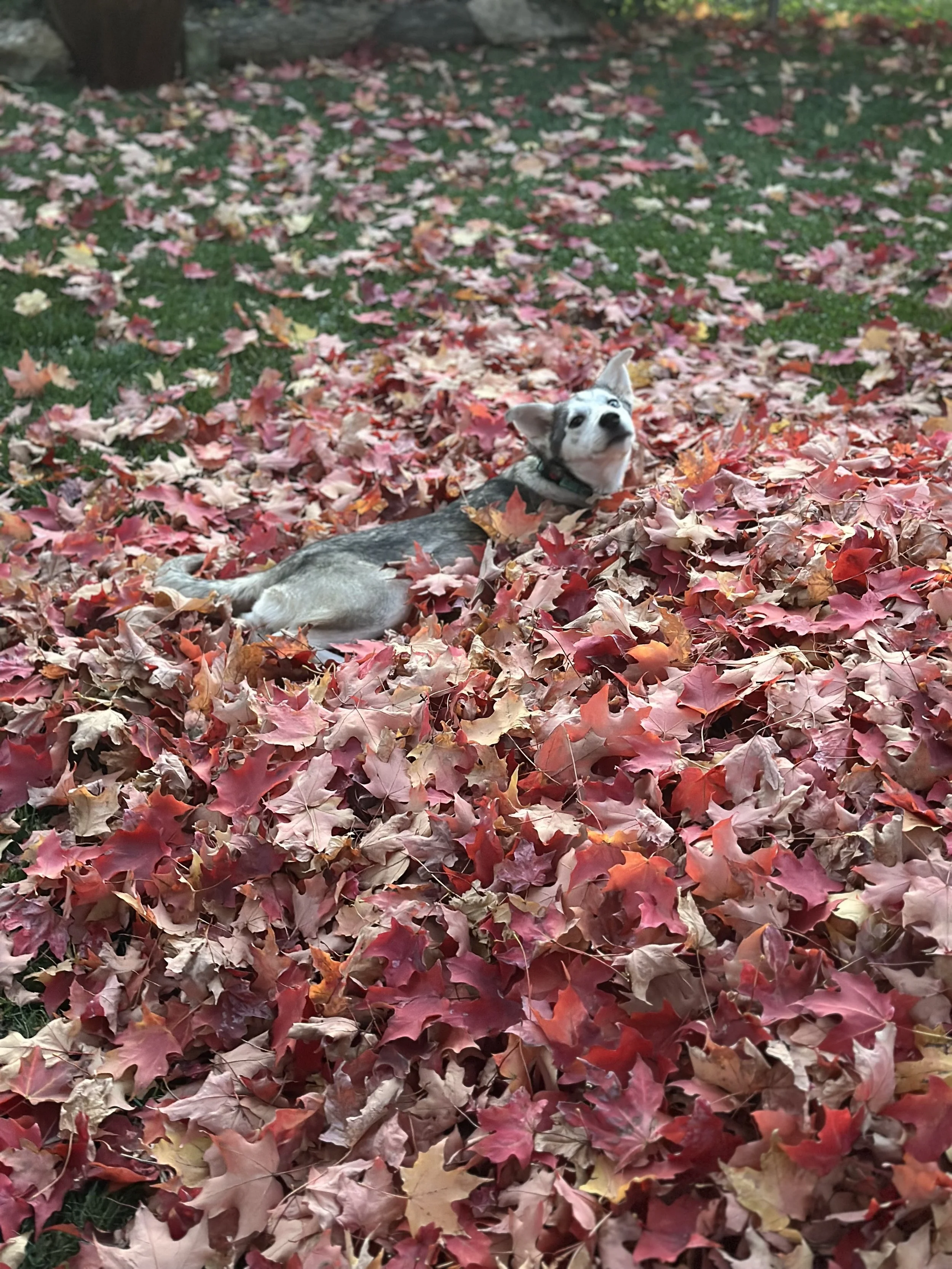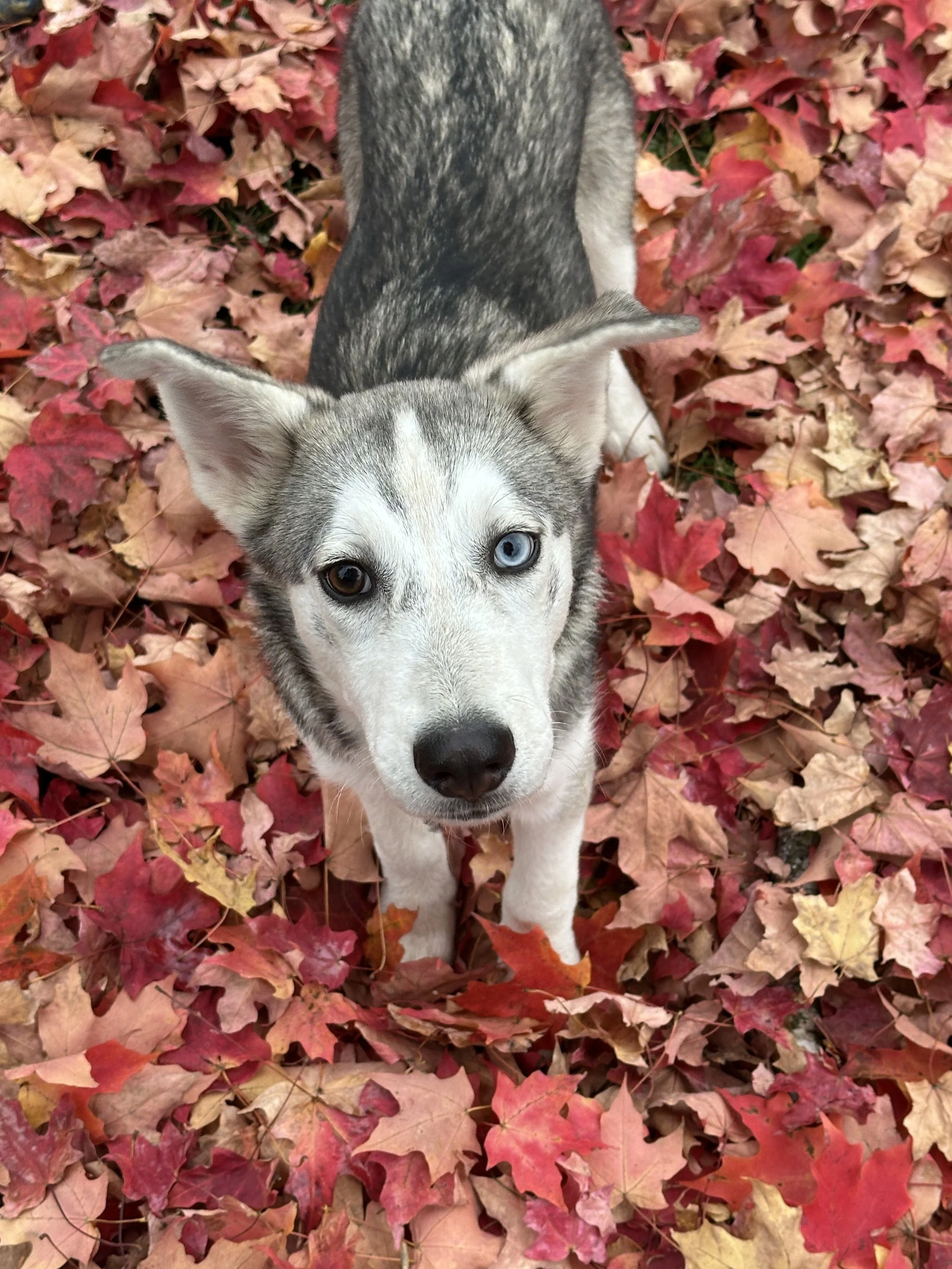 Athena has heard the legends of snow but hasn’t seen it yet, and she cannot wait to live her snow princess dreams. Until then, she’s fully embracing fall: zooming through leaves, wrestling with her dog pals, and soaking up all the cool weather vibes.