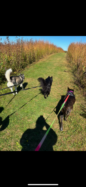 She is friendly meeting new dogs and will give a few sniffs/tail wags but then tends to do her own thing. She prefers lower energy and respectful pups, but has done well with all the dogs she’s met. She will need slower intros to dogs she will be sharing space and toys with, but she gets along great with my 10 month old high energy puppy so she could definitely live with another dog with an owner who is willing to be patient with her and give her the time she needs to adjust to a new space. She would also love being an only pup just as much so she can give you all her love an affection!