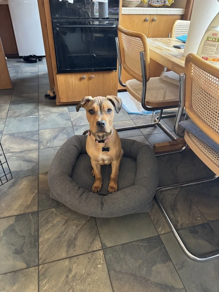 🏡 Training: Crate trained, goes to the back door when needing to potty, sleeps through the night