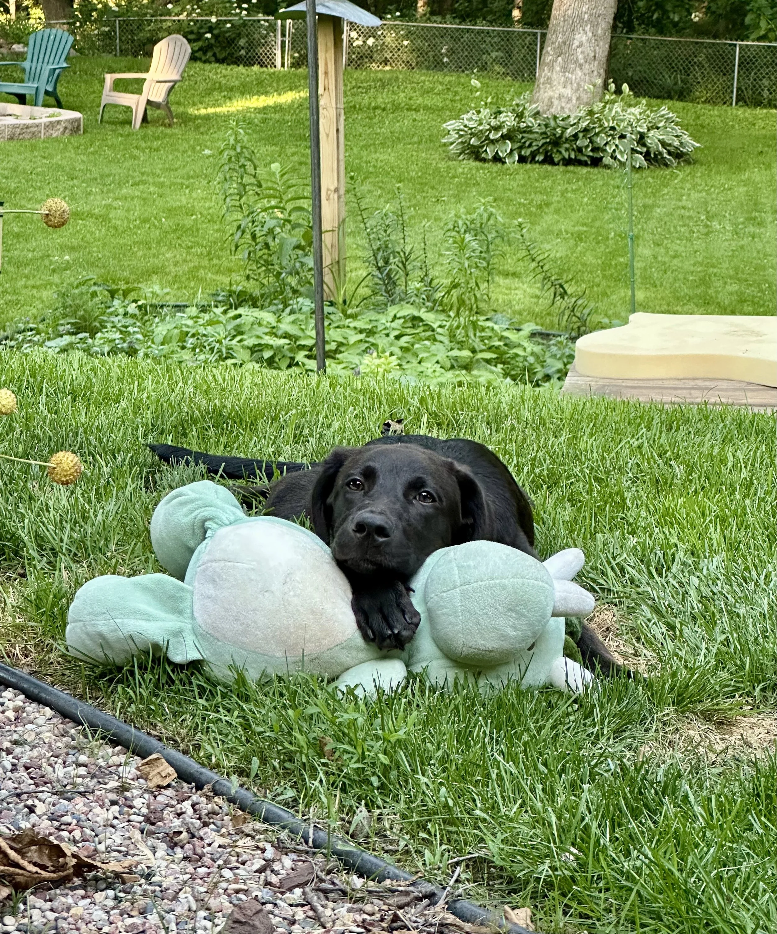 He is working hard on crate and potty training and with a consistent schedule, he will master it in no time! He has typical puppy behaviors and is working hard on his manners. He walks well on a leash and enjoys all the new smells a walk has to offer. He loves to play fetch and chew a bone. Cap is very food motivated and incredibly smart, making training much easier!