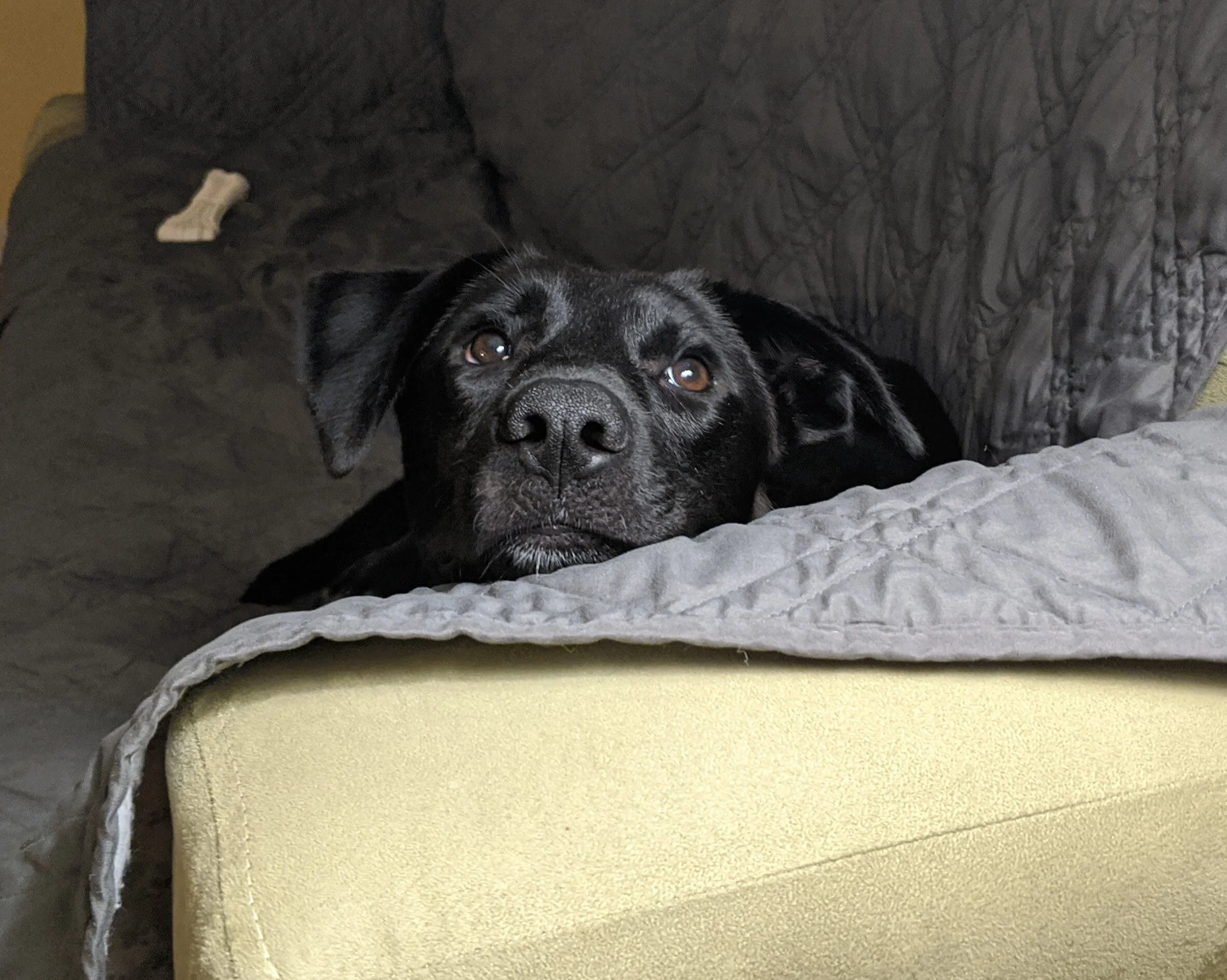Cassie is crated whenever I can't supervise her. If she's left out unsupervised, she will counter surf and try to chew on anything she's not supposed to. She does well in her crate, and she loves getting a frozen Kong treat toy when she goes in!
