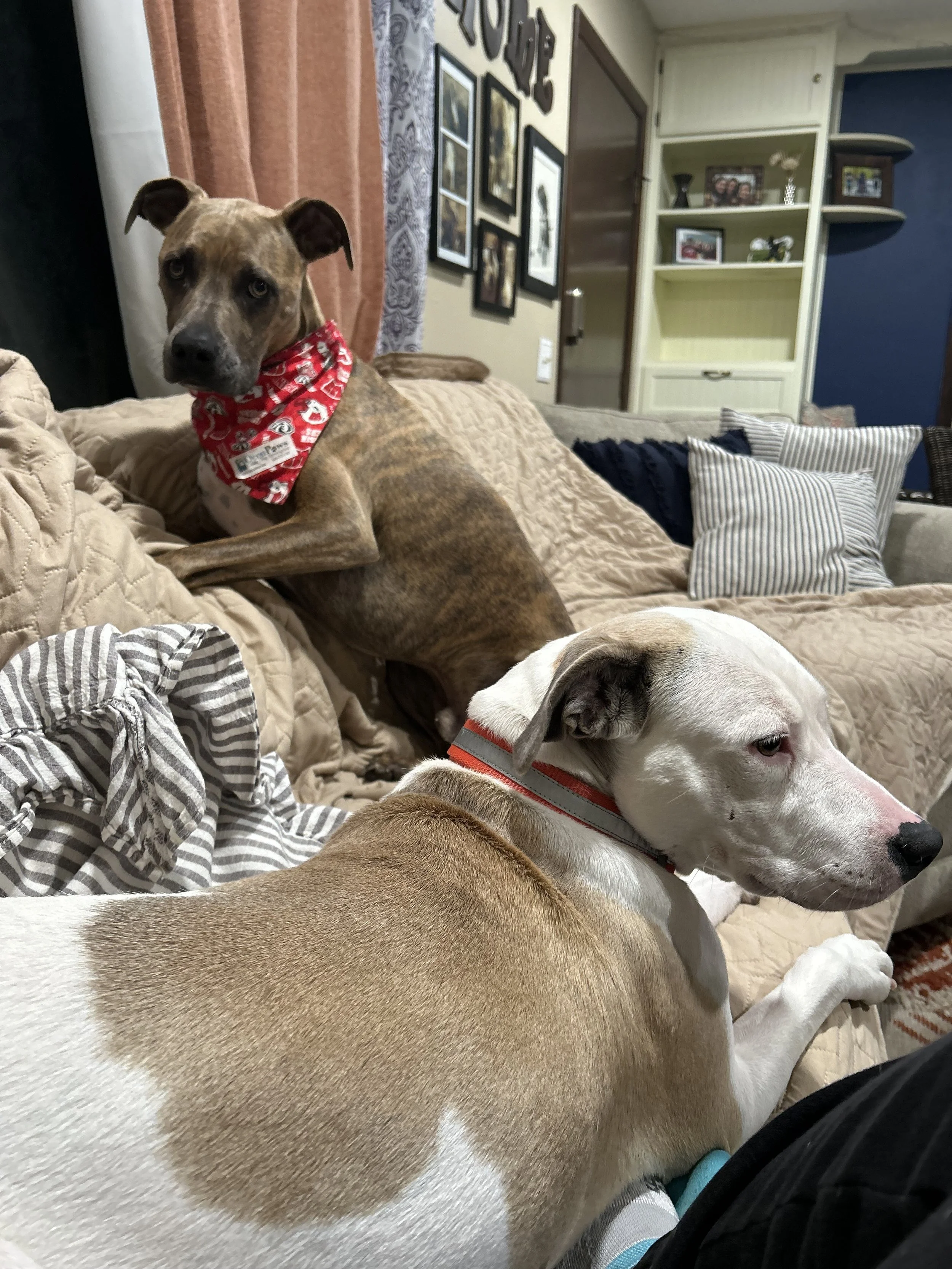 QUICK FACTS: ✔️ Good with other dogs! ✔️ Good with kids! ✔️ Potty trained! ✔️ Crate trained! ✔️ Can free roam when humans are gone! ✔️ Good in the car! ✔️ Walks well on leash! ✔️ Could do well in an apartment! ✔️ Good for beginner dog owner! 🥰Snuggle Pup 🫣 Shy at first