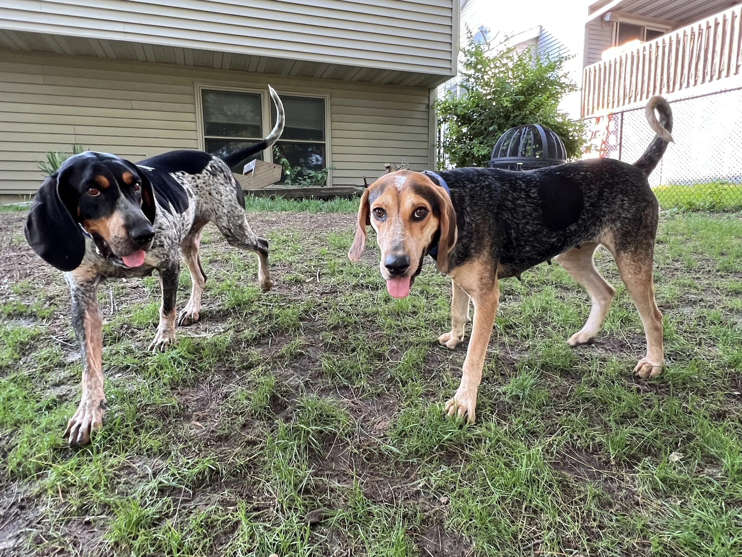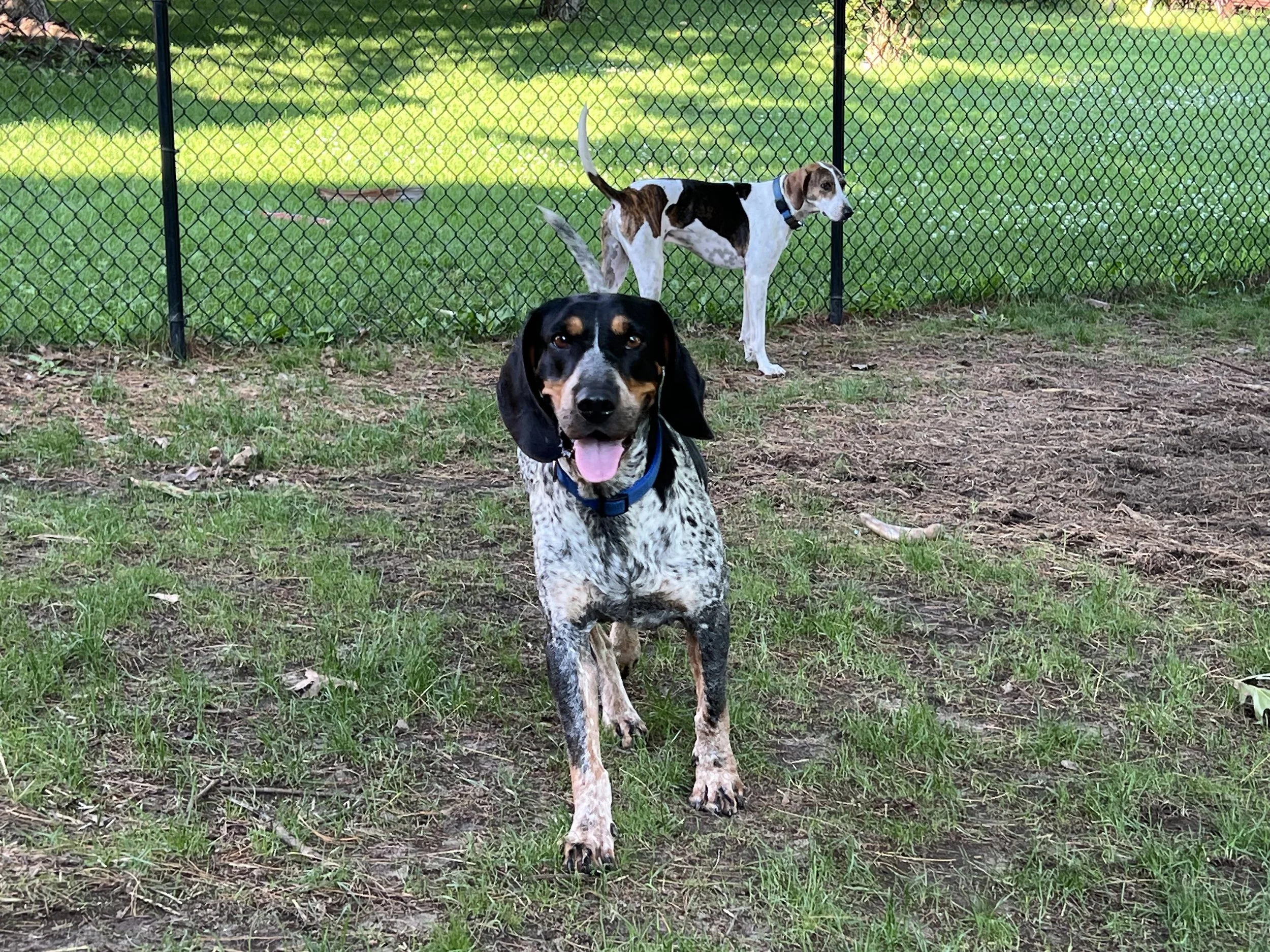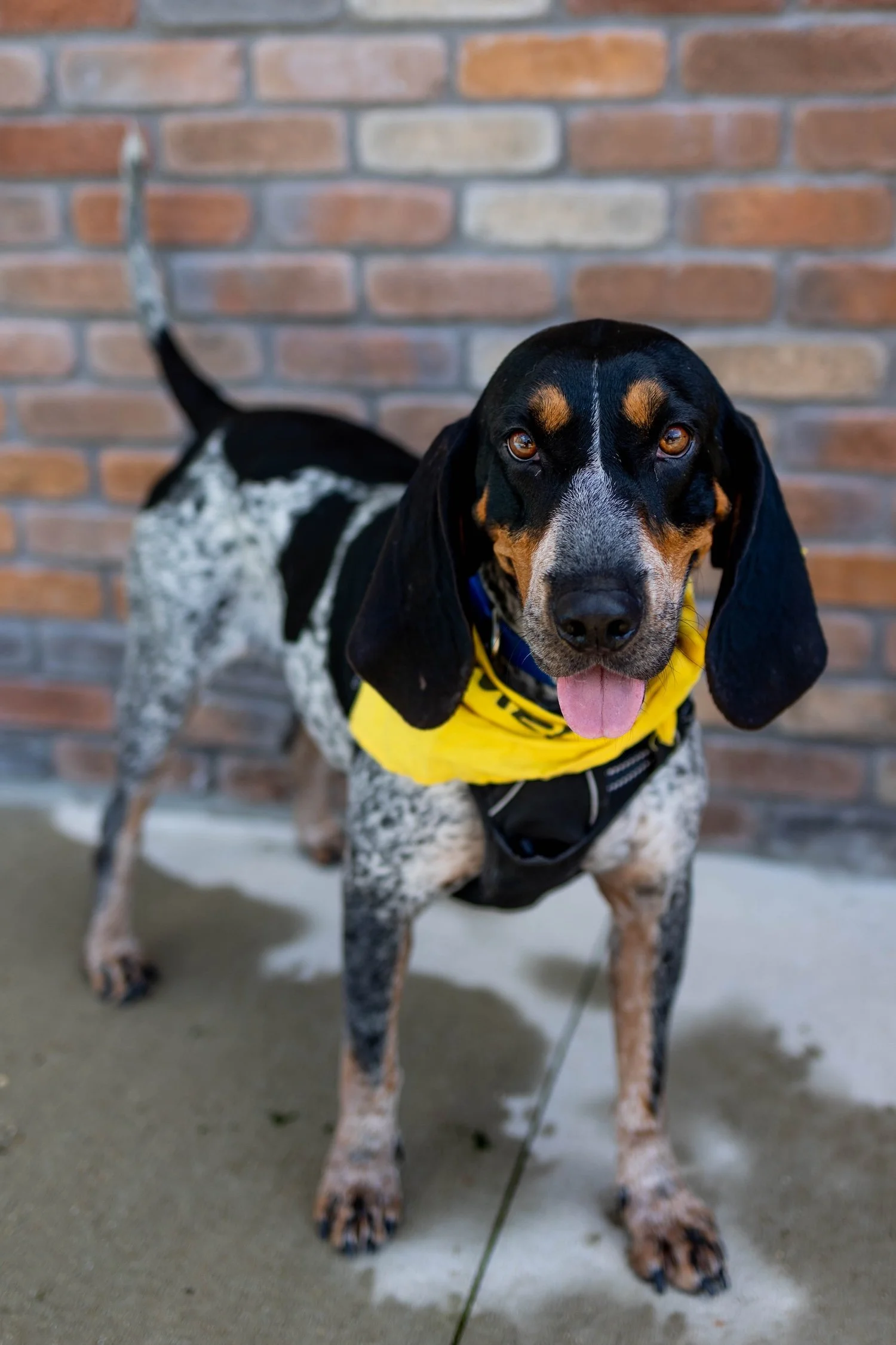 Daisy May is a ~3 year old Bluetick coonhound. She was pulled from a remote kill shelter in Texas before being brought to Wisconsin. This girl is a gorgeous love bug who can be quite goofy at times. She loves to play, go for walks and then cuddle at night when you are ready to settle down.