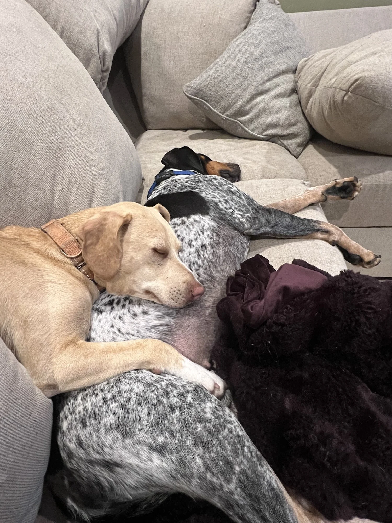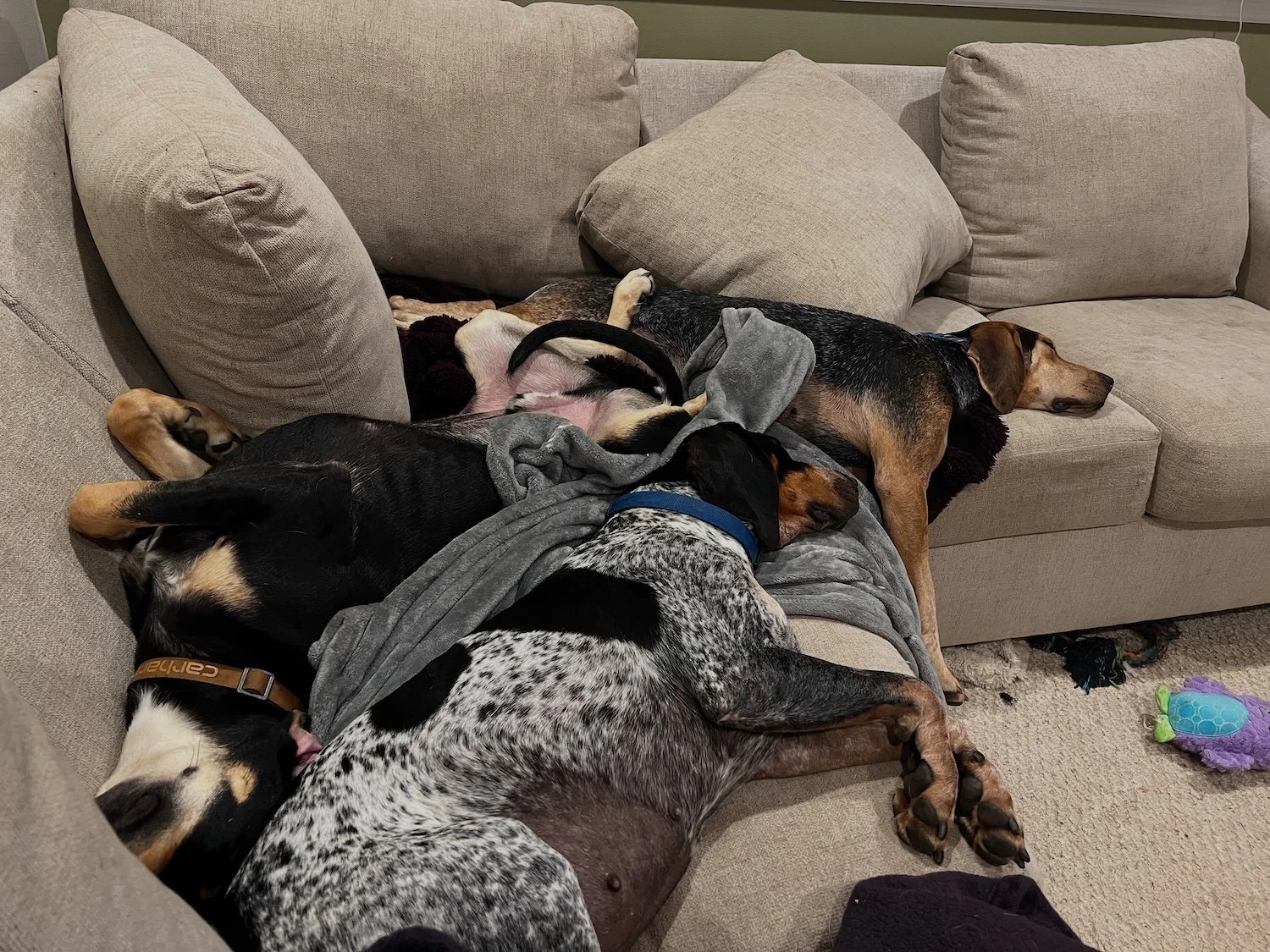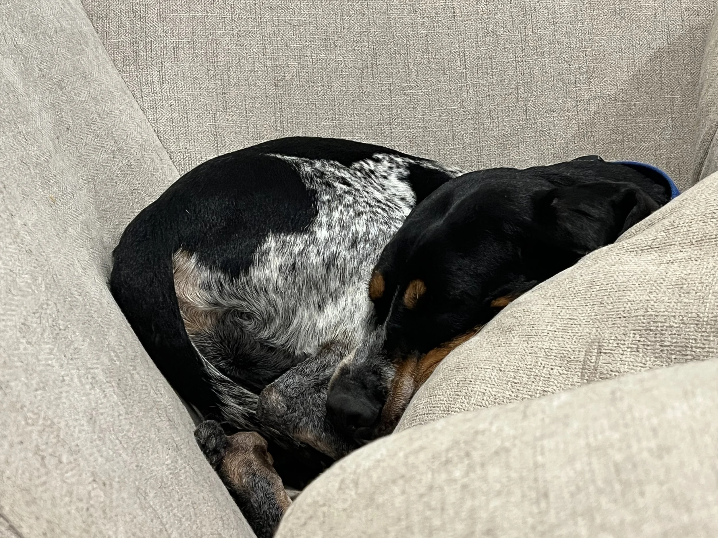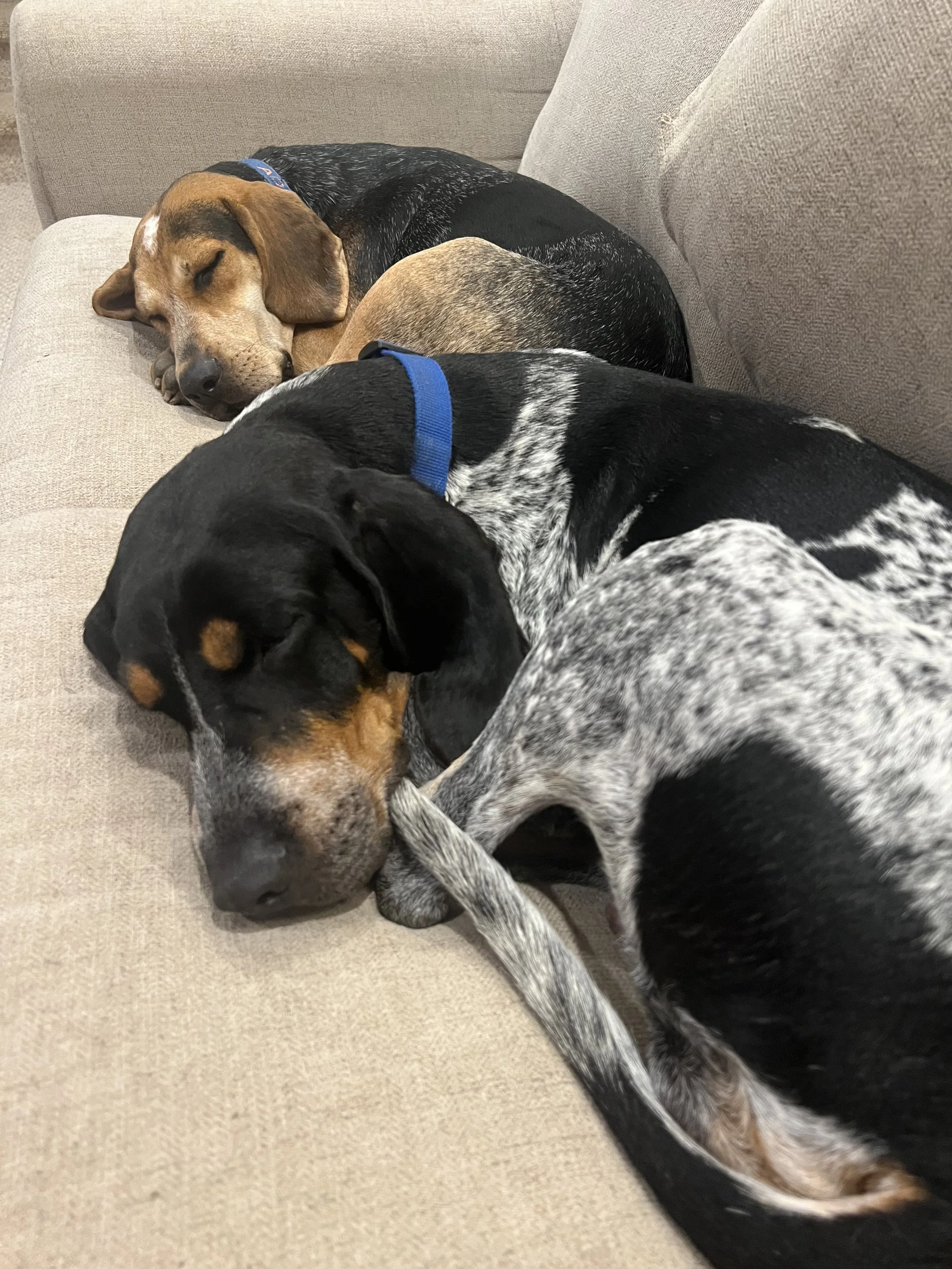 Daisy May is a ~3 year old Bluetick coonhound. She was pulled from a remote kill shelter in Texas before being brought to Wisconsin. This girl is a gorgeous love bug who can be quite goofy at times. She loves to play, go for walks and then cuddle at night when you are ready to settle down.