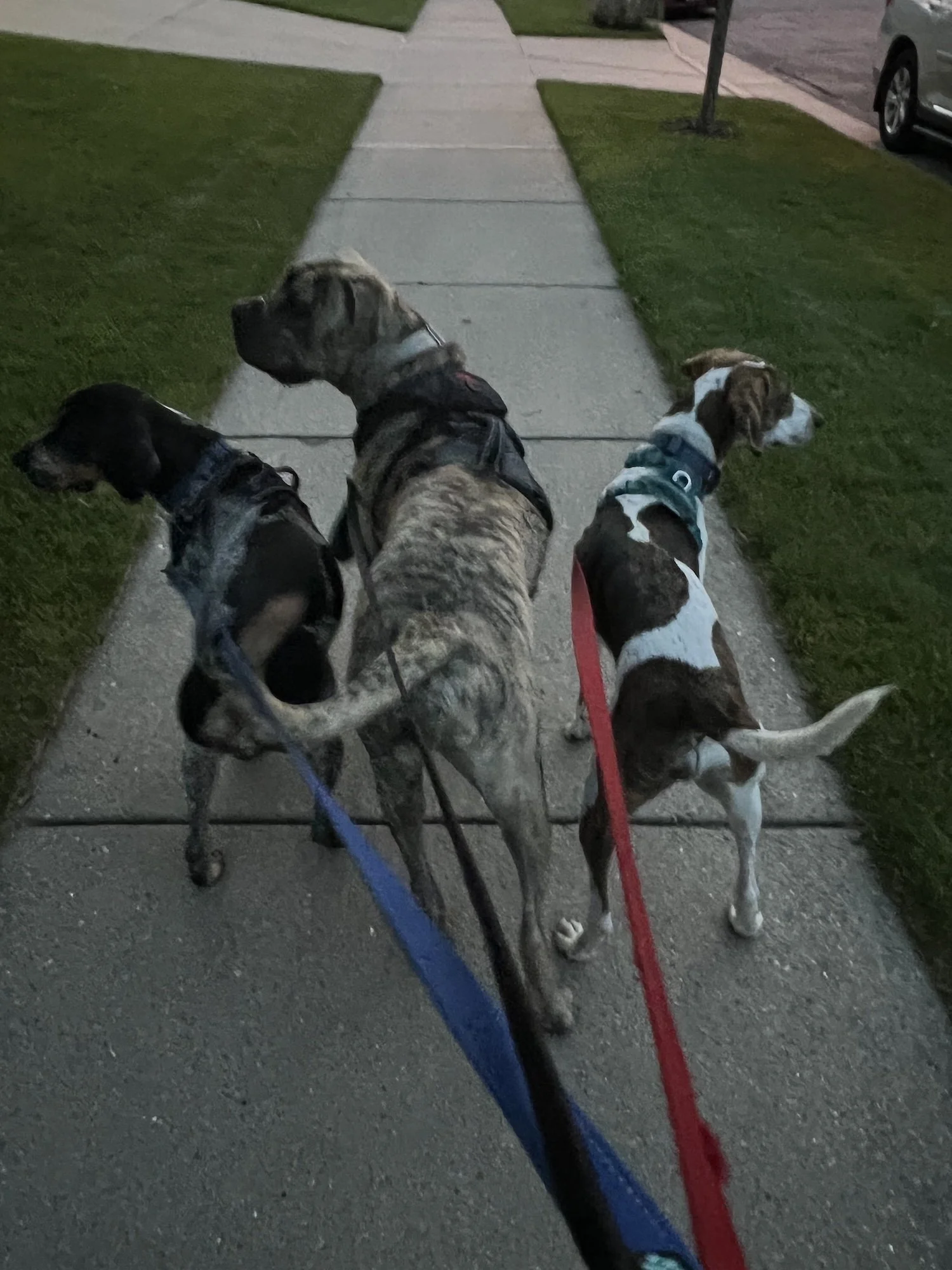 Daisy May is a medium energy level pup who loves to play with the dogs in her home. She enjoys going on a daily 1.25 mile walk with her pack or individually. Bonus, because she is a hound scent games are also a great option to tire this beauty out!