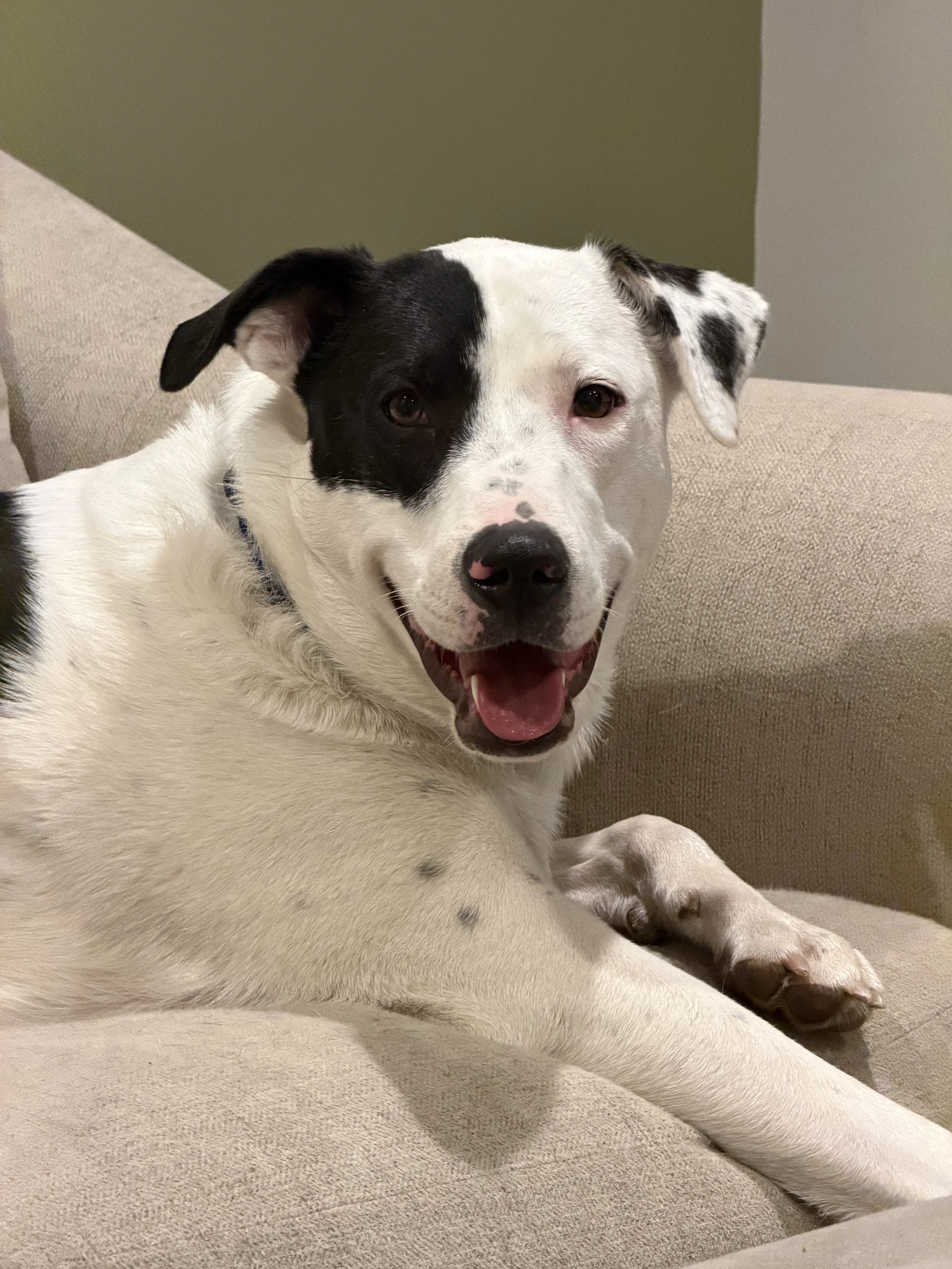 Demo is a 1-year-old mixed-breed dog, possibly a Pyrenees mix. He comes to us from our Alabama partner, where he was found as a stray. He had minimal human interaction while being a stray. Because of this, Demo needs a patient owner who will let him warm up on his own terms. Demo loves other dogs and is truly a dog’s dog.