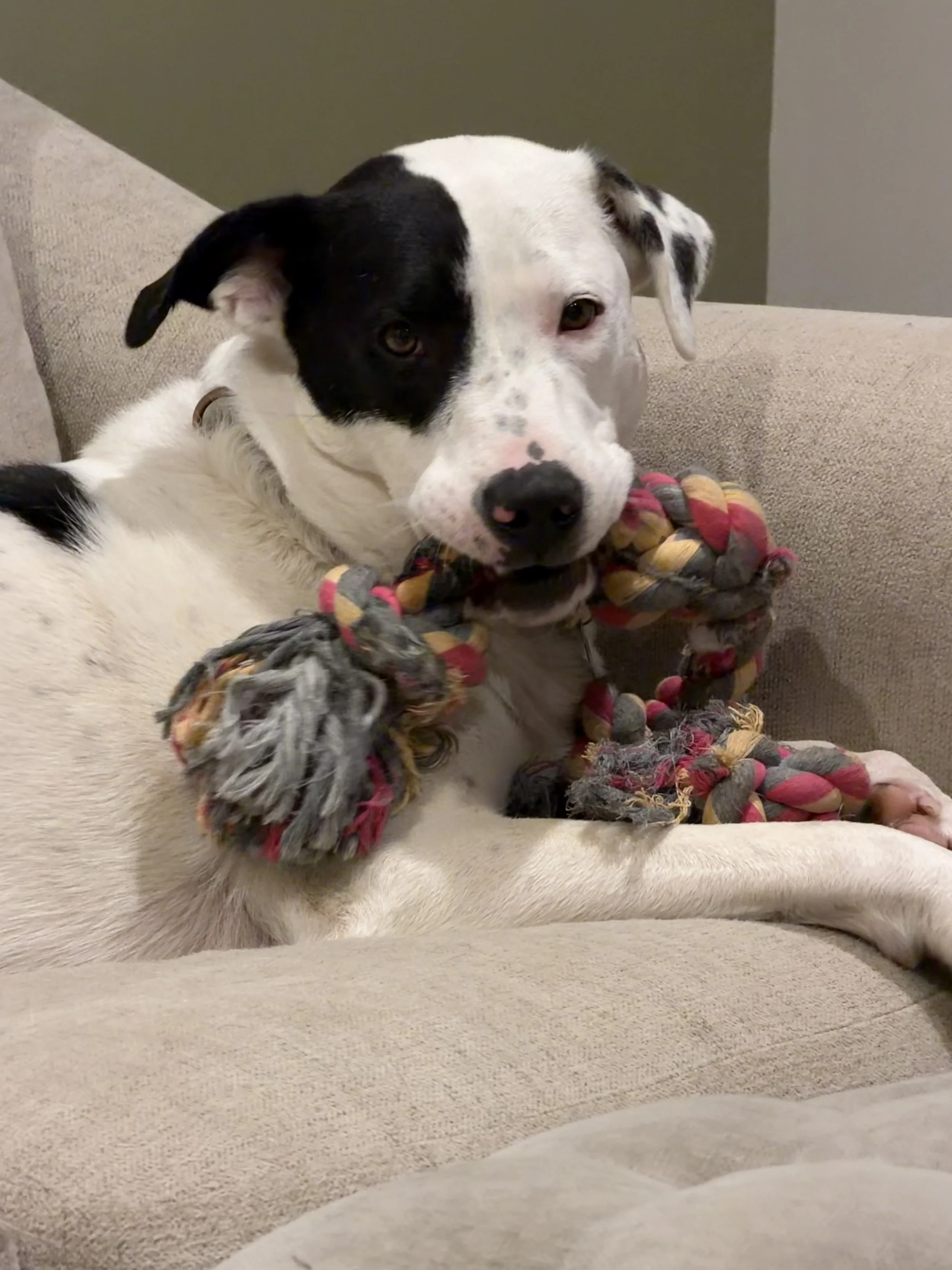 QUICK FACTS: 🐕Dog friendly 🏠House trained 🧸Loves to play 🫣Shy at first