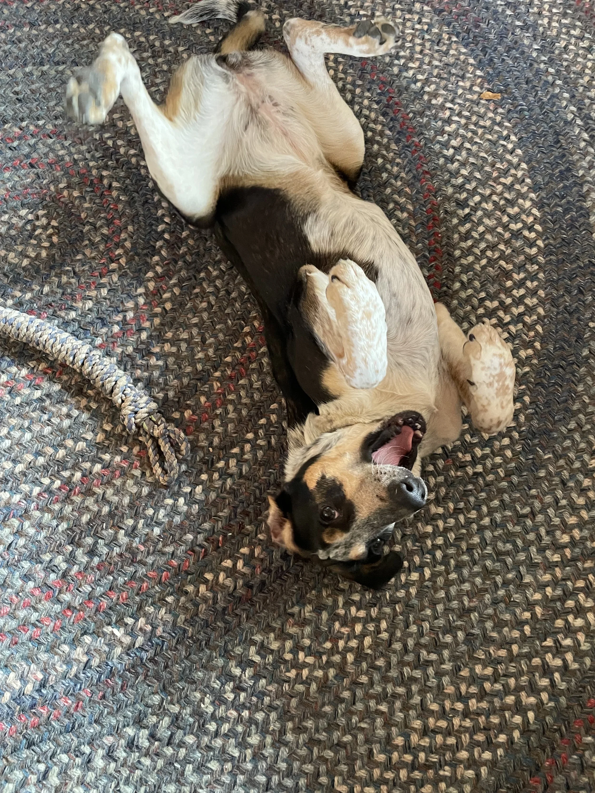 Her favorite things are belly rubs, petting her soft coat , velvety ears and playing chase in the fenced yard with her newest pal Shylo.