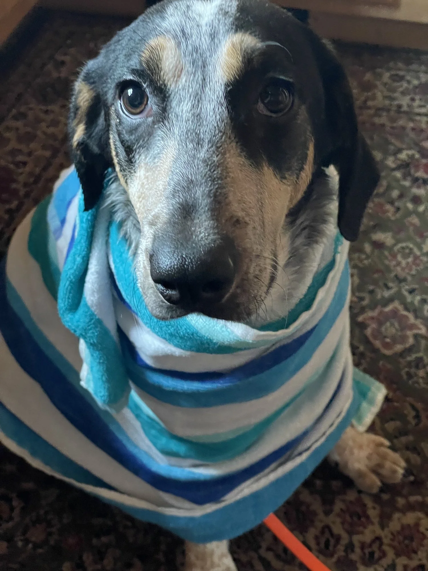 Dixie is tolerant of her feet being touched and nail trimming has had baths with peanut butter snacks and even a trip to the veterinary office.