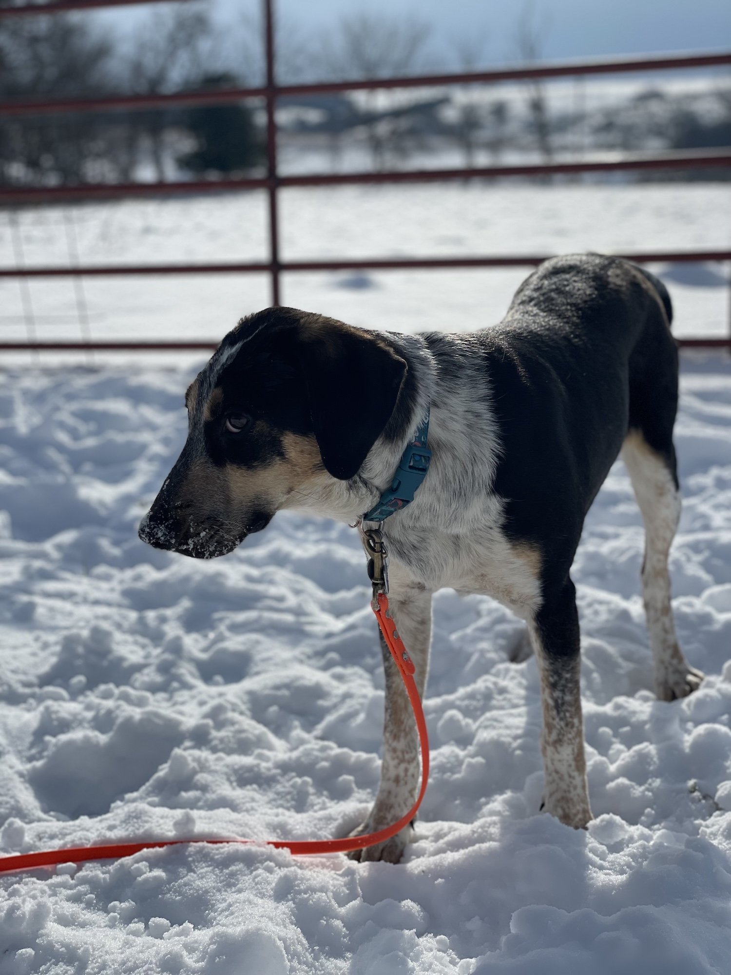 Dixie is a sweet, 8 month old, hound mix, weighing in at forty one pounds.