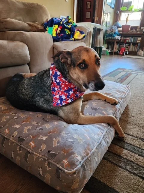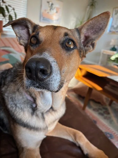 Edith is the definition of a love bug. When an animal control officer in Texas opened his truck door for her, Edith hopped right in like it was an engraved invitation for snuggles! Found underweight as a stray, Edith has clearly settled right back into home life: she is potty trained, a champion couch potato, walks well on a leash and politely sits at the car or garage door when she’s ready to go on an adventure. She gets along great with her medium sized foster brother (they love to wrestle!), and has met a few other dogs at breweries and events who she mostly left alone in favor of humans. She loves to be held like a baby and to get head and neck scratches, and will lean her whole body into yours to make it happen. If you are looking for an adult dog with so much love to share, Edith is your girl!
