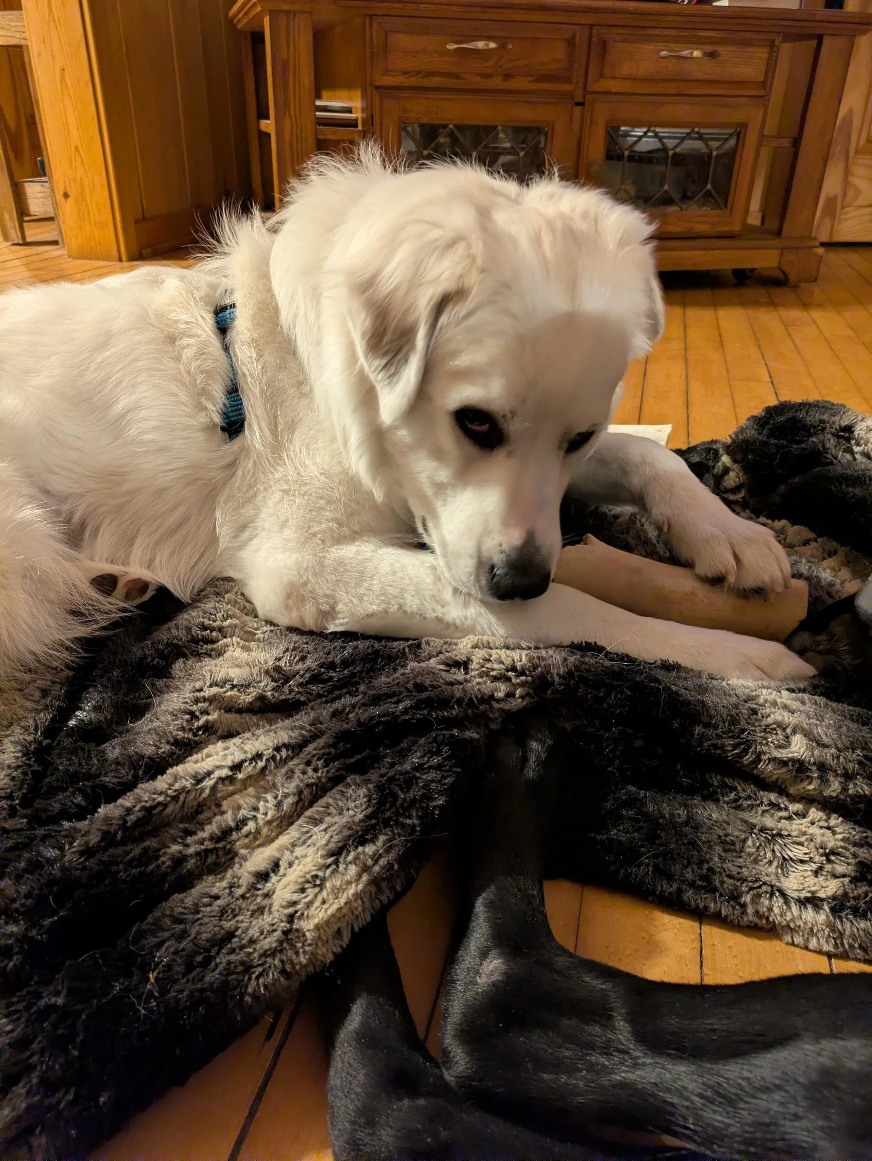 Eira loves the company of other dogs and gets along wonderfully with cats, making her an easy fit for just about any family. True to her breed, she’s calm, loyal, and affectionate — the kind of companion who watches over her loved ones with quiet devotion.