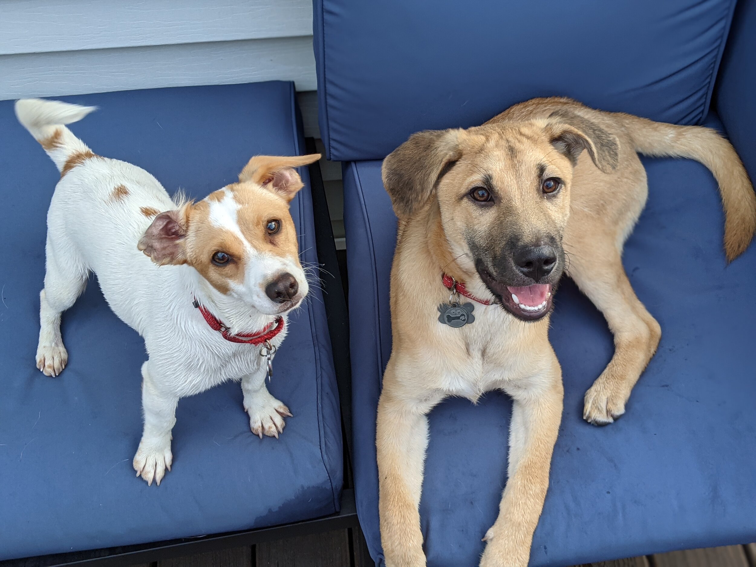 Elliott has done amazing with potty training. He hasn't had any accidents in the house in the week he has been here. We do keep him on a pretty strict schedule to prevent accidents. He goes outside right away after being let out of the crate, naps or bouts of heavy playtime. He was initially a little antsy in the crate but has settled in well to a crate routine while I work. He is used to being crated up to four hours at a time with a long break at lunch to get his wiggles out. He settles in quickly and is mostly quiet. He will fuss a bit when he hears things around when he is crated. He will also bark when he isn't crated and hears things outside or in neighboring yards. For this reason, he probably wouldn't do well in a living space with shared walls.