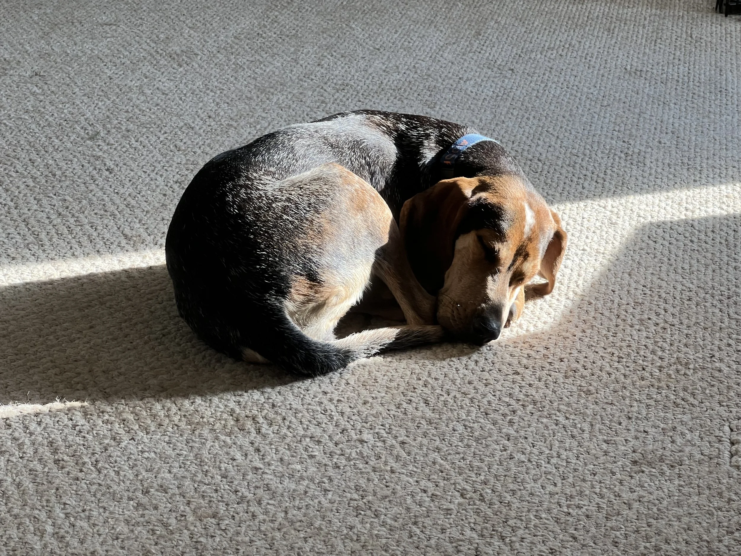 If she is the only dog in the household she will not be ok with a walk every 3 days and she will require more exercise. She did a really good job while at doggy daycare so that is an option for this beauty. Flow is a typical hound which means she will exercise and go all day long if you want her too. Hounds are natural athletes and love to be out and about.