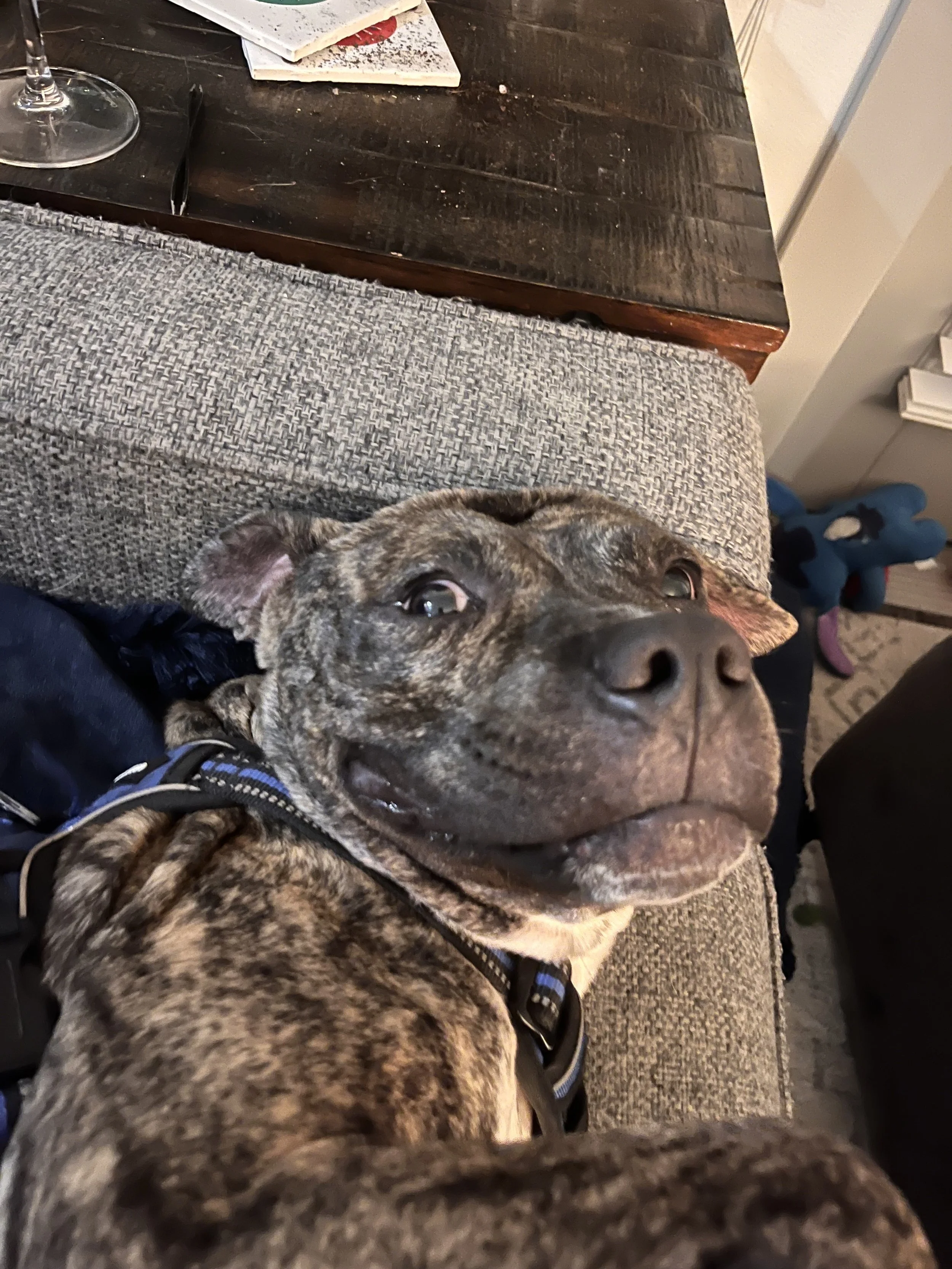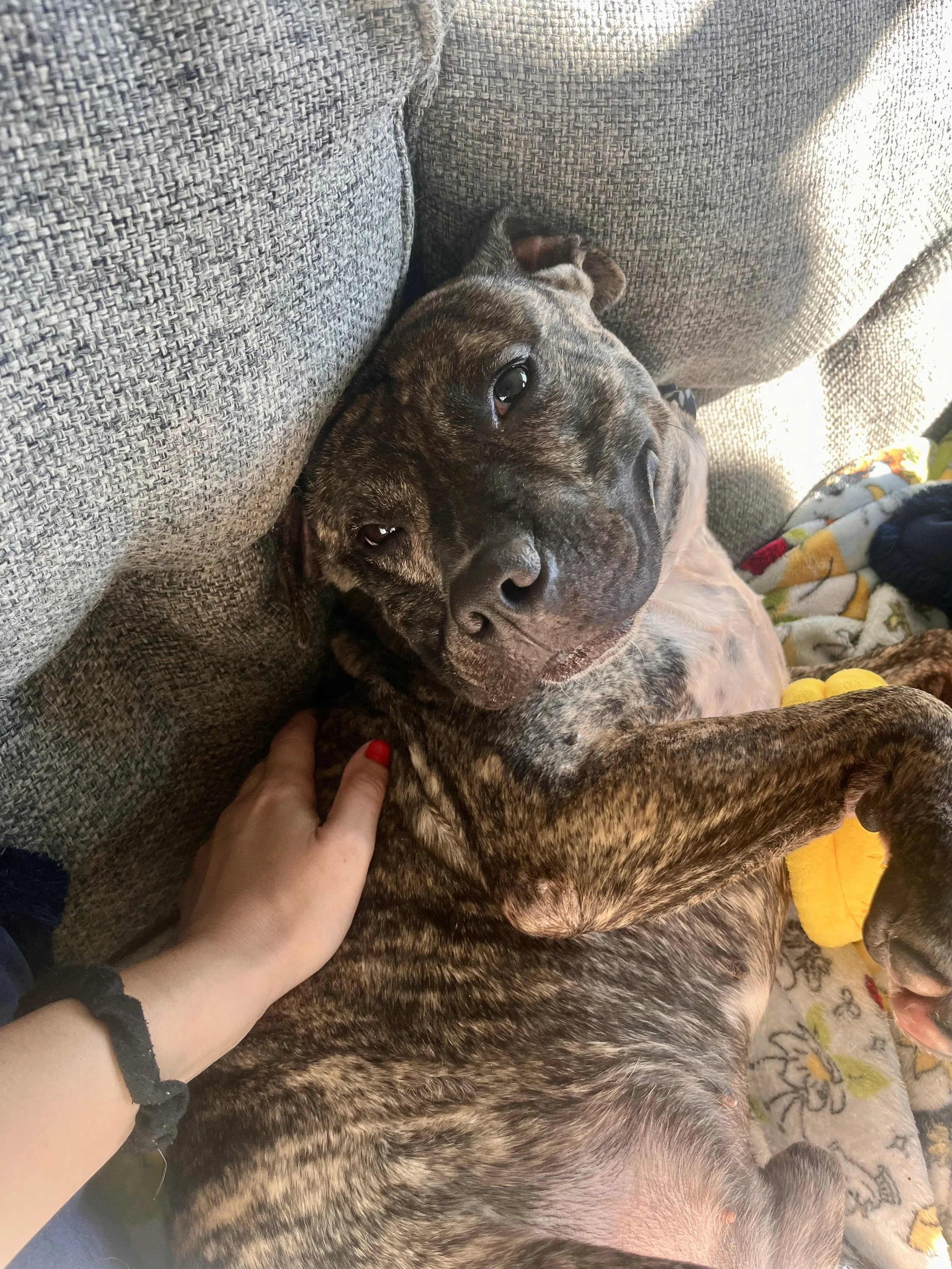 QUICK FACTS: 🐕Dog friendly 🤔Unknown with cats 🤔Unknown with kids 💤Crate trained 🐕🦺Walks well on leash 🚗Good in the car ✔️Could live in an apartment! ✔️Good for beginner dog owner! 🧸Loves to play 🥰Snuggle Pup 😀Friendly