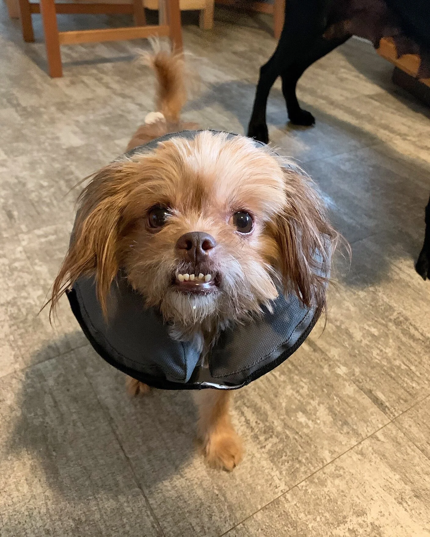 Say hello to Gigi! This sweet little girl was found as a stray in Louisiana after the hurricane last month. The poor thing was covered in flea bites and is growing back patchy hair from flea bite scabs. This little lady is a very gentle little girl who just wants to snuggle up with her humans. One of her favorite spots to sit is the back of the couch right behind your neck. She starts her day with a 15 minute walk then has breakfast and naptime in her crate while I'm working. At lunchtime we'll have a potty break then she'll snooze in her crate again the rest of the afternoon while I'm working. In the evening, we get in another walk and then couch snuggles for the rest of the evening. Bedtime means dinner and then she sleeps the night in her crate.