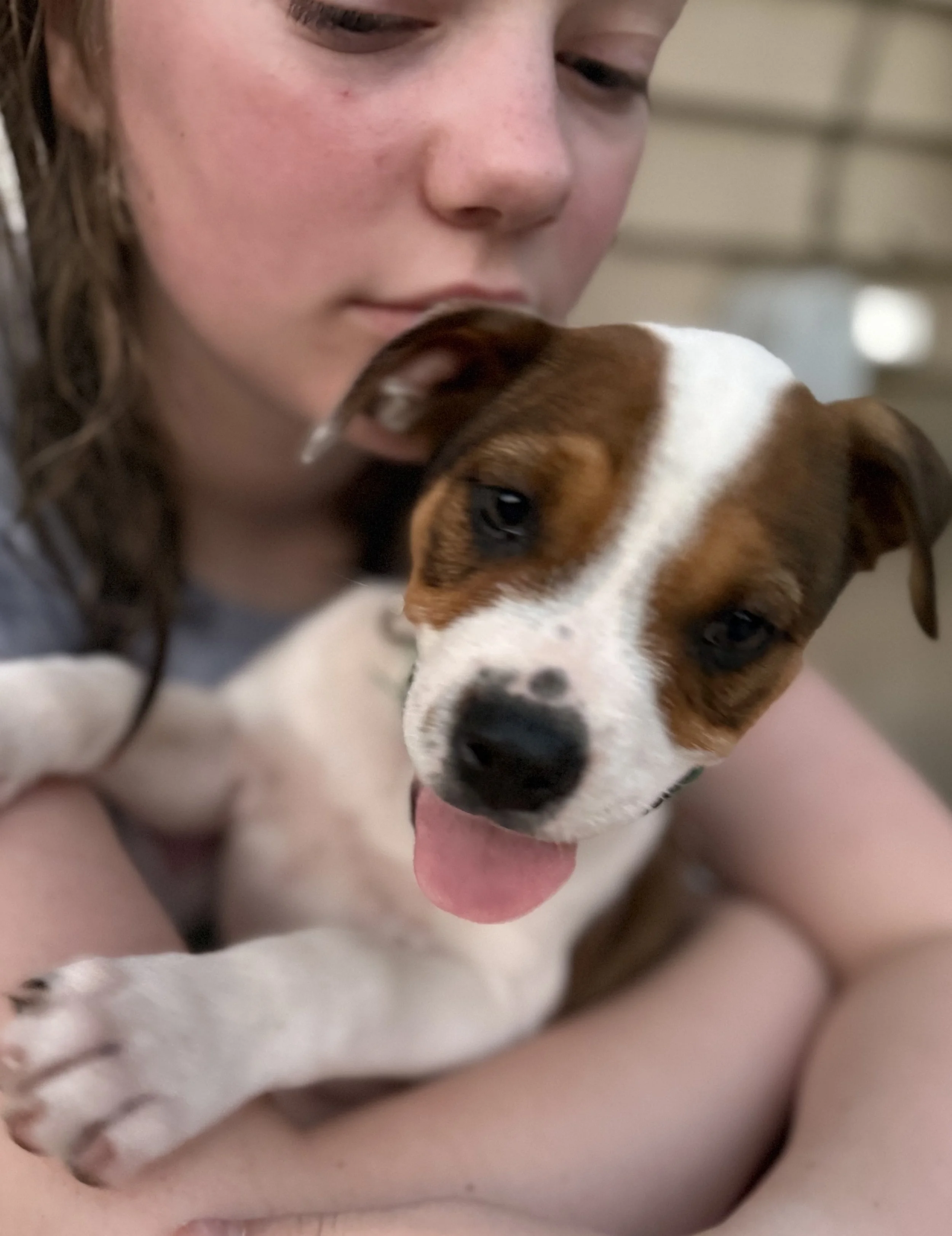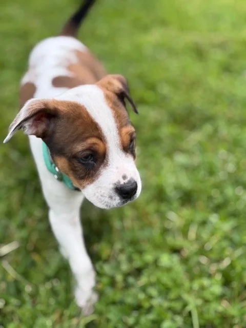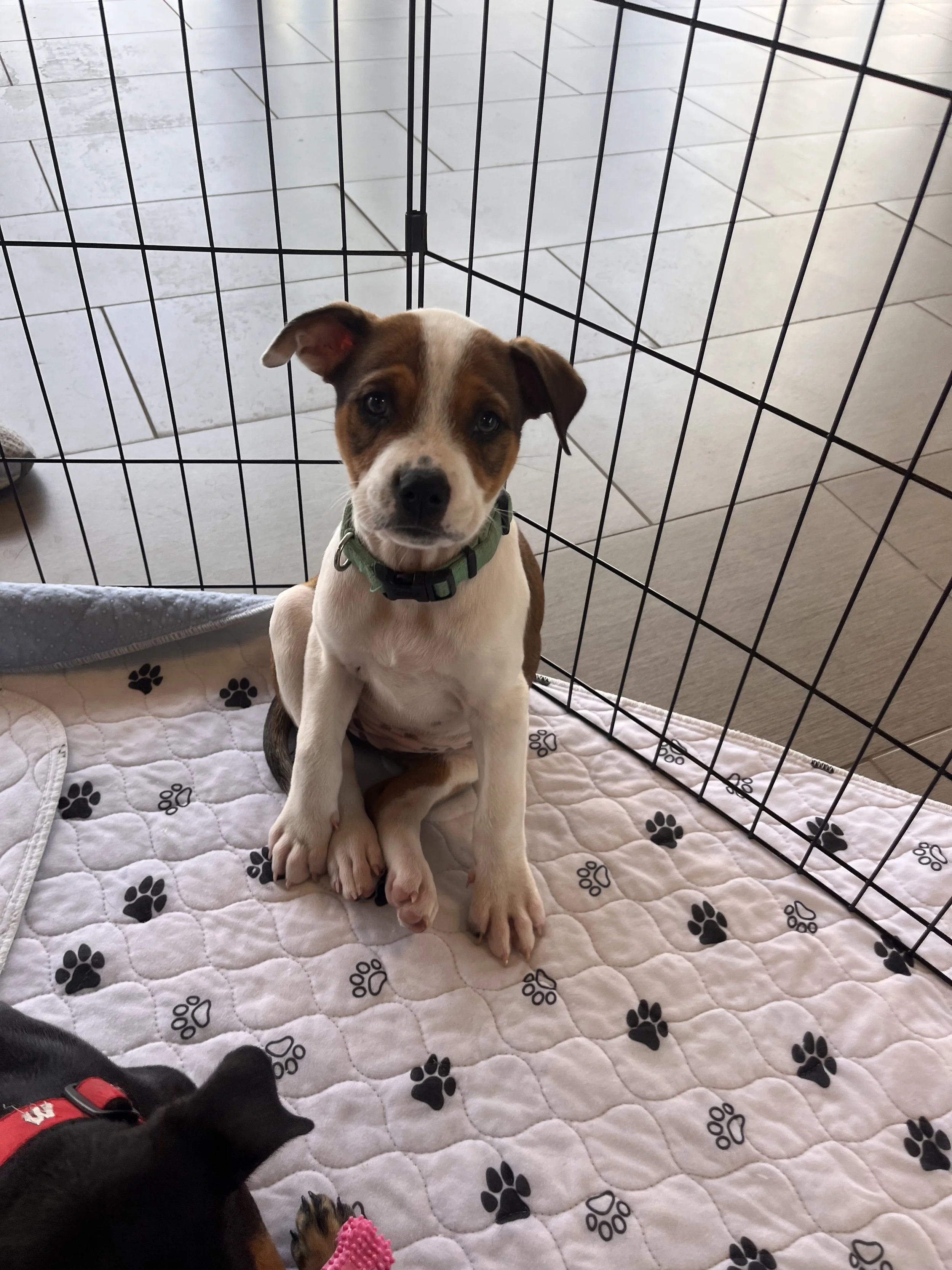 Update: Gracie continues to have new experiences. A visit to a coffee shop, thrift shopping and a pet store were all stops she recently made. She continues to show what a well socialized pup She is by appearing confident and friendly across environments. She’s getting lots of good experience with friendly people wherever she goes, which is great too. She Is a smart one and is working on potty training, learning the commands “come” and “sit” and “kennel up.” She is praise and food, motivated, so training will hopefully be easy.