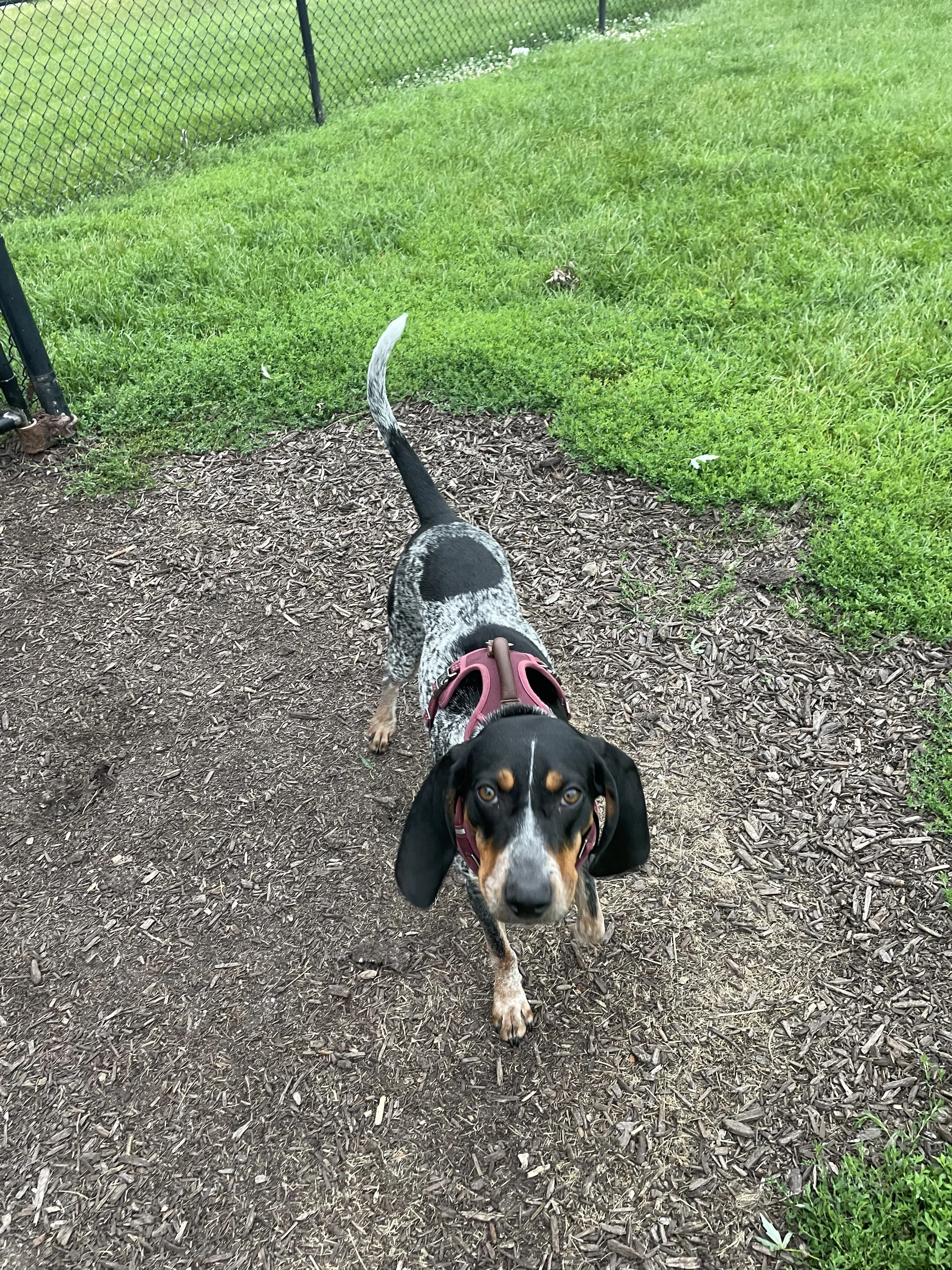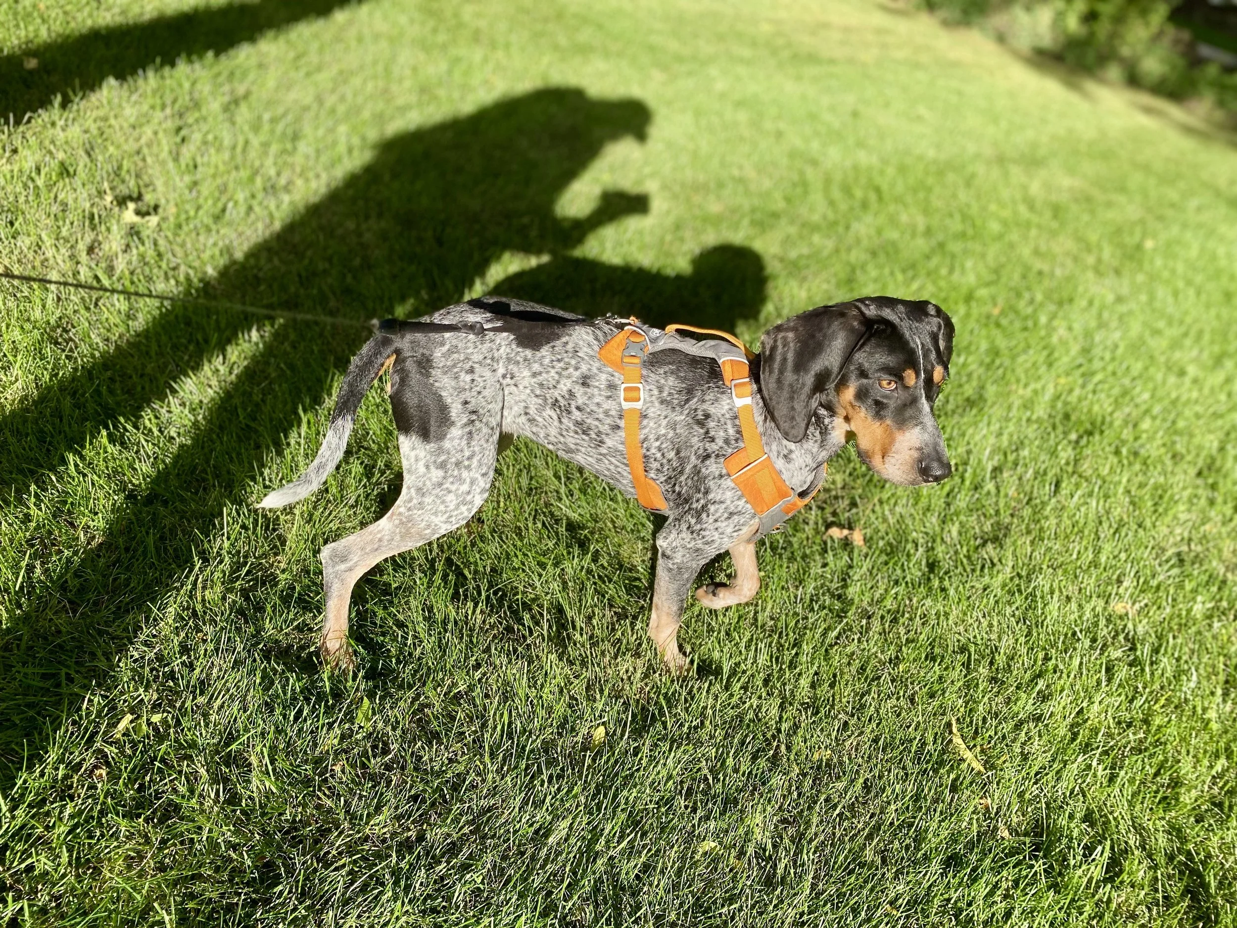 ✅ Meet Honey, a sweet and laid back bluetick coonhound mix from Alabama!