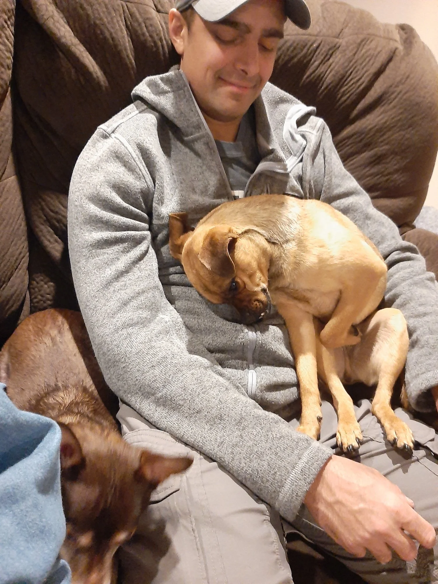 After playtime, Hopper turns into a total marshmallow — he loves cuddling just as much as he loves zooming around the yard. If you want a dog who will make you laugh, keep you active, and curl up with you afterward, this boy is your guy.