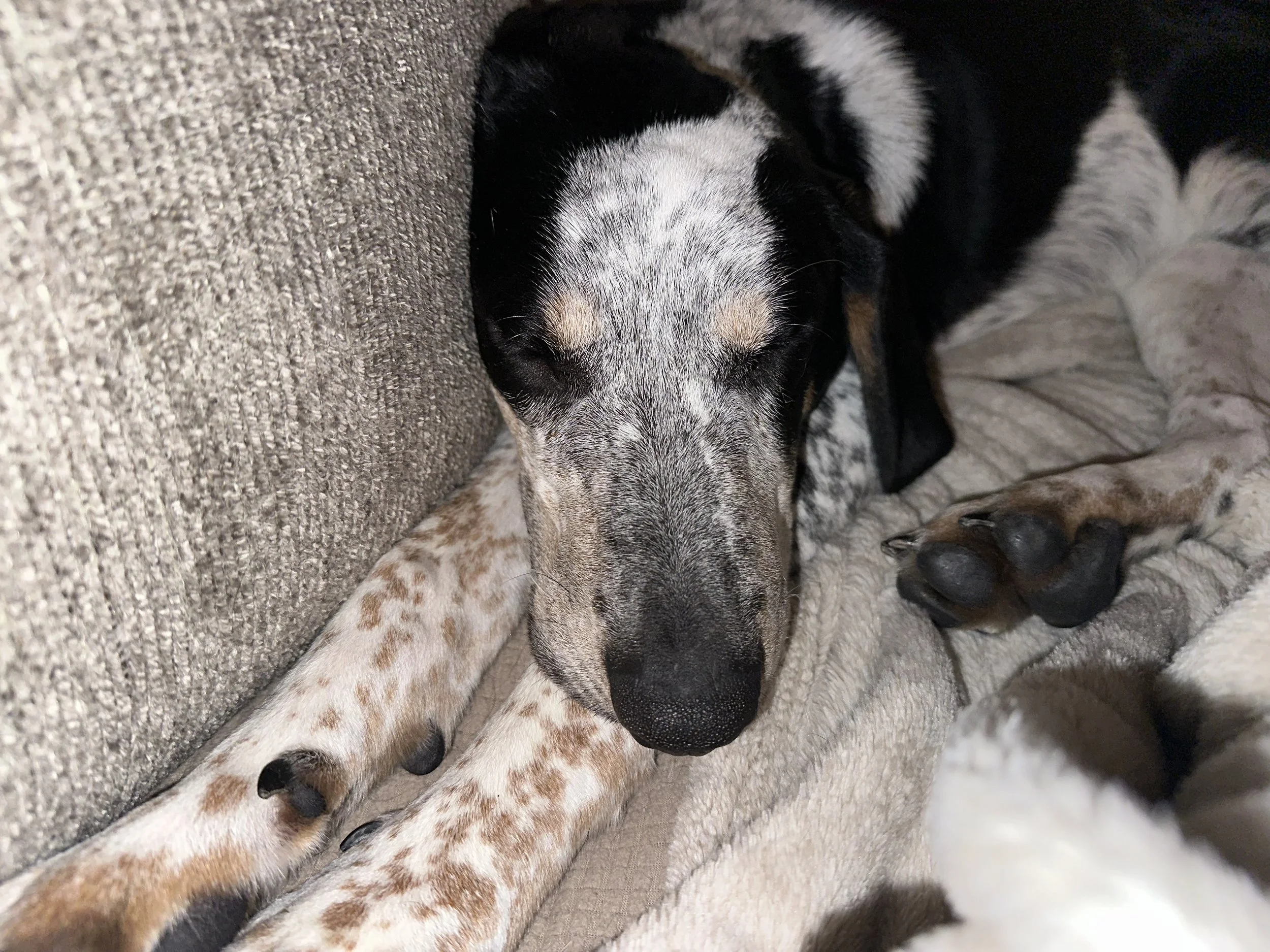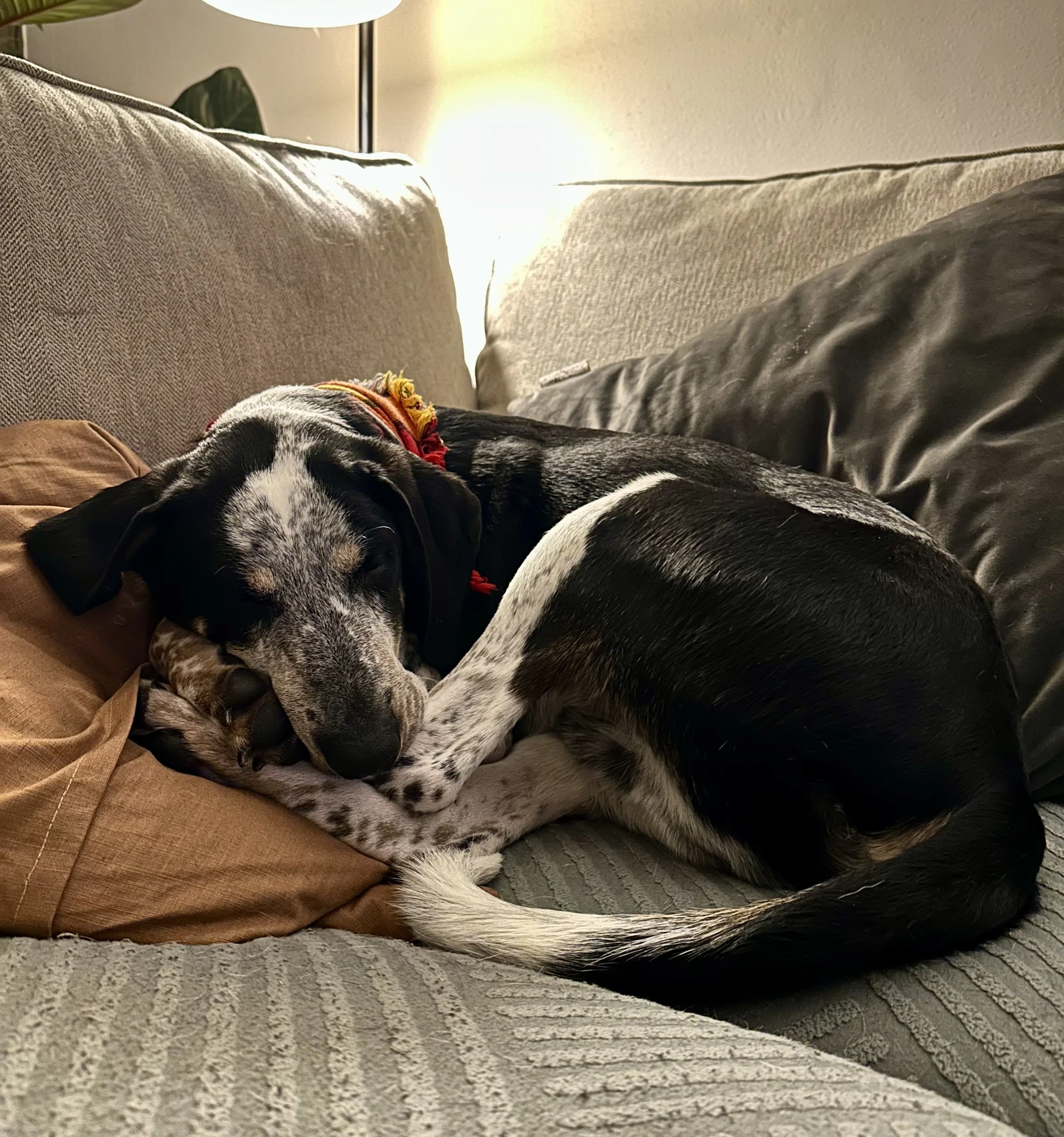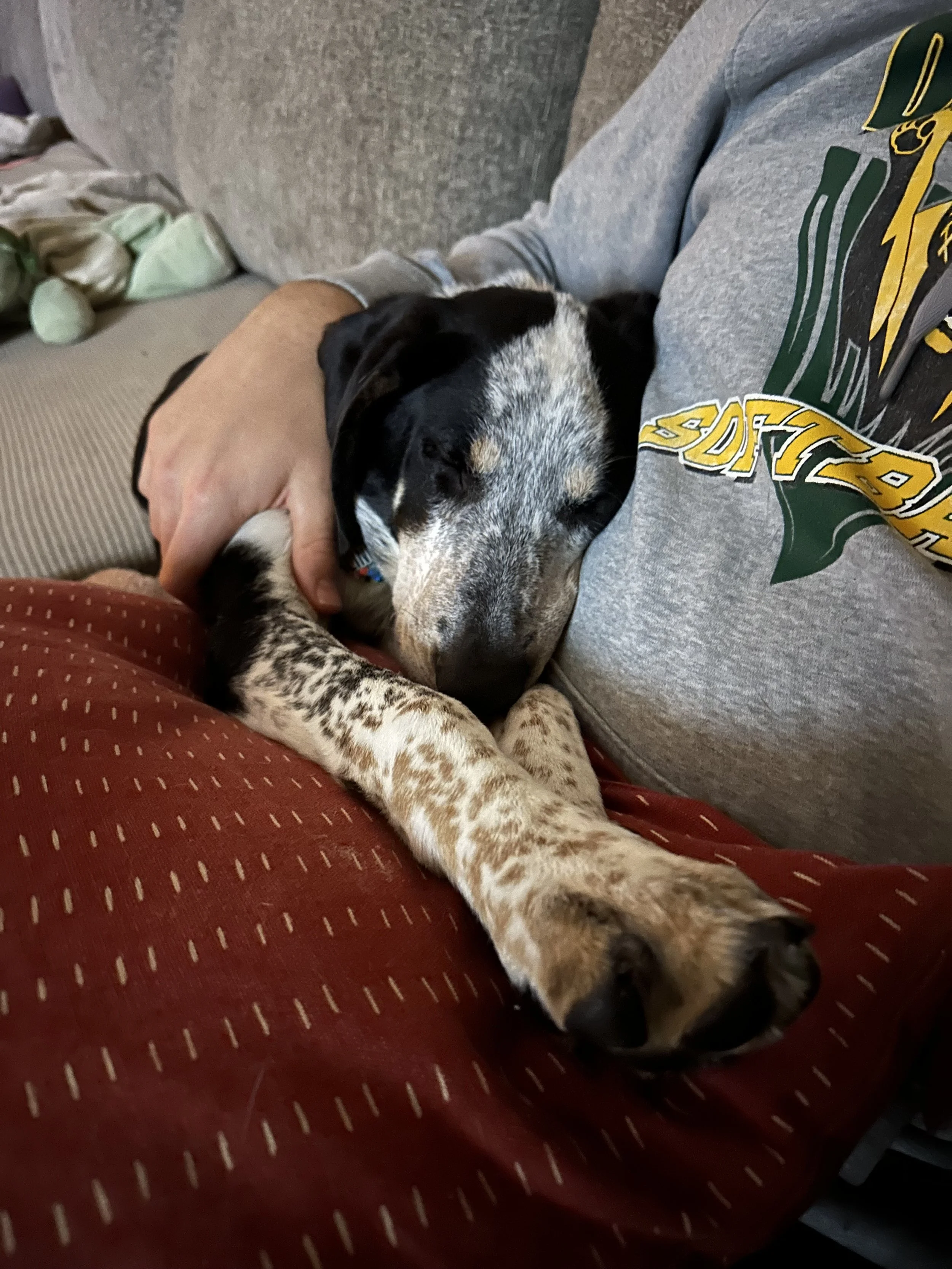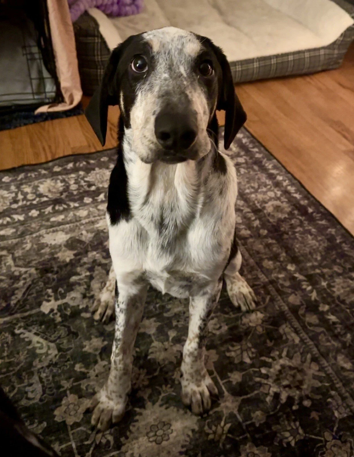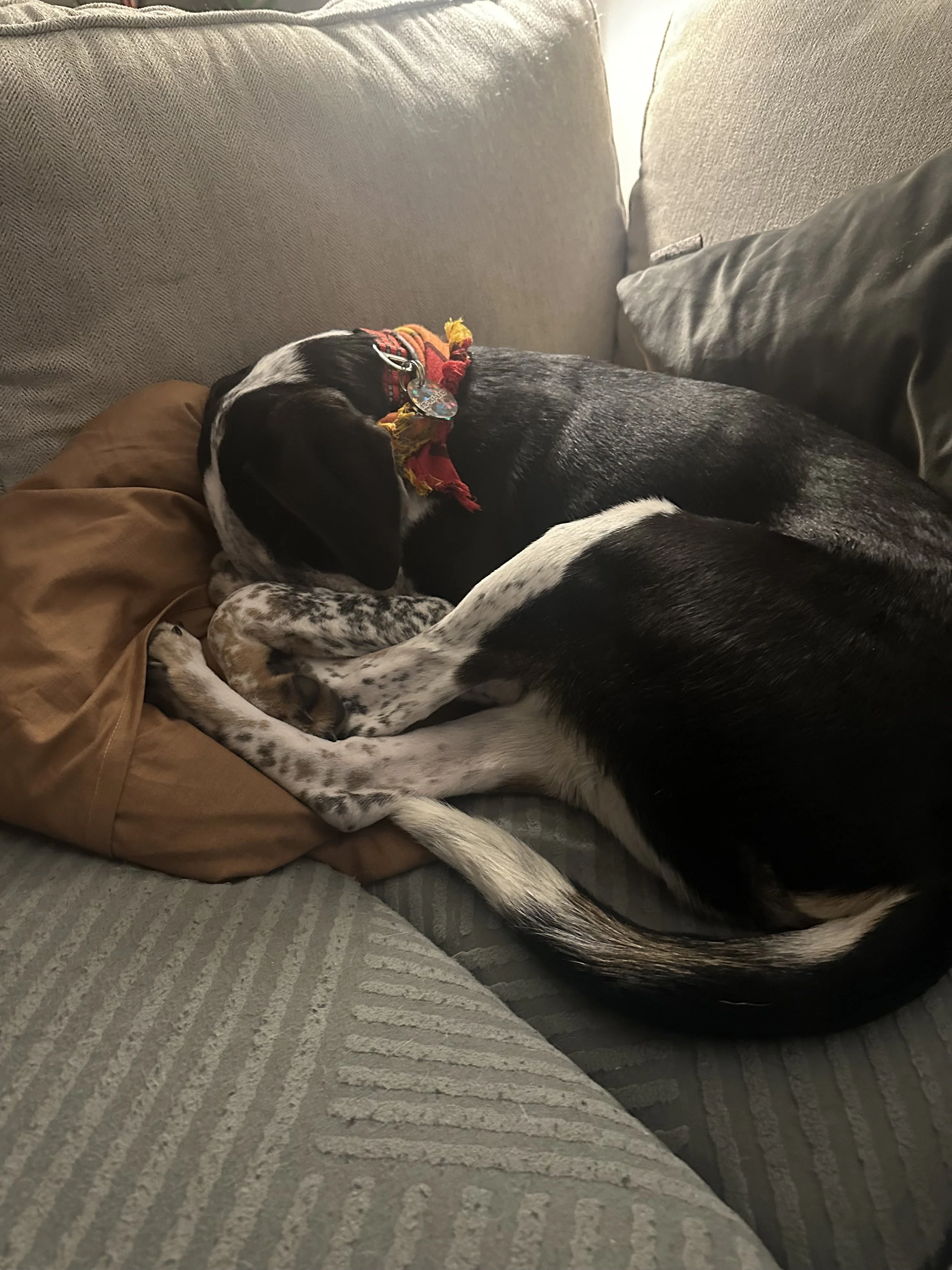 Meet Huckleberry, the snuggliest hound in WI! Huck is an 8-month-old, 43lb sweetheart who is learning all the benefits a home has to offer. He is potty trained and doing very well with crate training. Huck is fostered with three other dogs and gets along well with all of them. He has not met cats or children in his current foster home, but due to his sweet nature he would probably do well with them. He loves to use his nose and sniff around the backyard but then wants to cuddle up on the couch with you! Huck LOVES to cuddle with him foster parents and thrives with human affection.