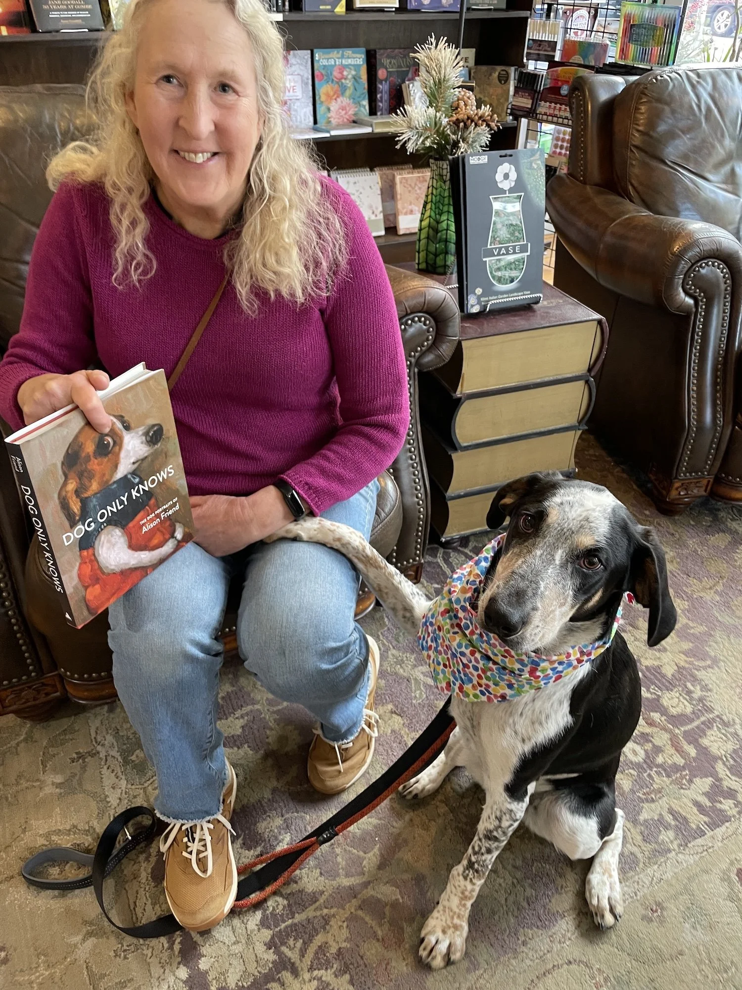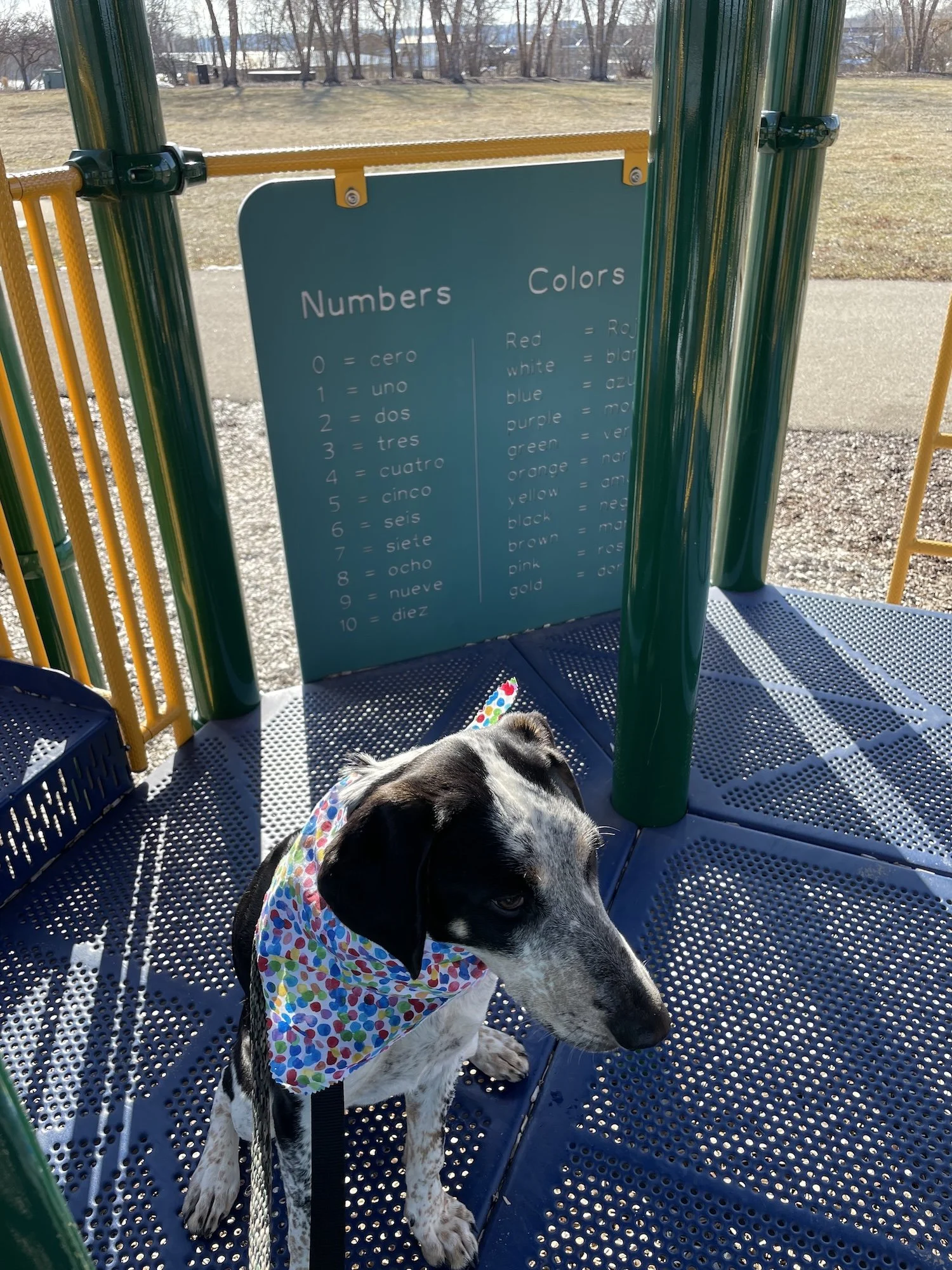 Huck can still be a bit shy sometimes but he’s working very hard on meeting new people. He’s visited an independent bookstore, veterinary clinic for a weigh in, and a trip to the park and to the farm store.