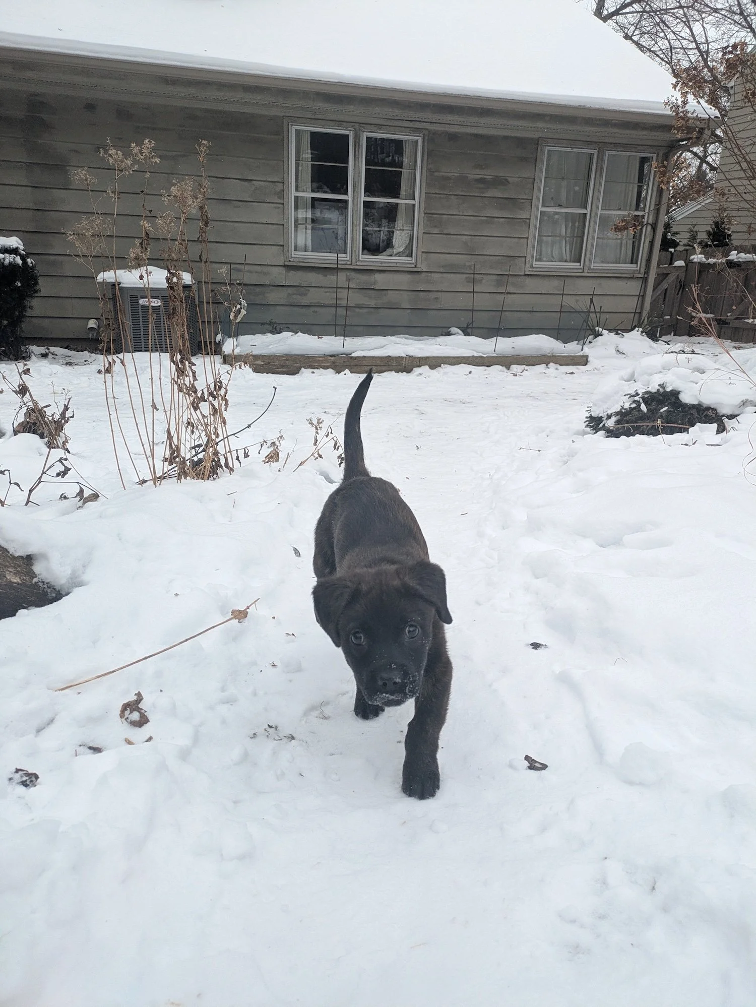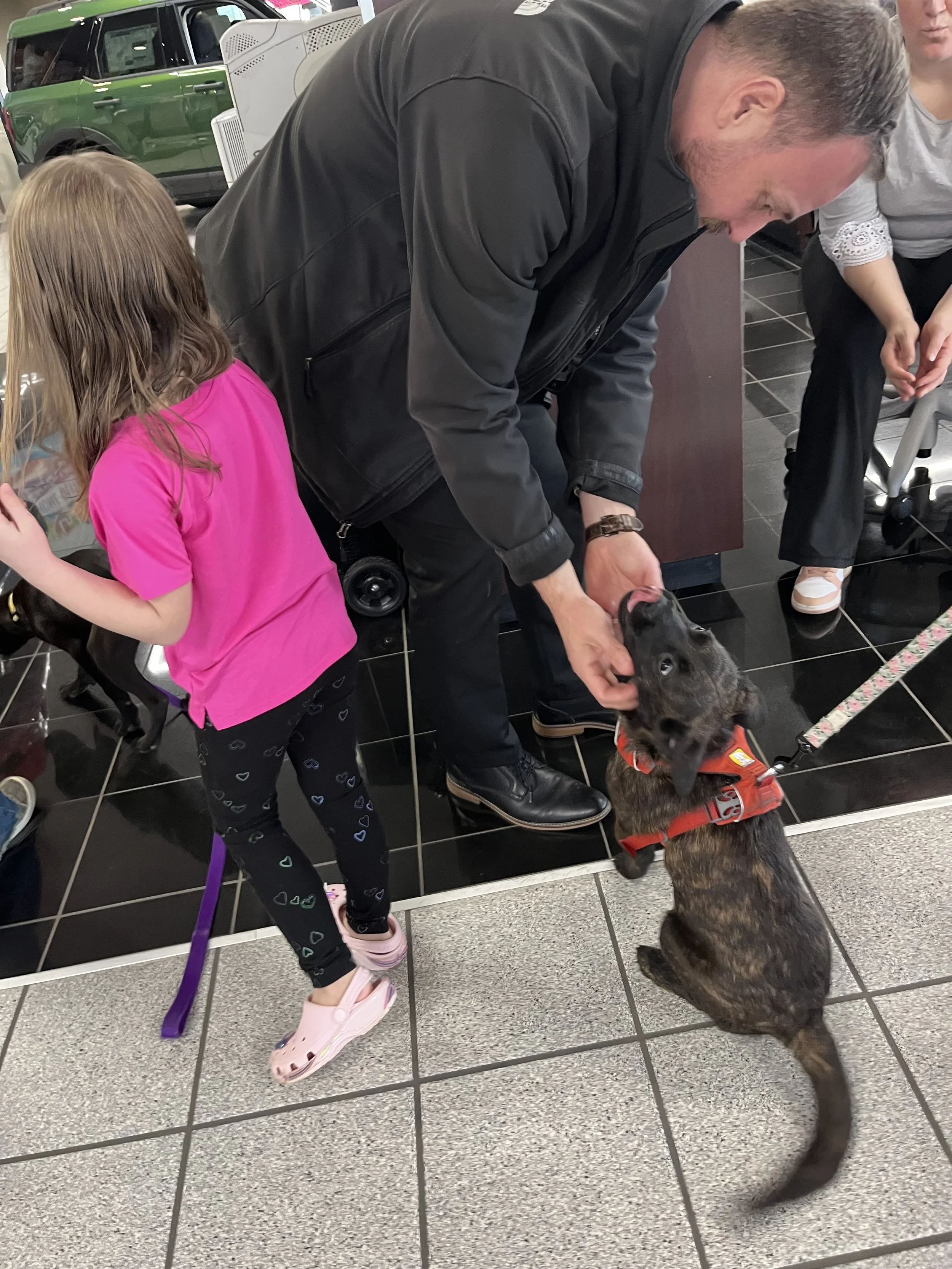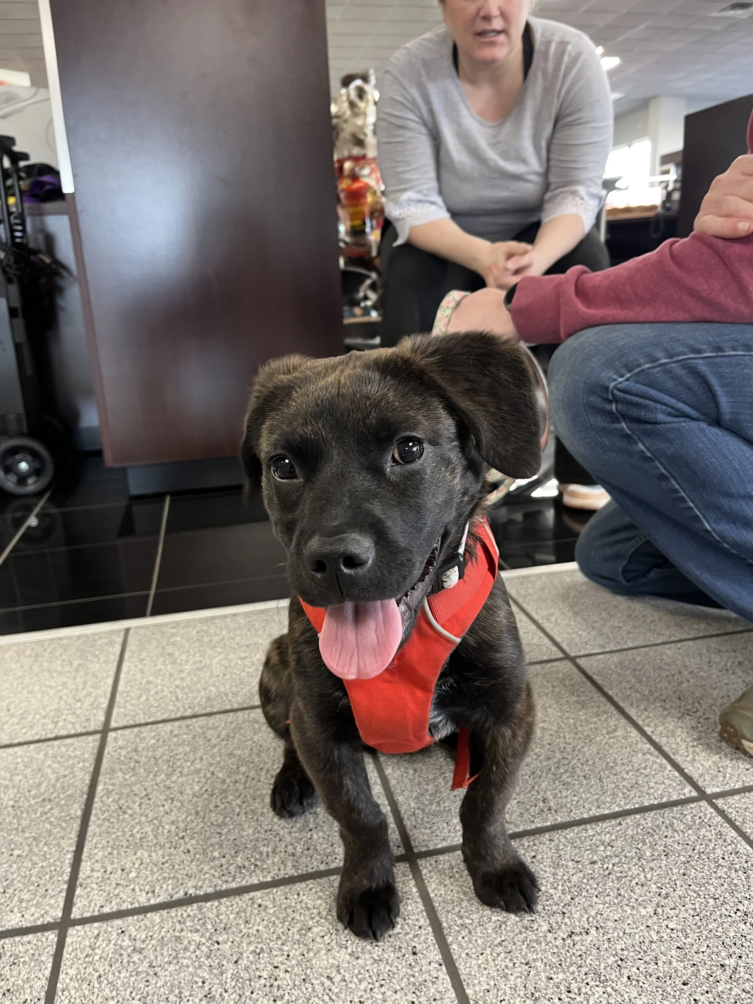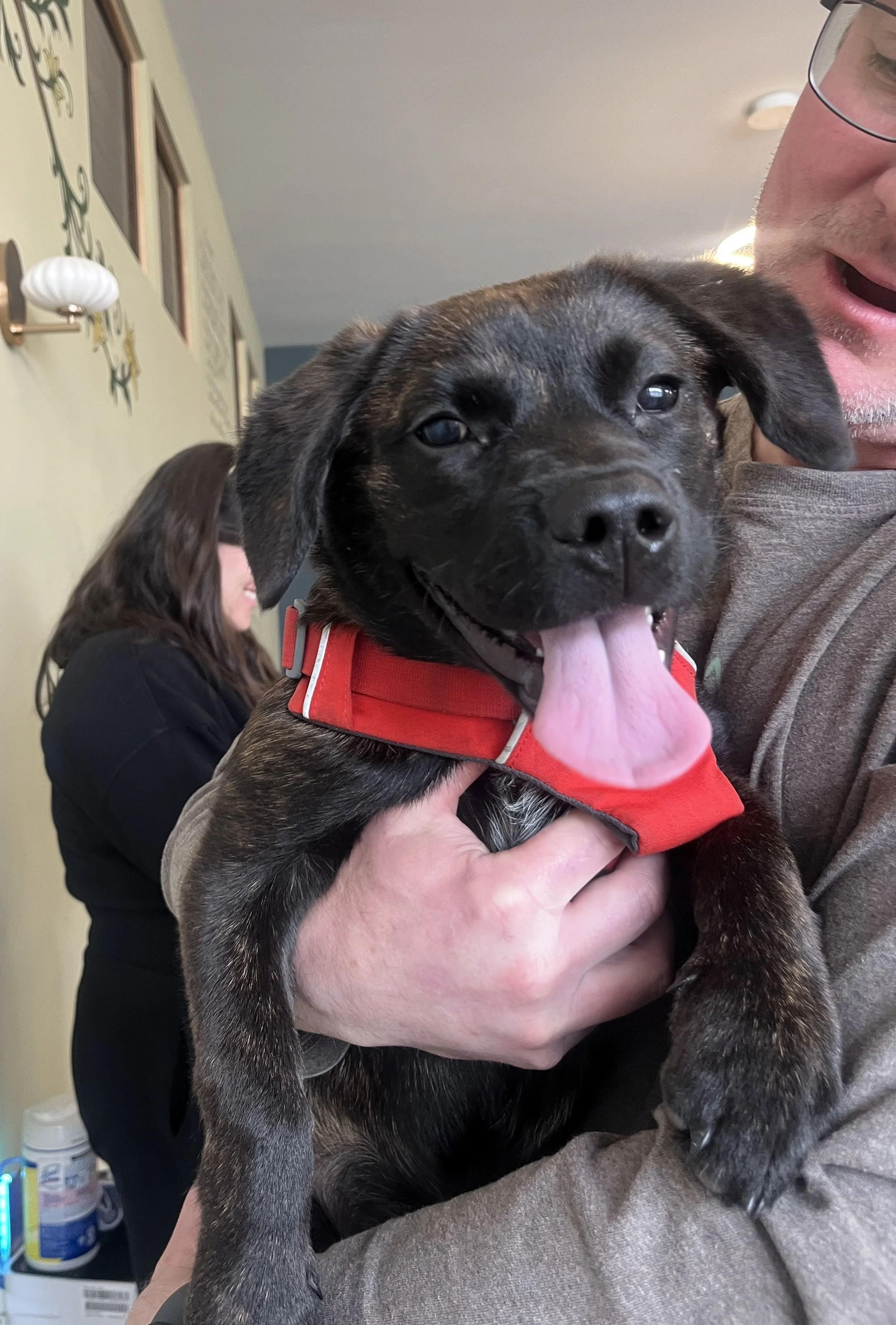 Jubilee is growing up fast! Now almost 5 months old, this resilient and joyful girl continues to prove that being blind doesn't slow her down one bit. She has blossomed into an active, curious pup who navigates her world with confidence and a wagging tail.