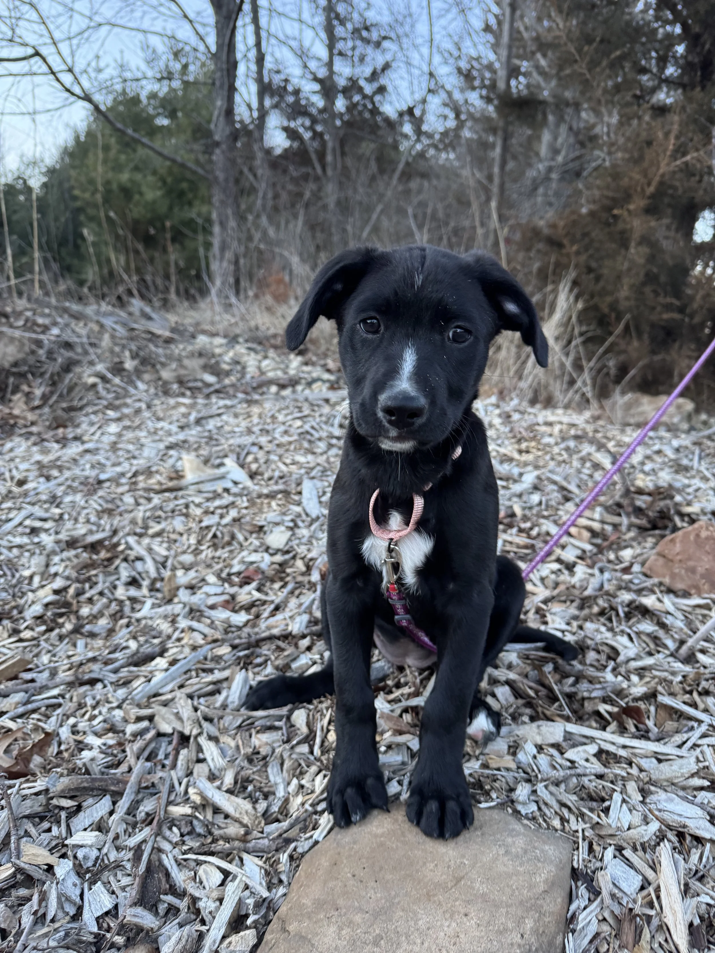 Luna is a playful, happy puppy! She is great at settling down quickly in her crate, rides beautifully in the car (goes to sleep in her crate) and is starting to learn to fetch. She’s going through typical puppy mouthy behaviors but is improving quickly with redirection. She came already knowing to sit nicely for treats and will be a quick learner with her love of food. She’s learning potty training quickly and has kept her crate clean. She would love a family that enjoys having FUN!