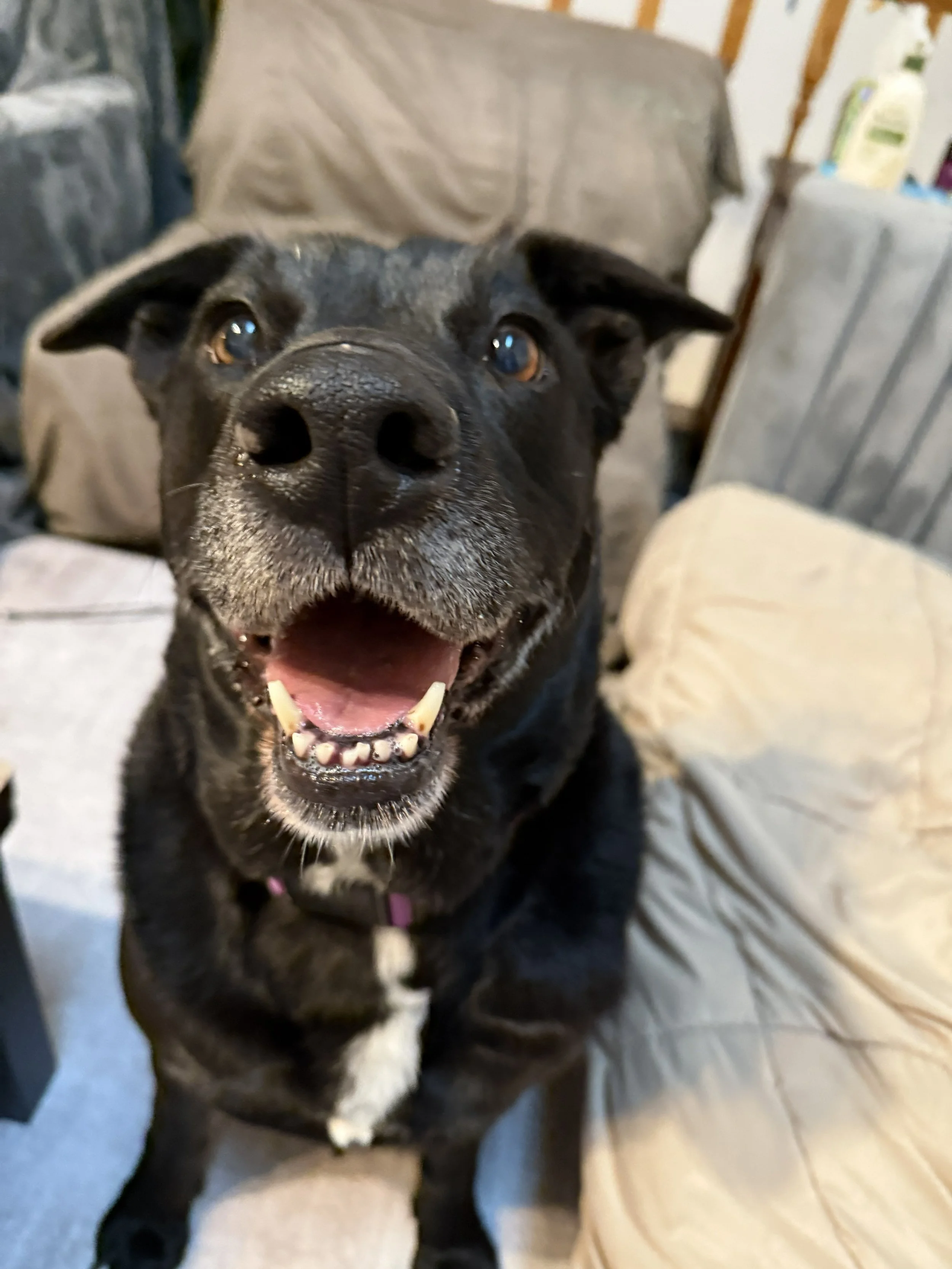 QUICK FACTS: 🐕Dog friendly with appropriate intros 🐱Cat friendly with appropriate intros 👶Best with older kids or no kids 🐶Senior doggo! 💤Crate trained 🏠House trained 🐕🦺Walks well on leash 🚗Good in the car 🧸Loves to play 🥰Snuggle Pup 😀Friendly 🏠 Available to Foster-to-Adopt