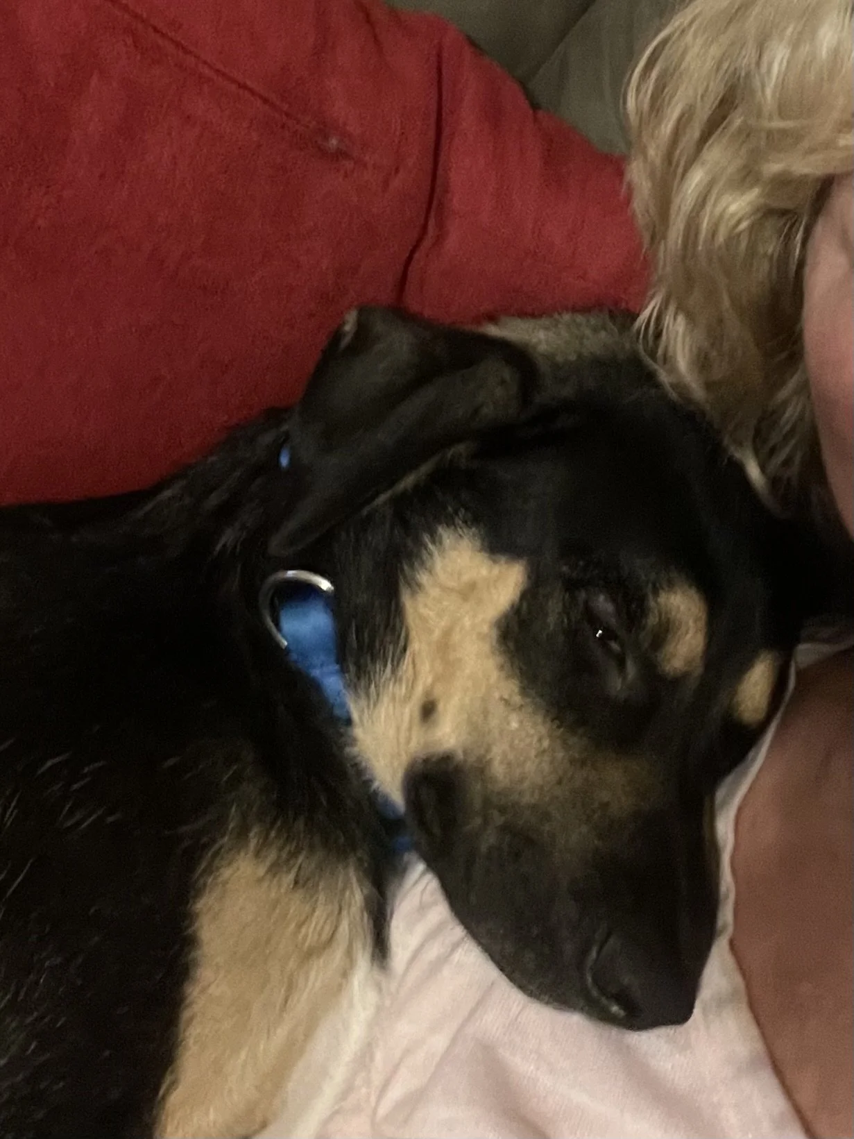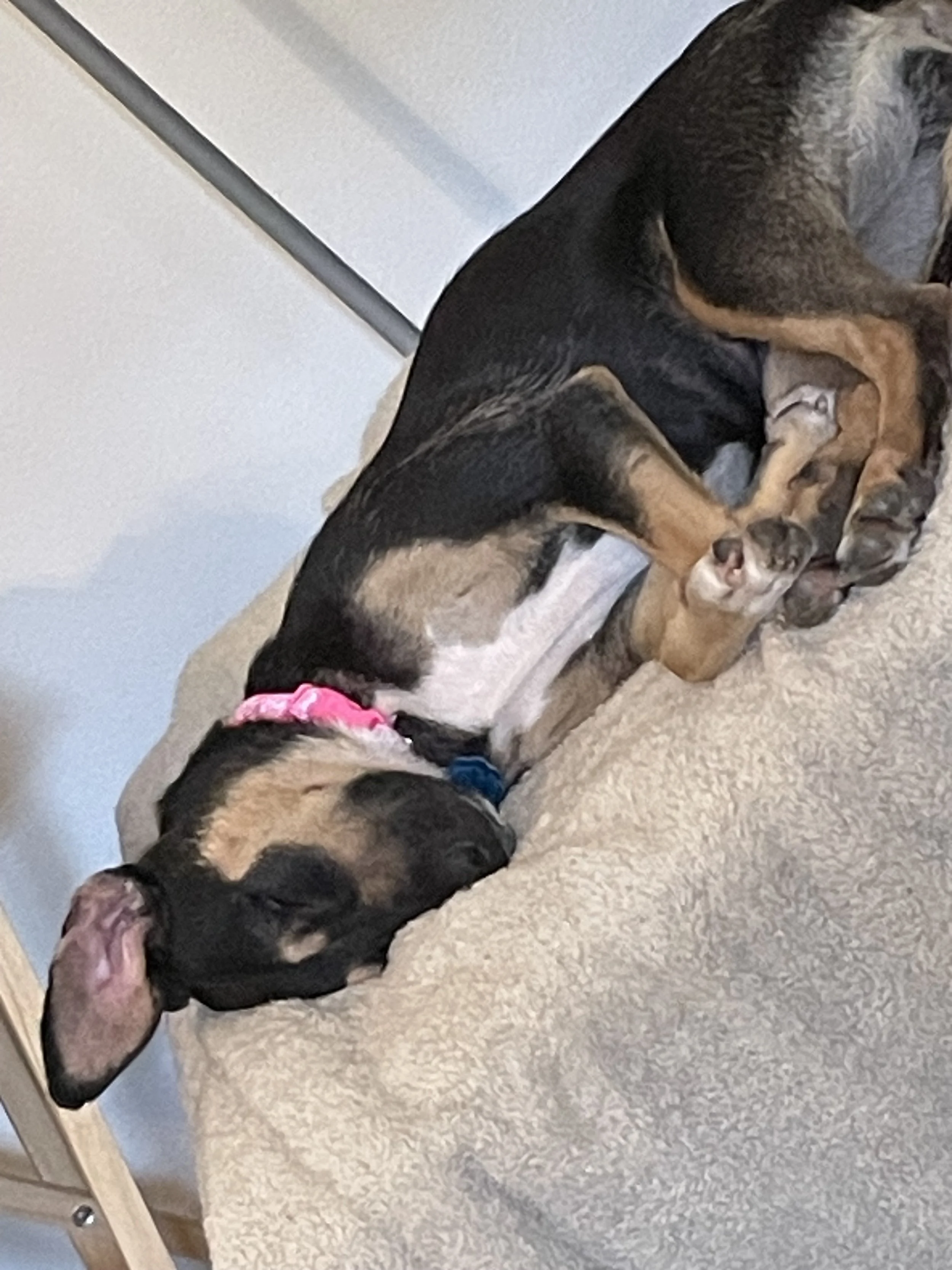 Martha is an incredibly sweet, affectionate, cuddly girl!! She is very easy-going, friendly, silly and smart. She learns quickly and is eager to please. Martha has not barked, howled, etc. since I've had her, so I think she would be fine in most living arrangements. She enjoys being active, but is just as happy curled up, napping. Martha prefers being with her people and 4-legged siblings vs. being in a crate - she has been sleeping in bed with us and is quiet all night!! She is outgoing and friendly with other dogs, but has not met kids or other animals yet. Martha will be a wonderful addition to any family and after recently weaning her last litter in Alabama, deserves a loving, happy life with many new adventures!