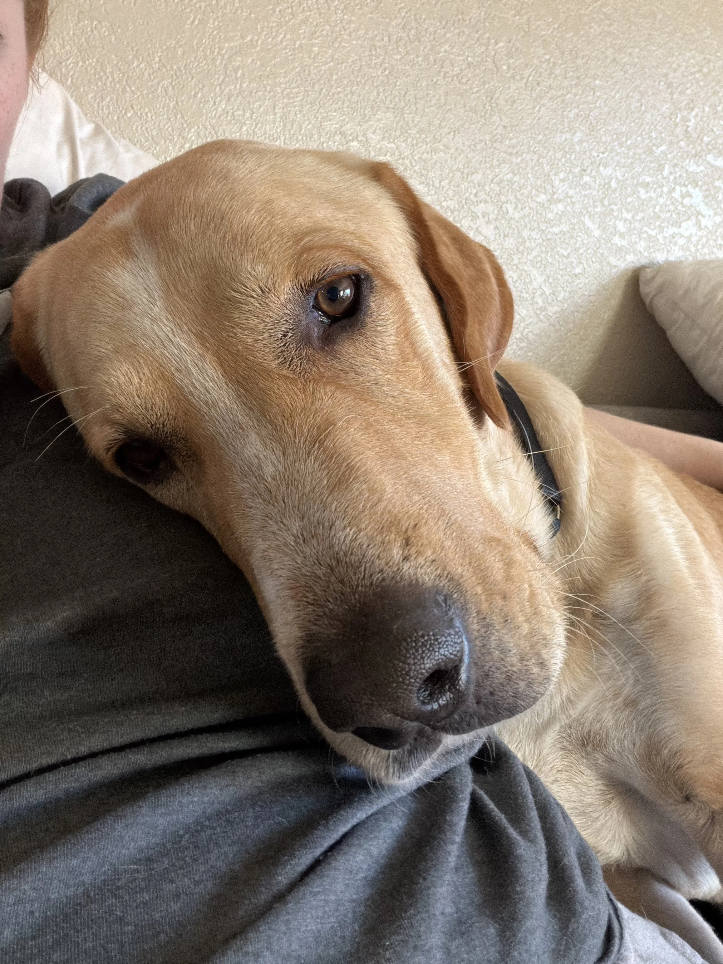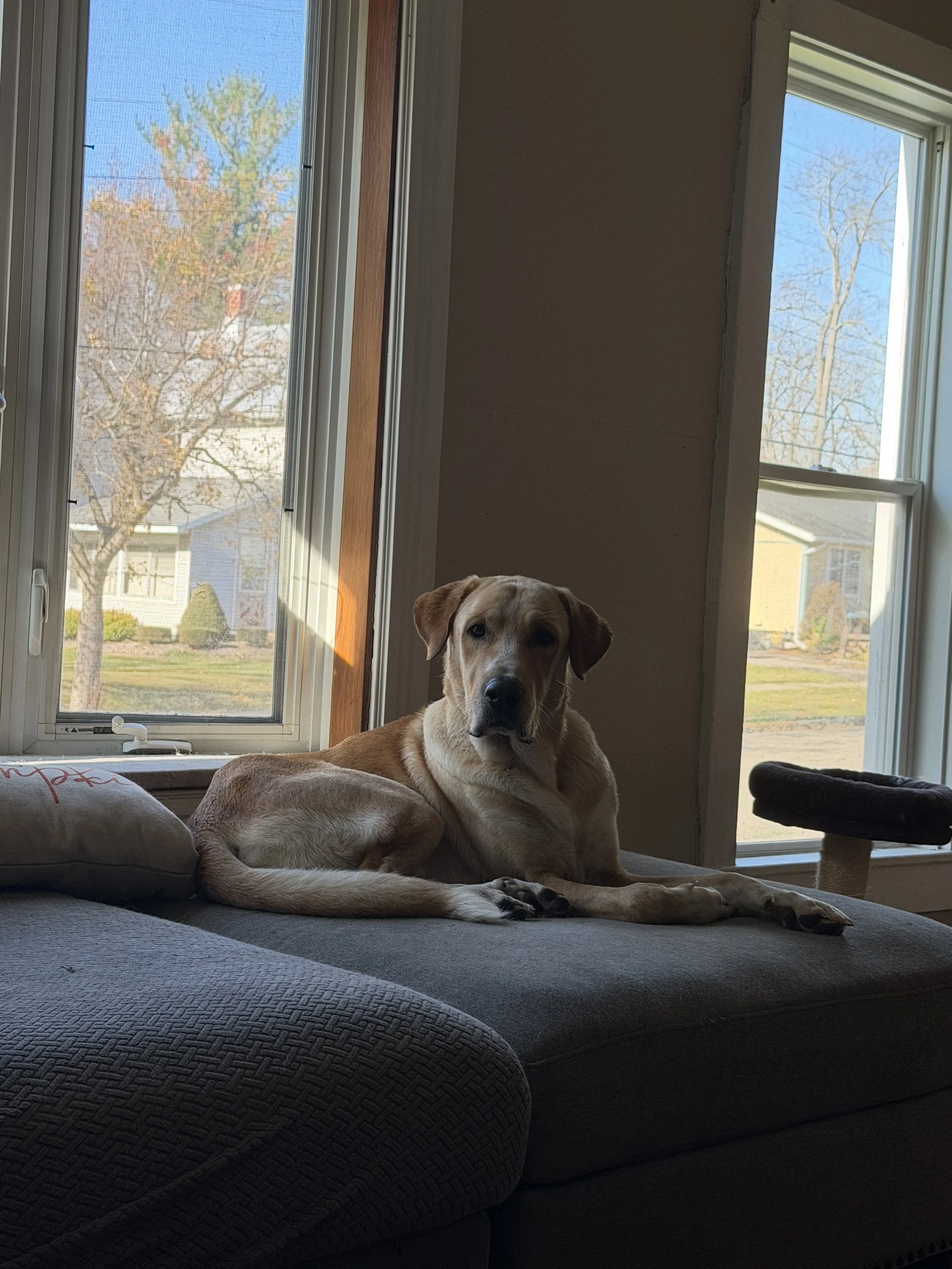 He’s a calm companion who enjoys relaxing on the couch, soaking up sunshine by the window, and being near those he trusts. He loves quiet moments, gentle pets, and any opportunity to show off his loyalty. He’s the kind of dog who will follow you from room to room just to keep you company.