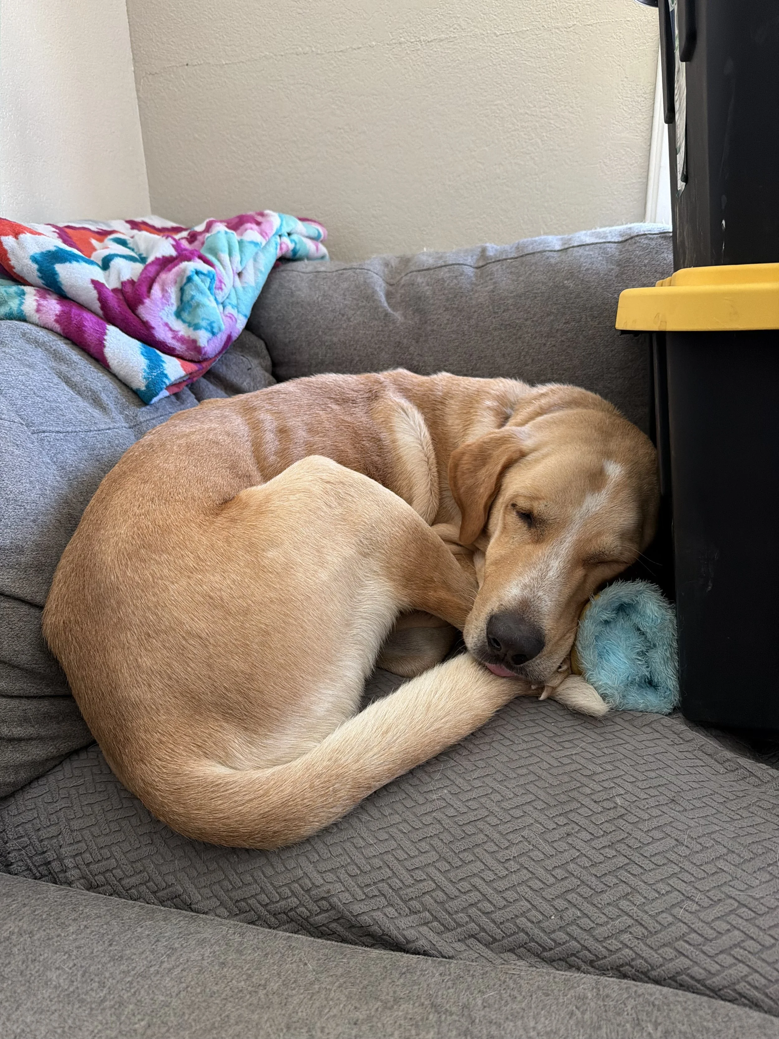 QUICK FACTS: 🐱Good with cats 🤔Unknown with kids 💤Crate trained 🏠House trained 🚗Good in the car! 😀Friendly 🥰Snuggle Pup