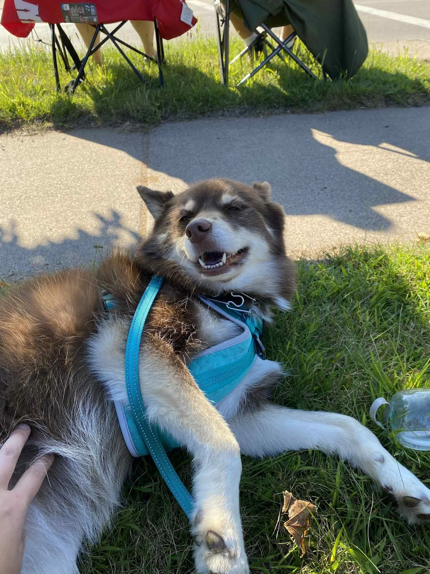 Please be aware that Mila is a double-coated dog and she sheds about twice her body weight. Luckily, her smooth coat doesn’t matte easily! Mila doesn’t like baths, but she’ll tolerate them while whining and howling. She doesn’t mind being brushed or having her nails trimmed.