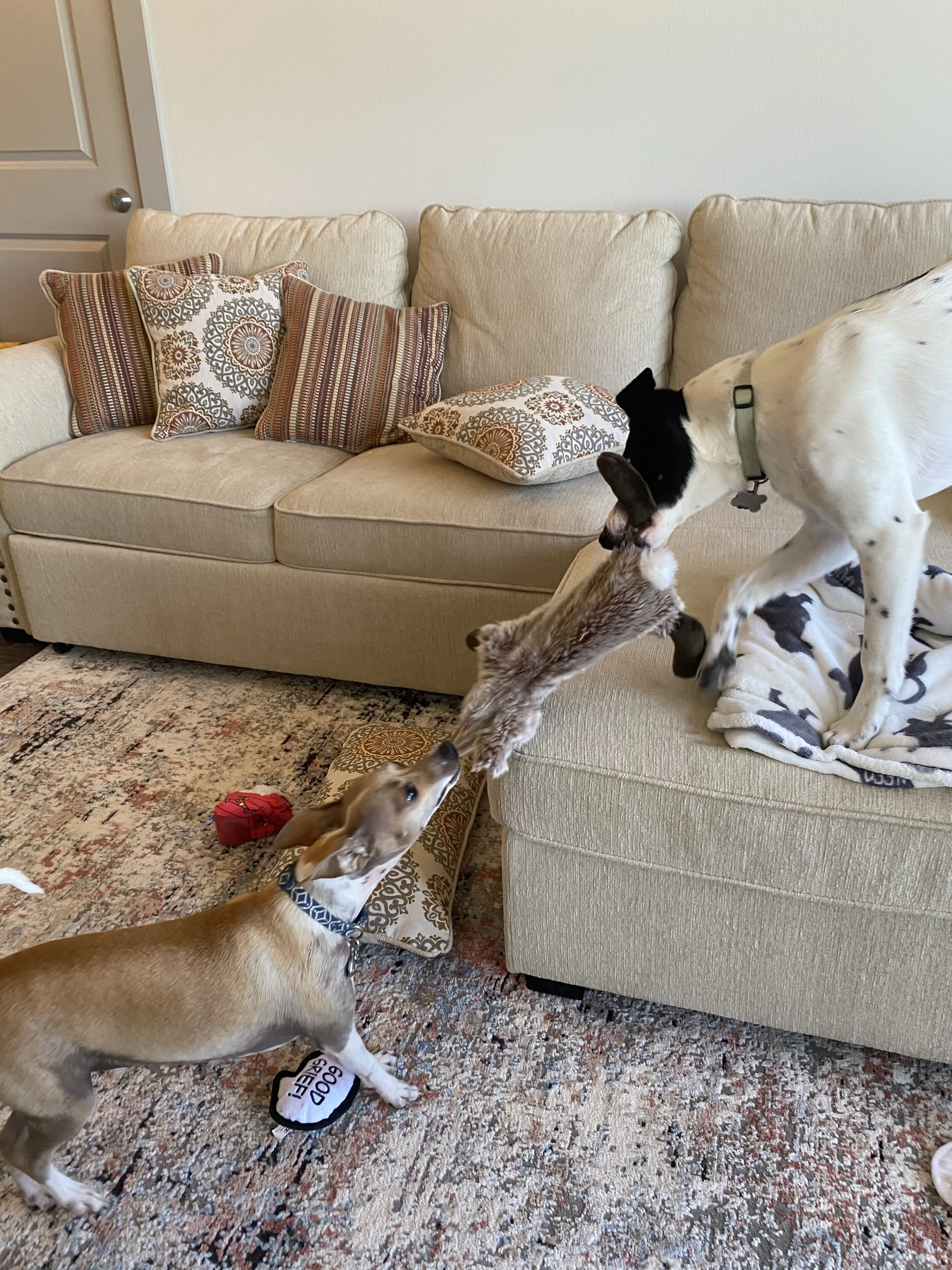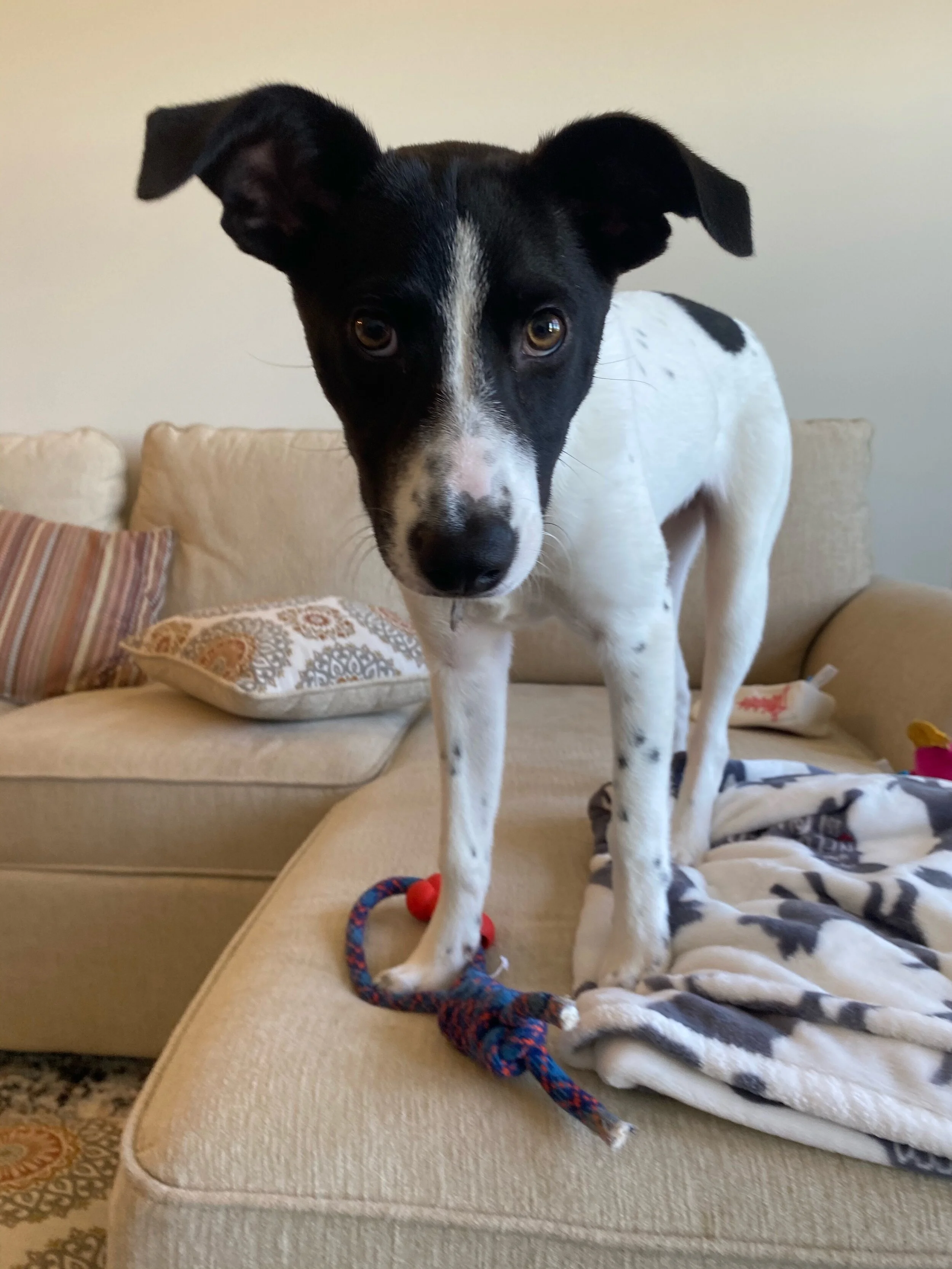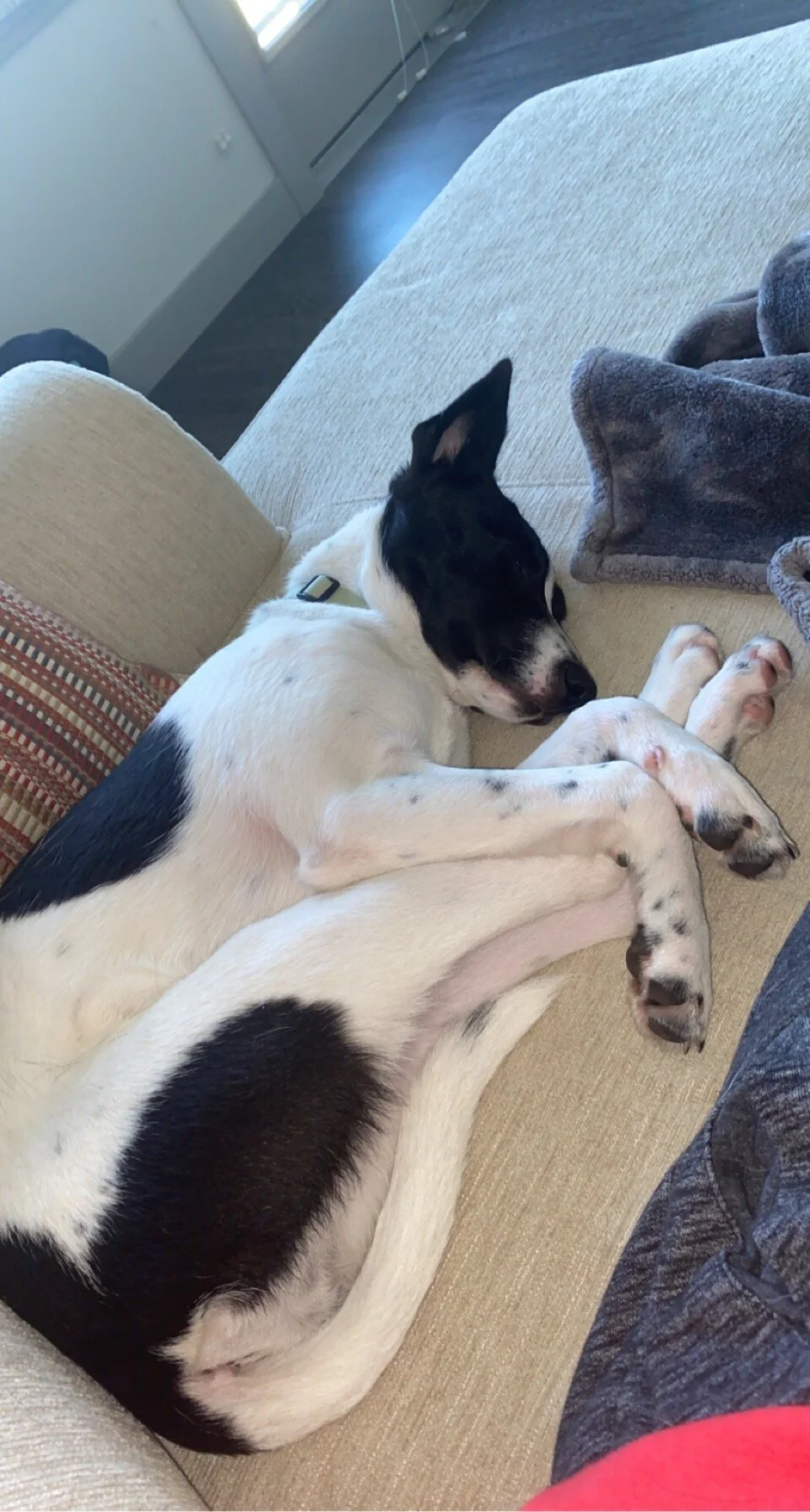 Mozzarella is a fun, loving young pup! She enjoys playing with our resident dog and taking naps.