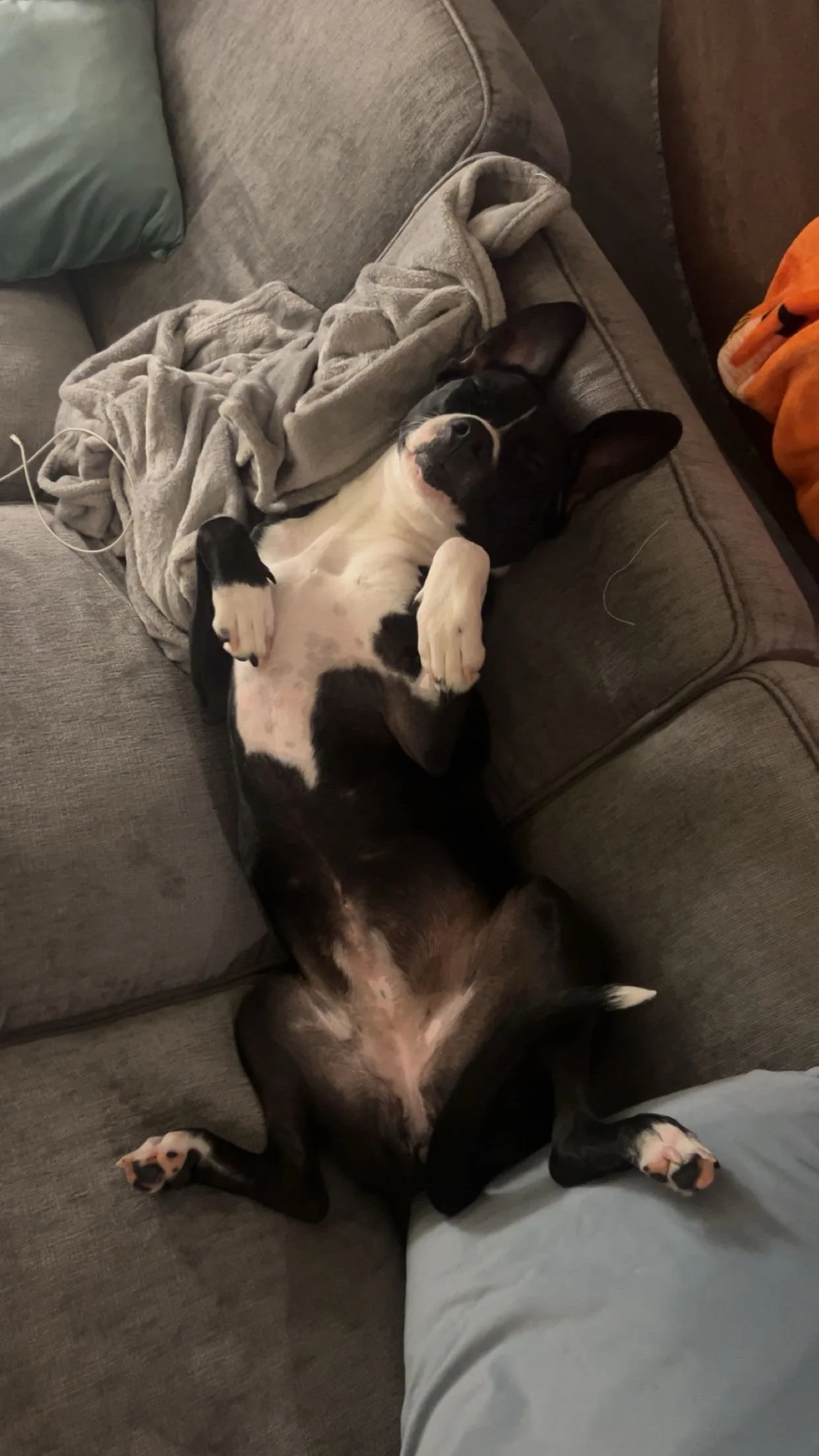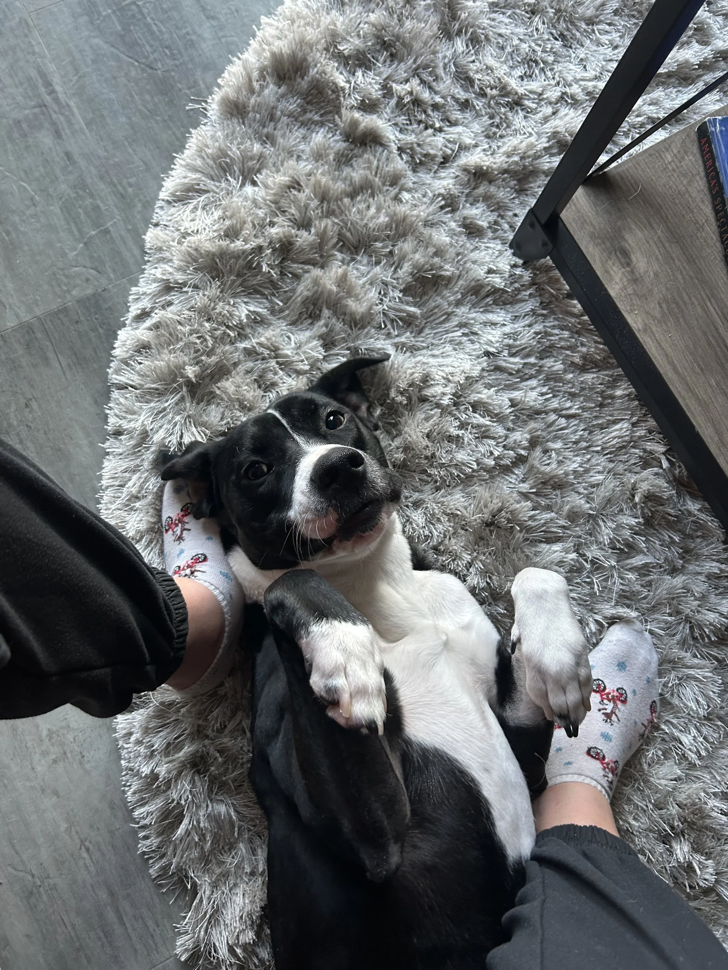 Ms. Tee is currently the only dog in her foster home and has been a model housemate. She’s fully house-trained, respectful of space, and has excellent crate manners. Whether free-roaming during the day or resting overnight, she’s calm, quiet, and content. She’s picked up basic commands like “sit,” “leave it,” “crate,” and “off” with ease, and she loves her toys—happily entertaining herself when needed.