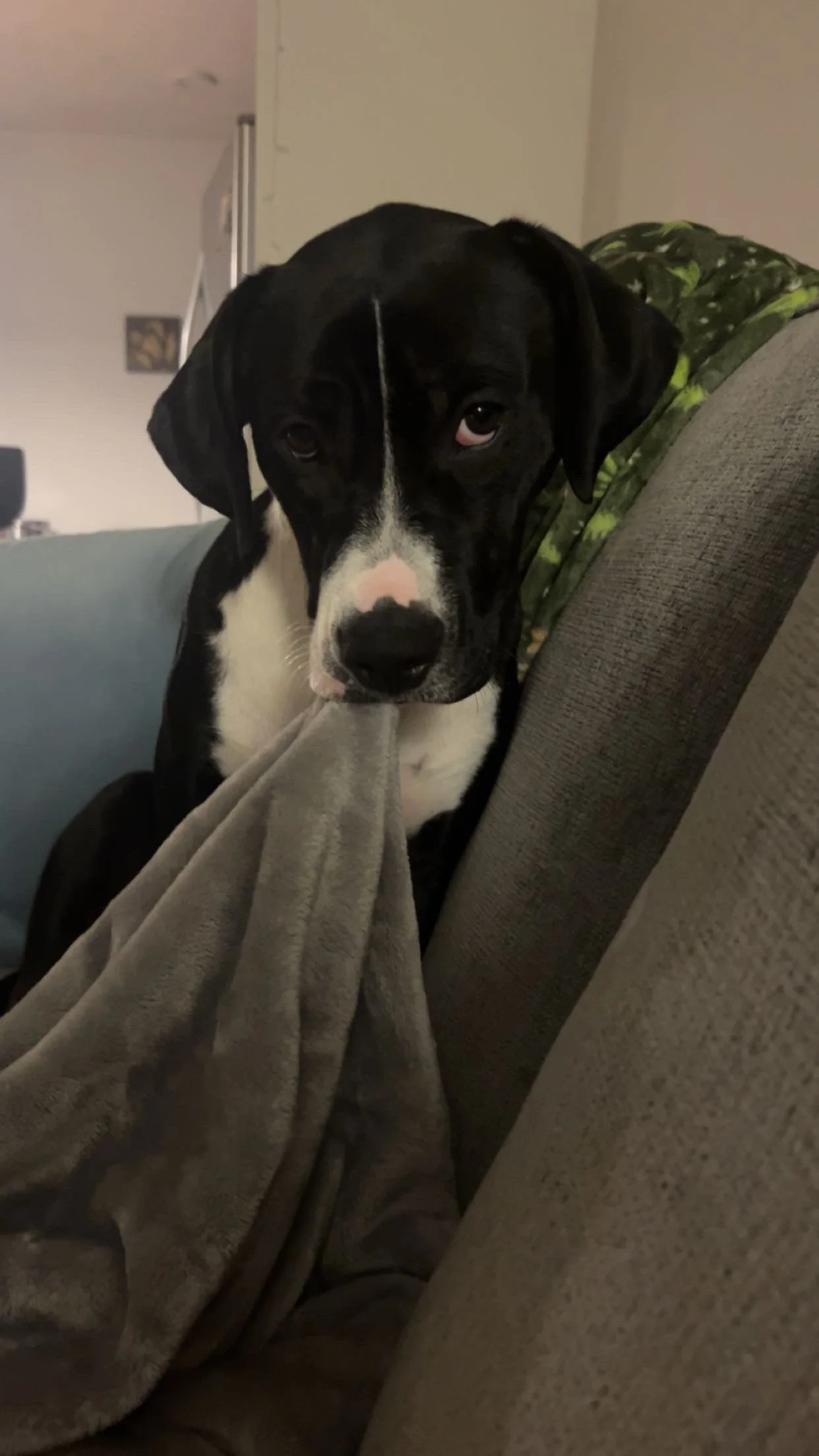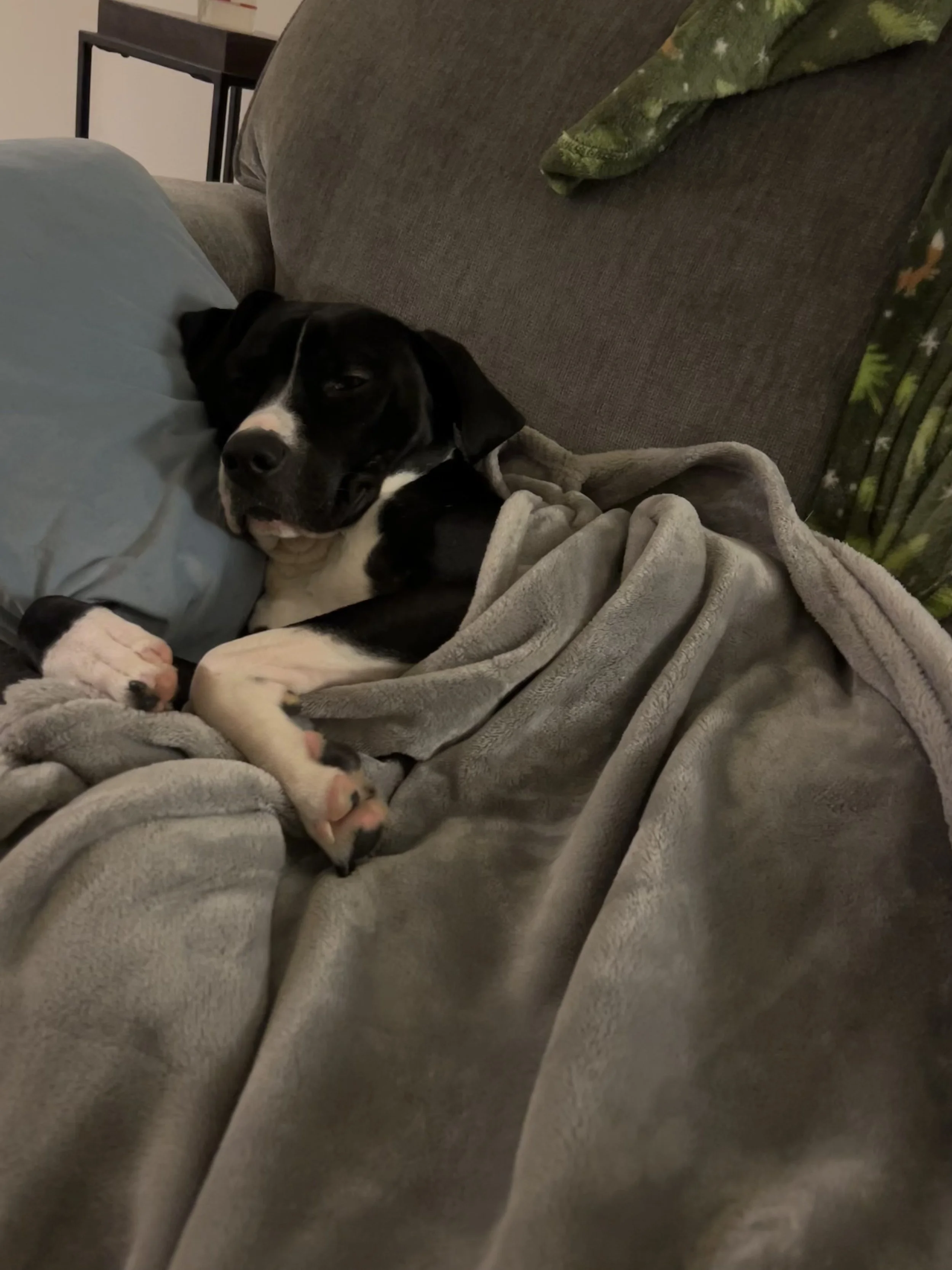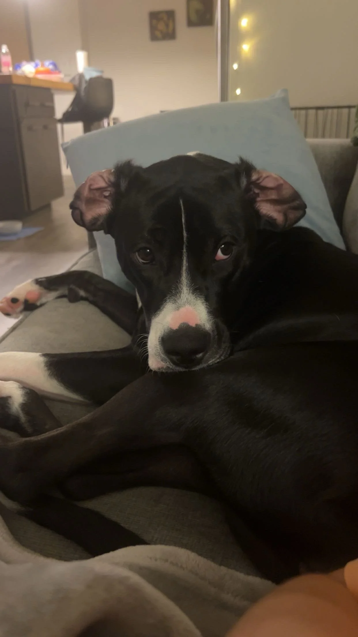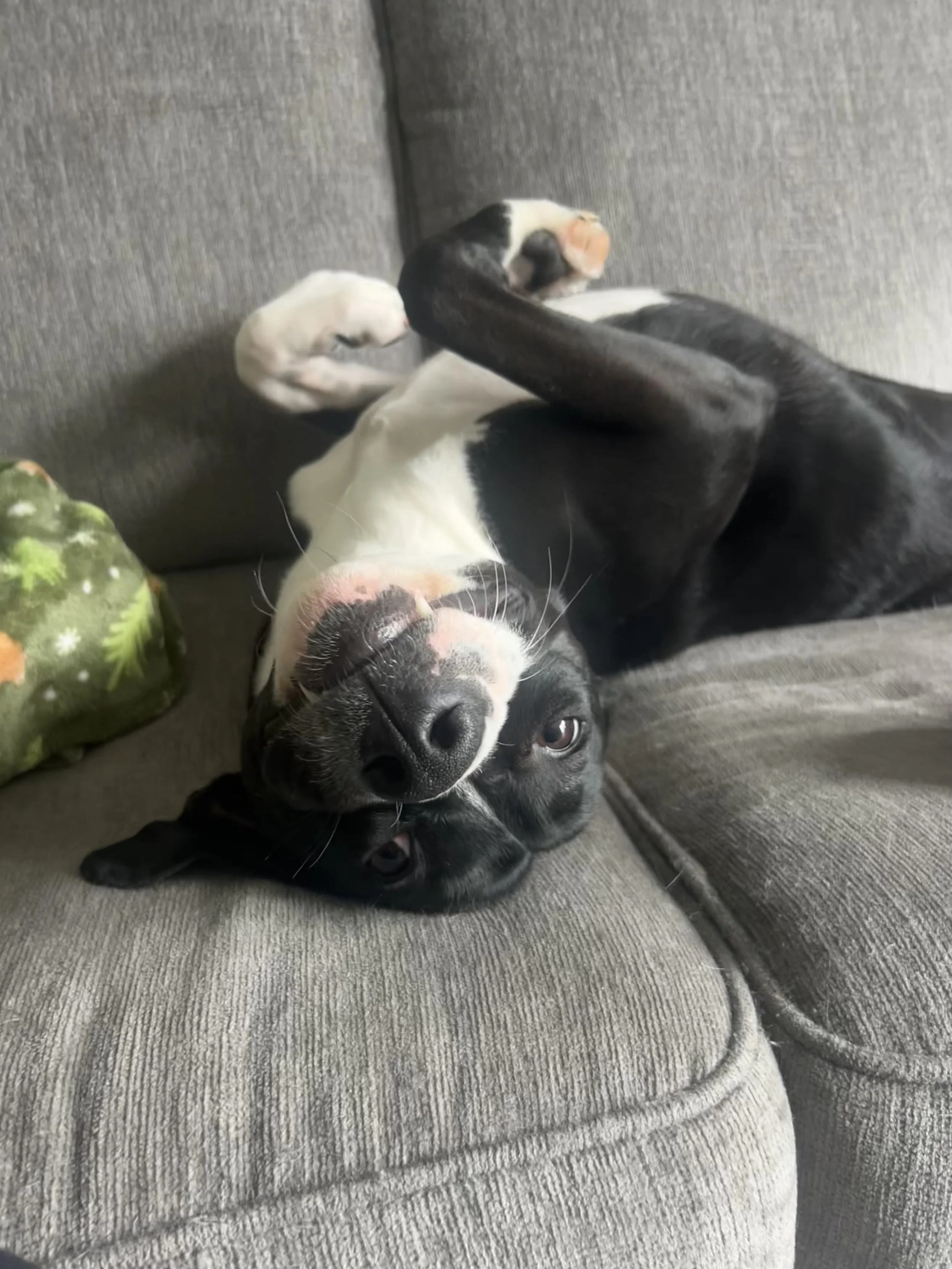 Ms. Tee can be wary of new people and needs slow, respectful introductions. Once she feels safe, she bonds deeply and becomes a devoted cuddle bug. Because of this, she needs an adopter with some experience reading dog body language and the willingness to advocate for her in new or uncomfortable situations. She requires an adults-only home, as young children make her uncomfortable and anxious.
