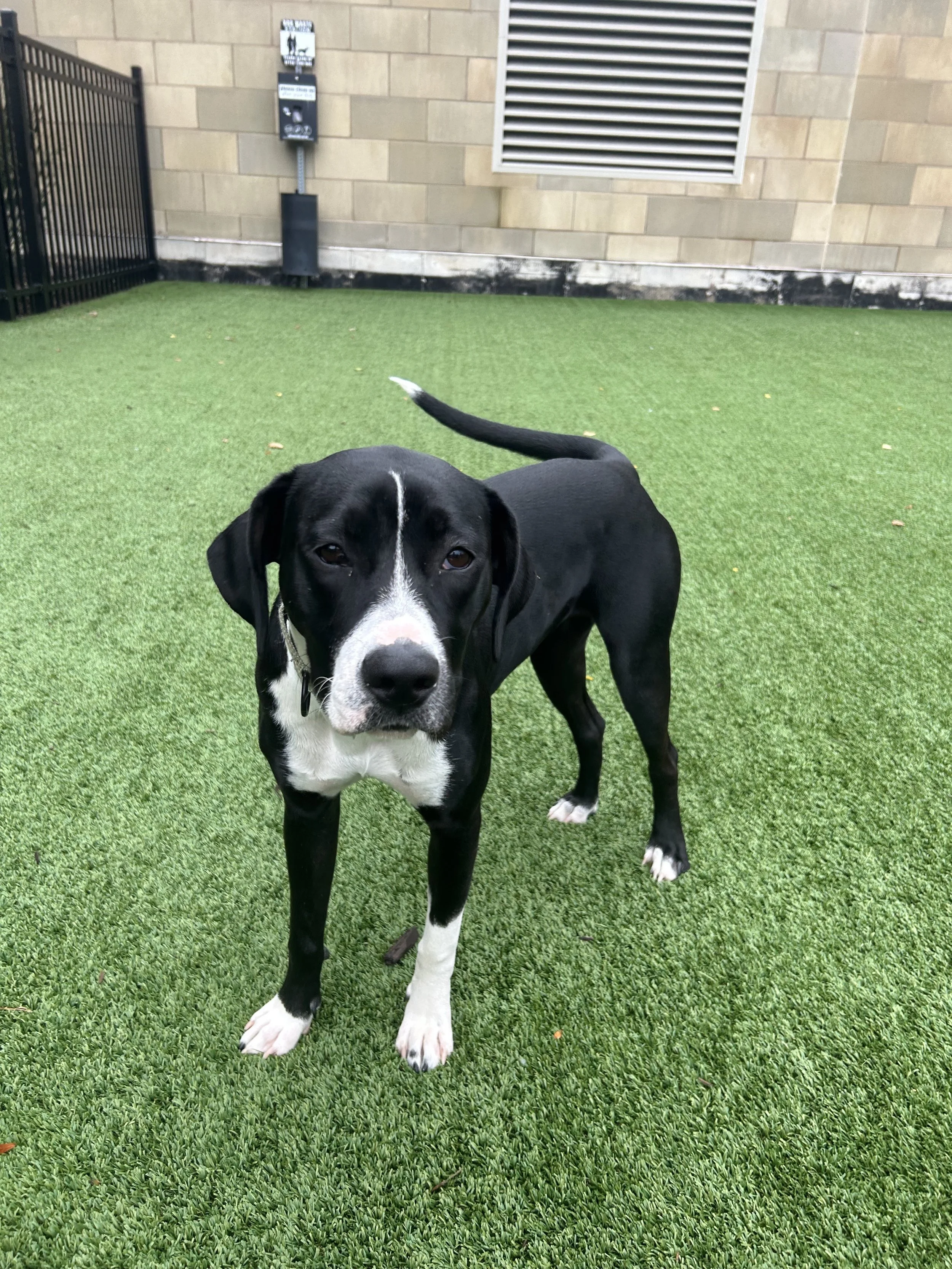 Ms. Tee’s story began on the side of a Texas highway, abandoned in a box as a puppy. Thankfully rescued, she had the unique opportunity to be socialized and trained through a program run by inmates—an experience that helped shape her into the intelligent, intuitive dog she is today. After her stint as a “deputy,” she made her way to Wisconsin, where she’s now searching for her forever home.