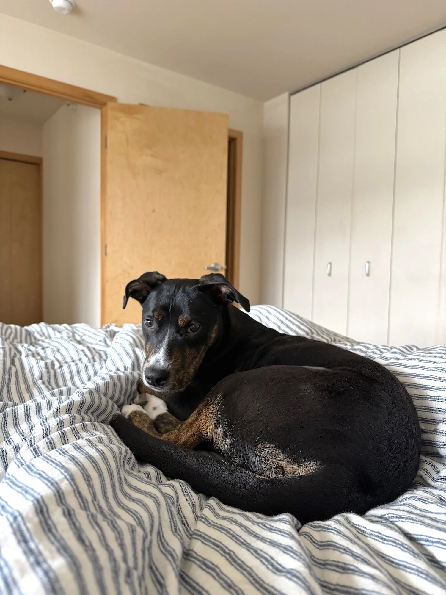 During the day, Pattie happily entertains herself while her foster mom works from home by picking out various toys to run around with to get her energy out, in addition to her daily walks. She also loves taking naps on the couch throughout the day. On walks, she gets especially excited when she spots rabbits or squirrels.