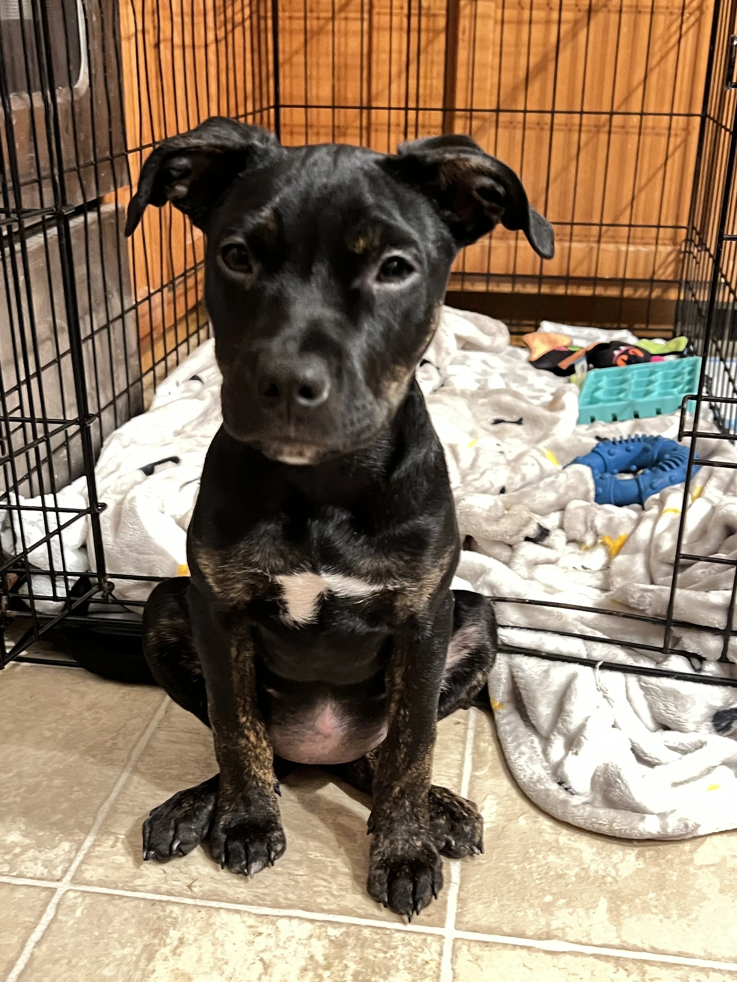 She’s making great progress with her potty training and happily settles into her crate at bedtime 🐾. Penny occasionally still needs one quick trip outside during the night, but she goes right back to sleep without a fuss. She’s perfectly content relaxing in her bed or sitting right next to you, happily watching what you’re doing 💛.