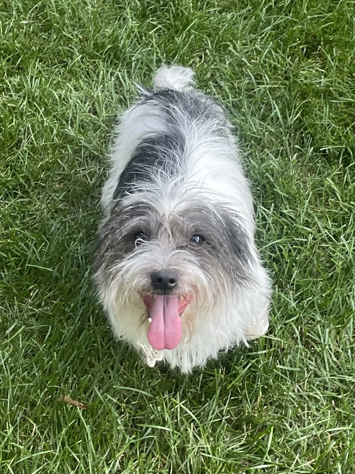 He’s incredibly social and loves making new friends — human, canine, or even feline (he’s very respectful of cats!). He absolutely loves to go for walks; he does pull a bit especially if he sees another dog because he wants to say hi. He also loves to look out for squirrels and rabbits, true to his terrier nature. However he does not try to chase cats — he will give them a friendly sniff and tail wag and then politely ignore them.