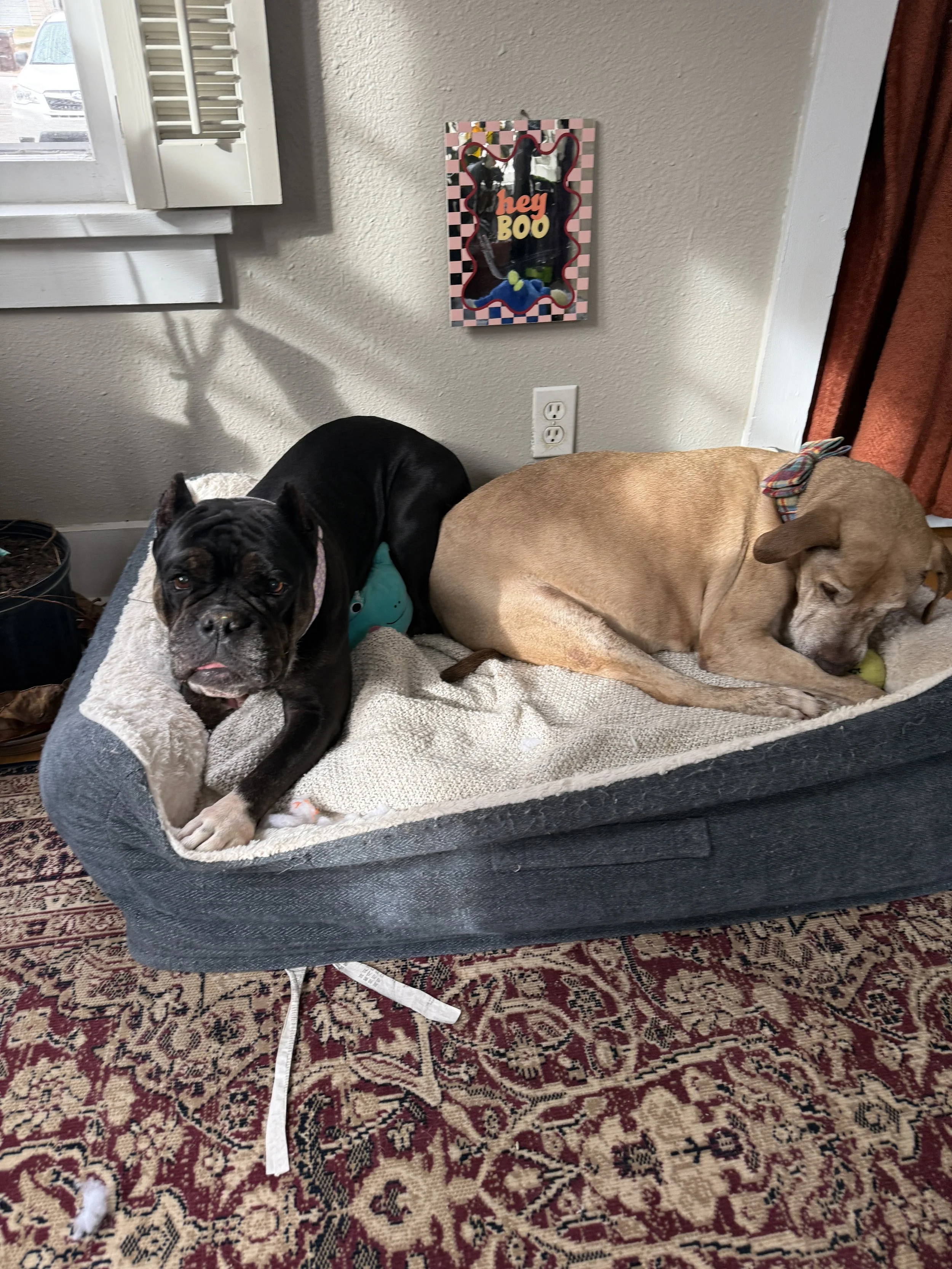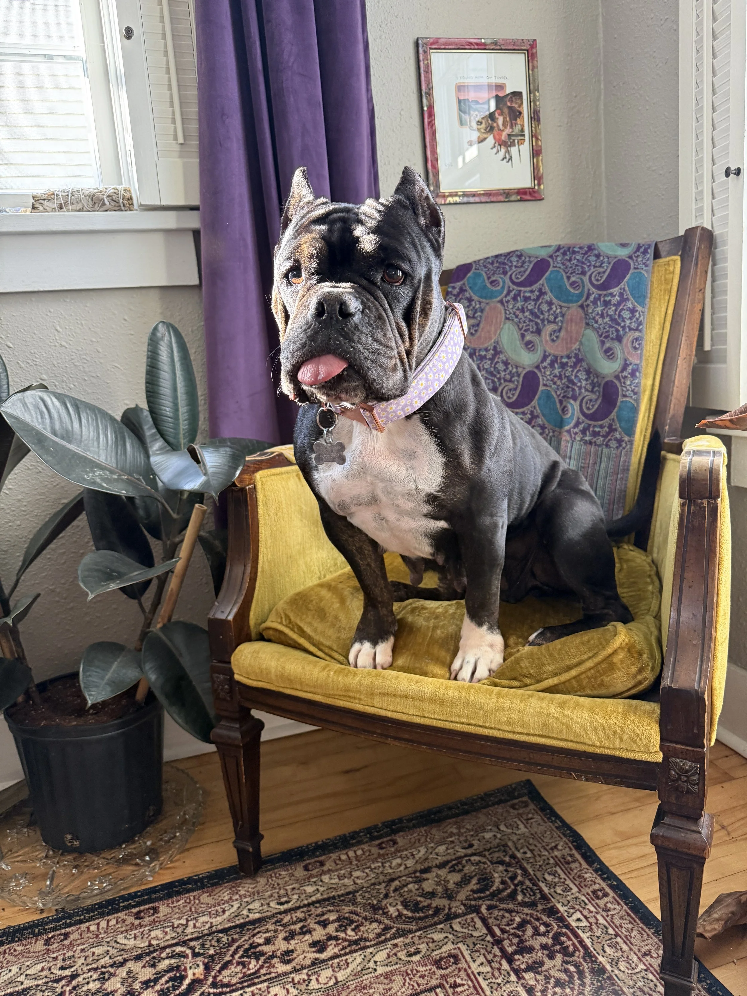 She appears to have been previously used for breeding, with c-section scars and all. Now that she’s an empty nester, she’s hoping to get back into walks, naps, and snuggles! She loves to cuddle up next to while you watch your stories & provides healing hugs. She’s very adaptable to various home environments; whether you have a busy life or a calm life, she just wants to be part of it.