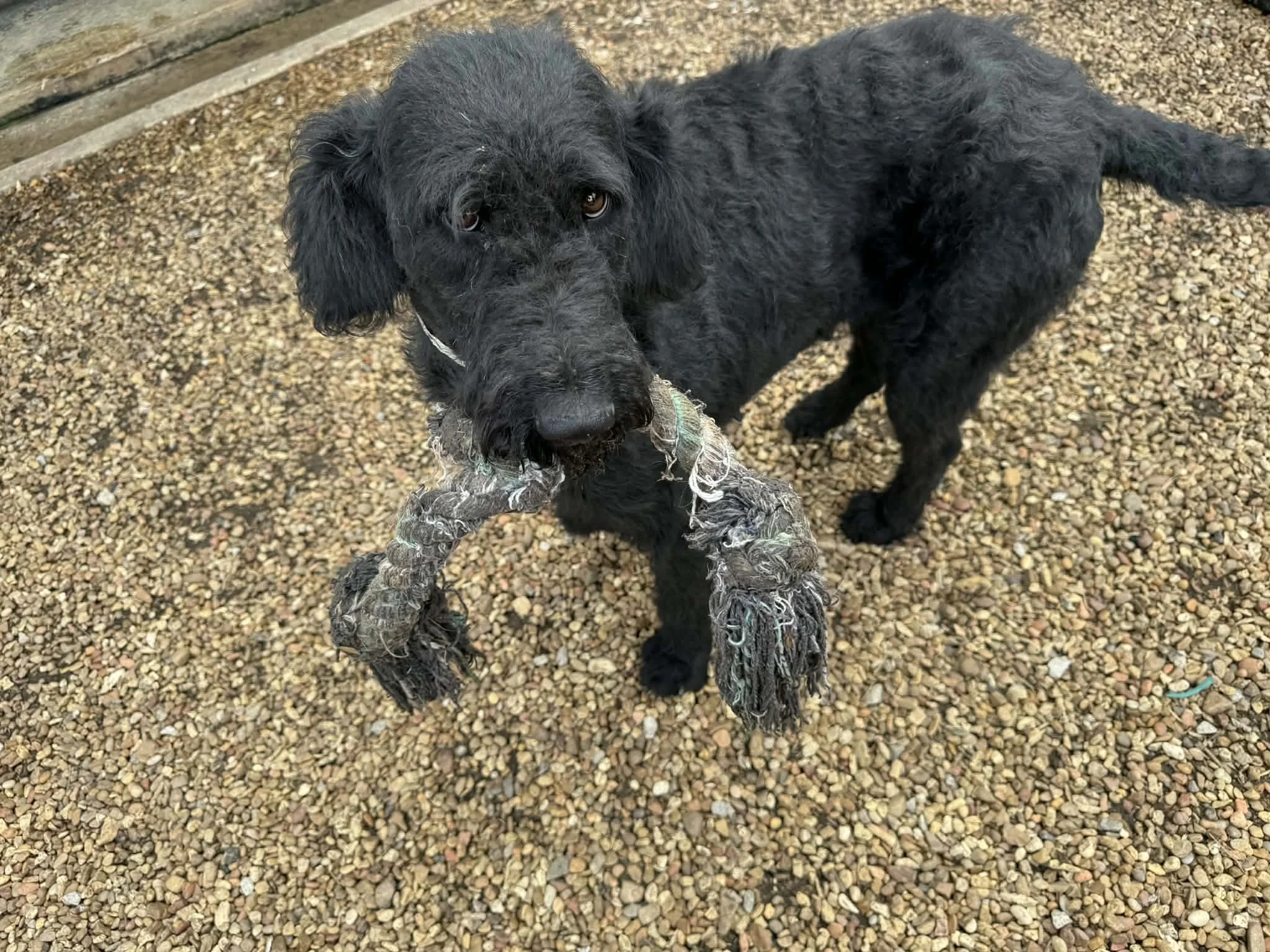 QUICK FACTS: 🐕Dog friendly 🤔Unknown with cats 🤔Unknown with kids 💤Crate trained 🏠House trained 🧸Loves to play 😀Friendly