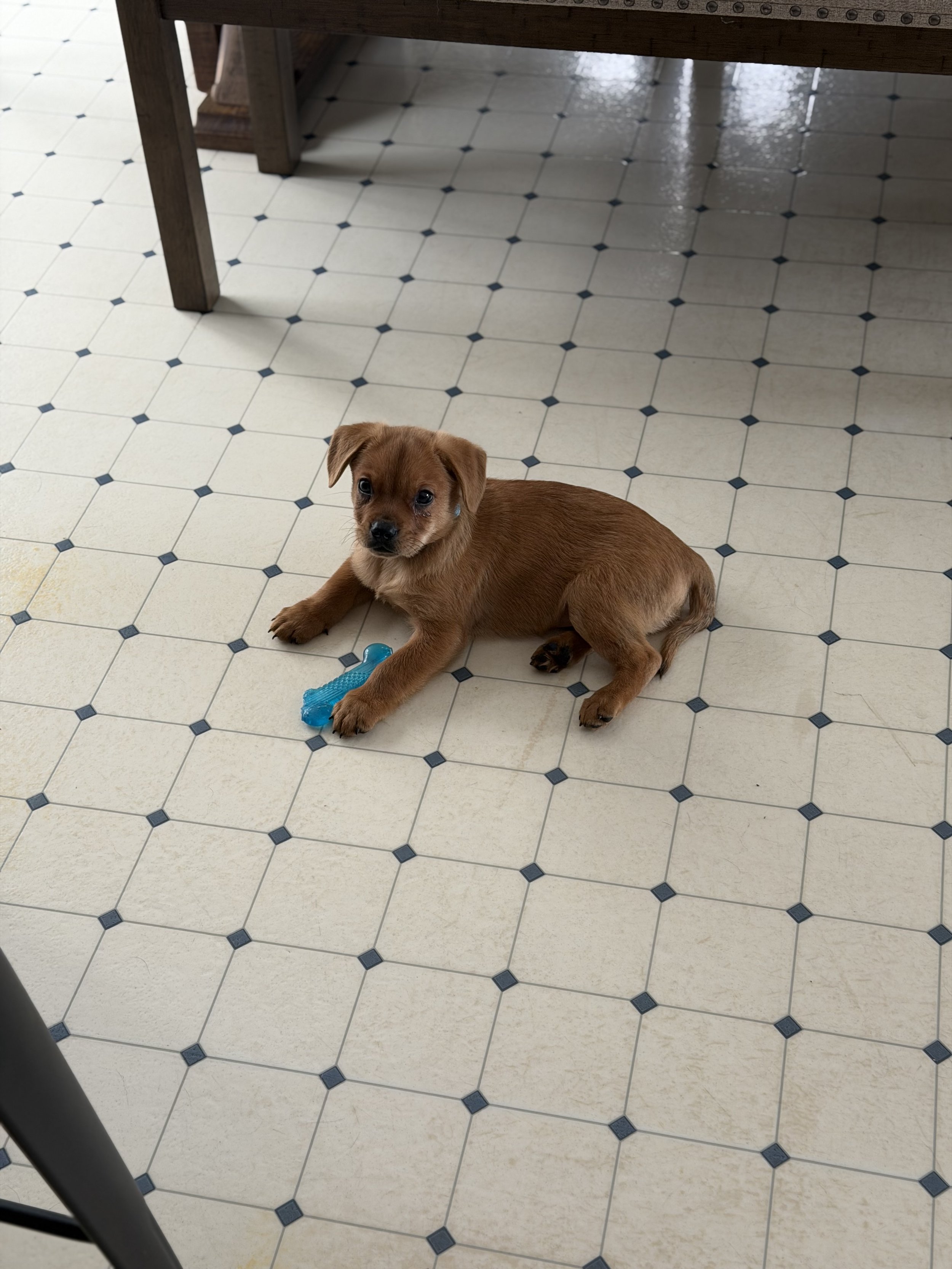 Ribbon is crate trained and sleeps 8+ hours through the night without disturbing his people. He enjoys kids of all ages and happily tags along with them wherever they go. This easygoing guy is a great fit for almost any household—low maintenance, eager to please, and full of laid-back charm.
