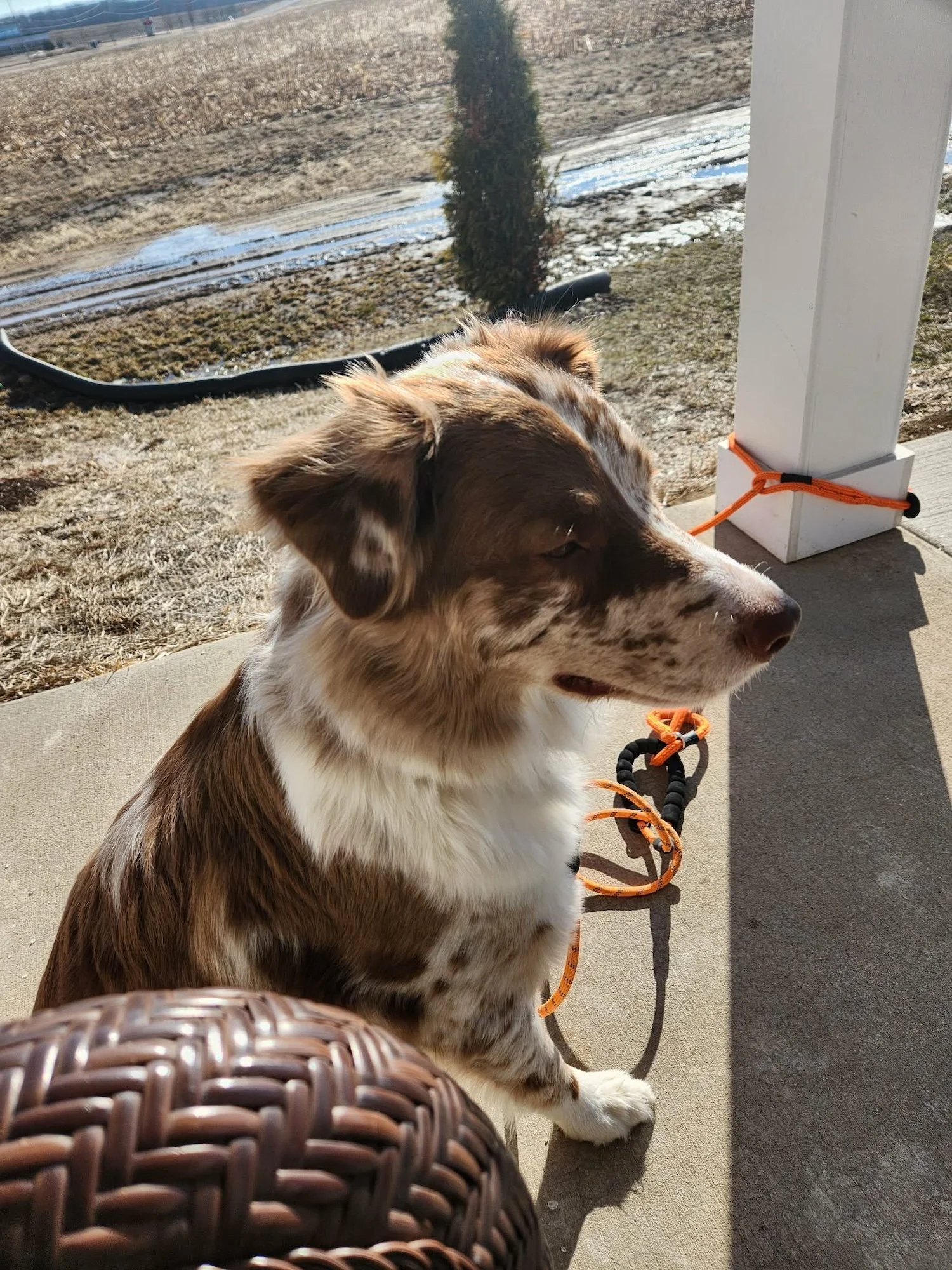 Meet Roamy! True to her name, her favorite thing is to roam around the yard, exploring and investigating all the interesting things. She also loves to find a patch of sun and lounge in it! She walks well on a leash but is happiest when she can run and explore. She can walk nicely on a leash but that is clearly not her preferred way to get exercise! At the end of the day, she loves to sit with her people on the couch, getting all the snuggles she can. She is very smart and knows basic commands. She loves car rides and just being part of whatever is going on!
