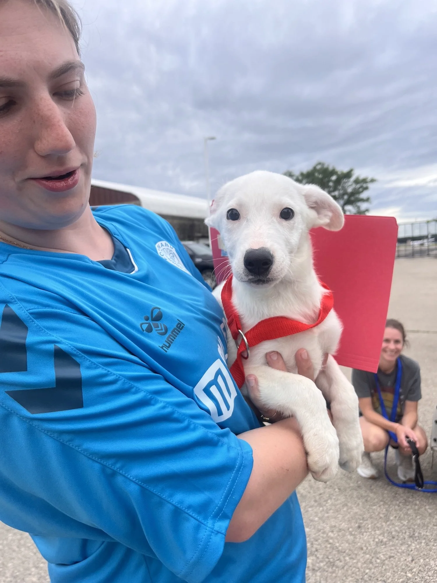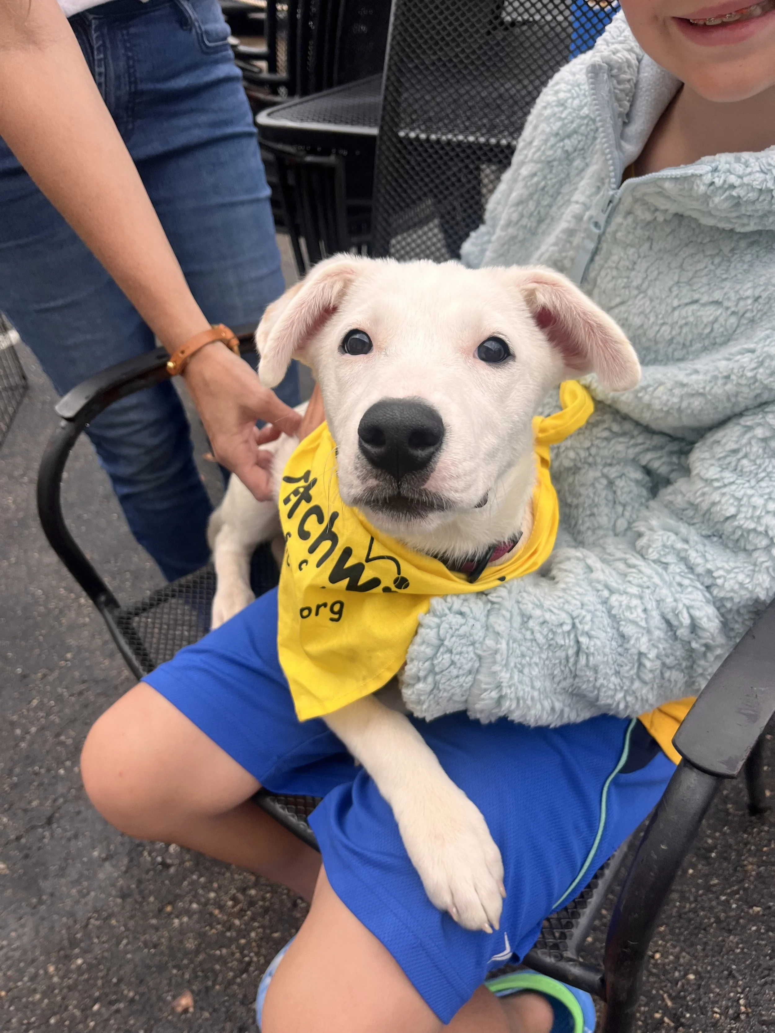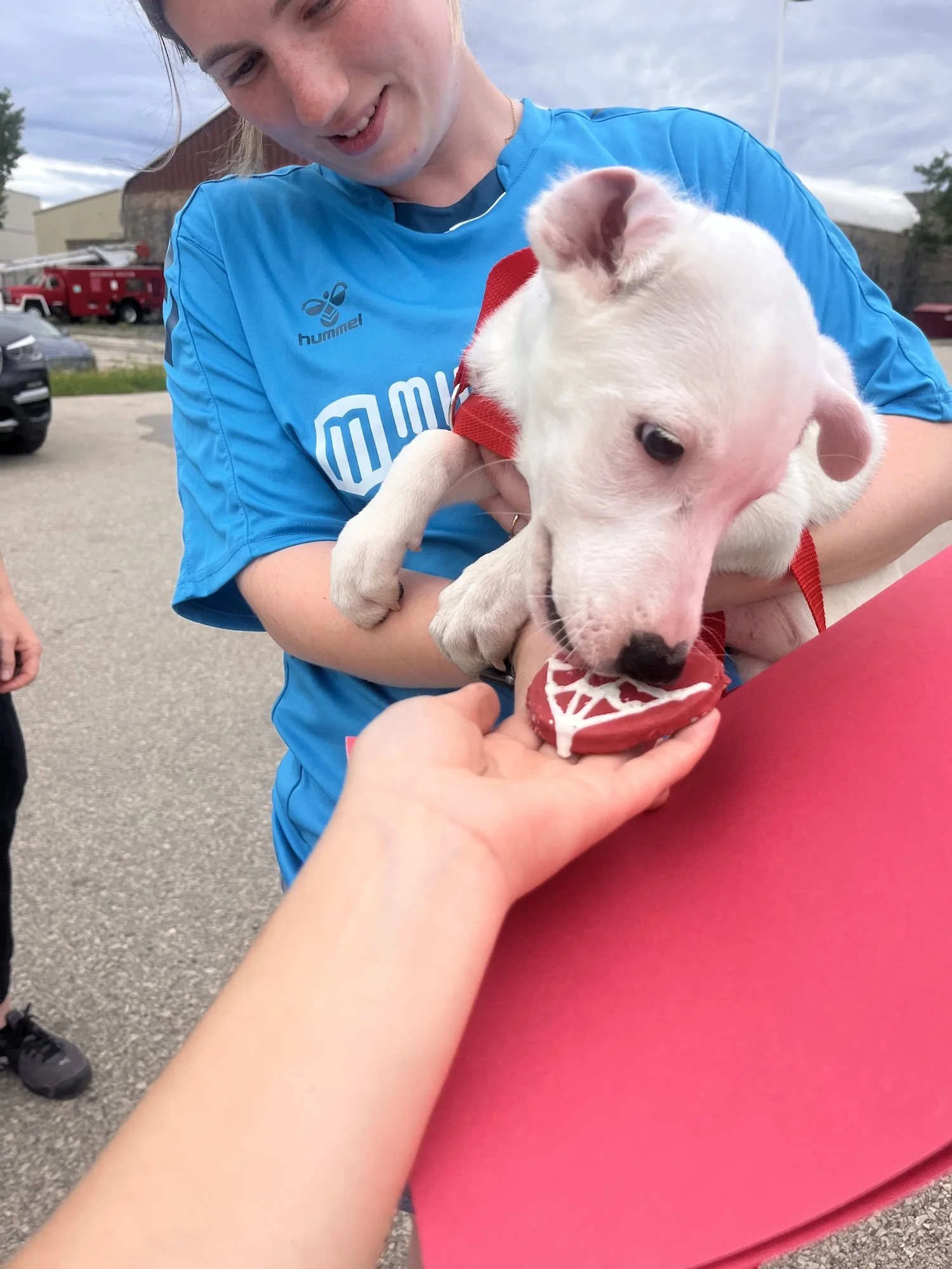 At night, Rose happily sleeps in her crate and gives her foster family a full night's rest (what a gift!). She's getting the hang of potty training — she mostly goes outside but still has the occasional accident if she’s not taken out quickly enough. That’s puppy life for you! She's food-motivated, which makes training easier — especially when treats are involved (she’s a big fan of mealtime).
