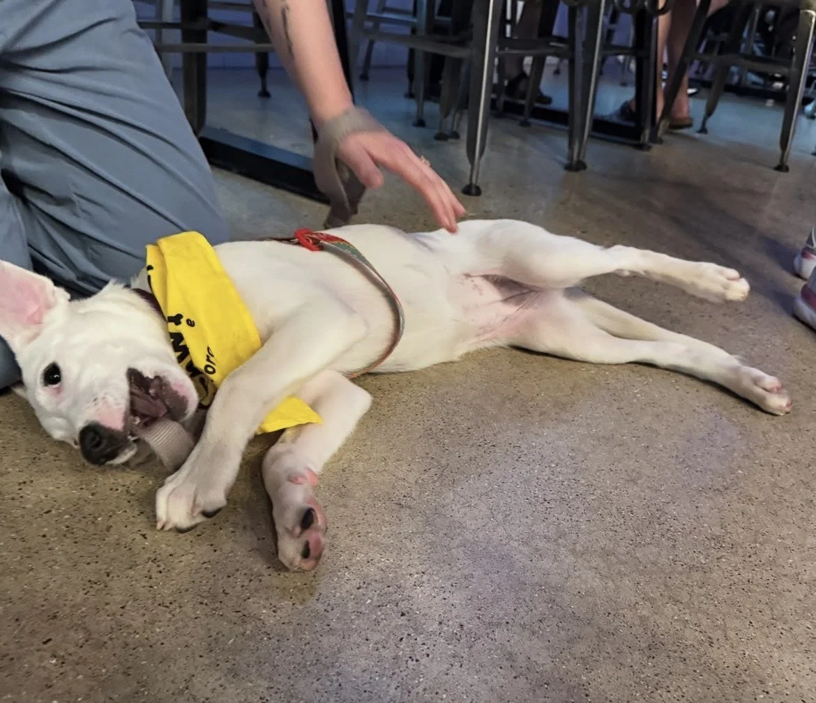 Rose is your classic, fun-loving puppy — full of energy, curiosity, and endless affection. She's been living in a foster home with two other dogs and fits right in. Playtime is her love language, and she’s always up for a romp or a cuddle pile. She's also doing great with her foster family's cat — respectful and friendly, even if she doesn’t totally get why the cat isn’t as into playtime.