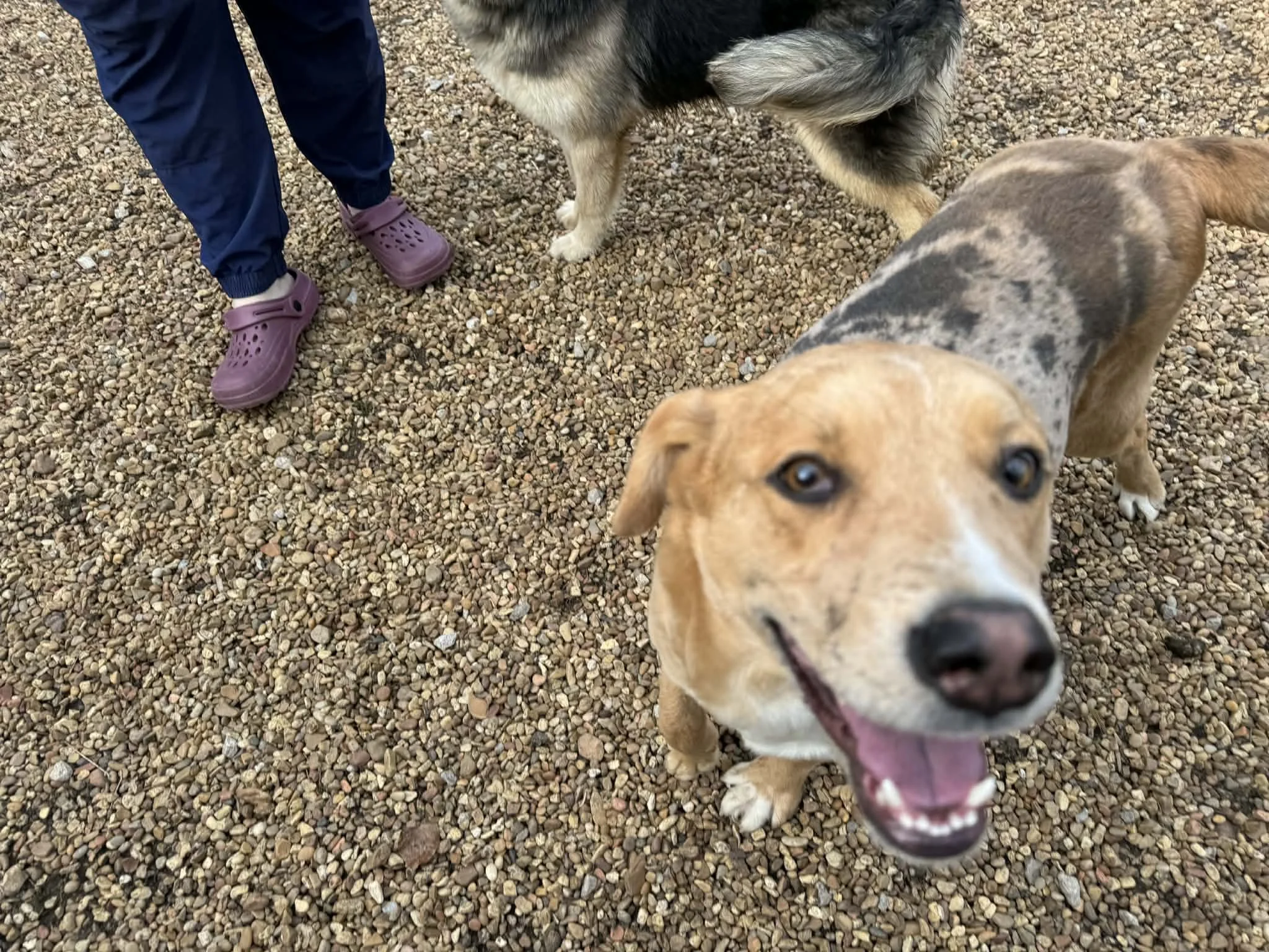 QUICK FACTS: 🐕Dog friendly 🤔Unknown with cats 🤔Unknown with kids 💤Crate trained 🏠House trained 🐕🦺Walks well on leash 🧸Loves to play 😀Friendly