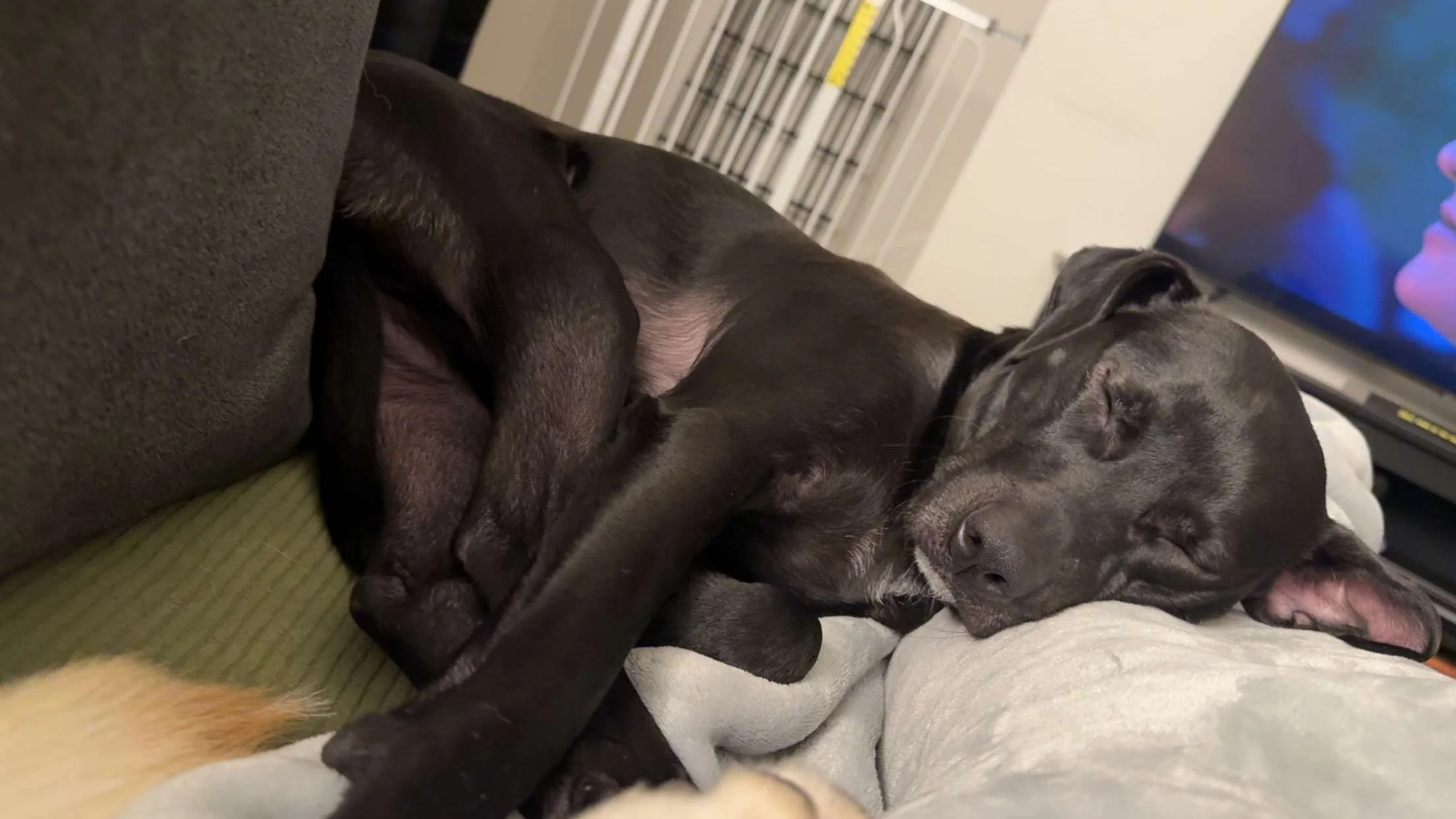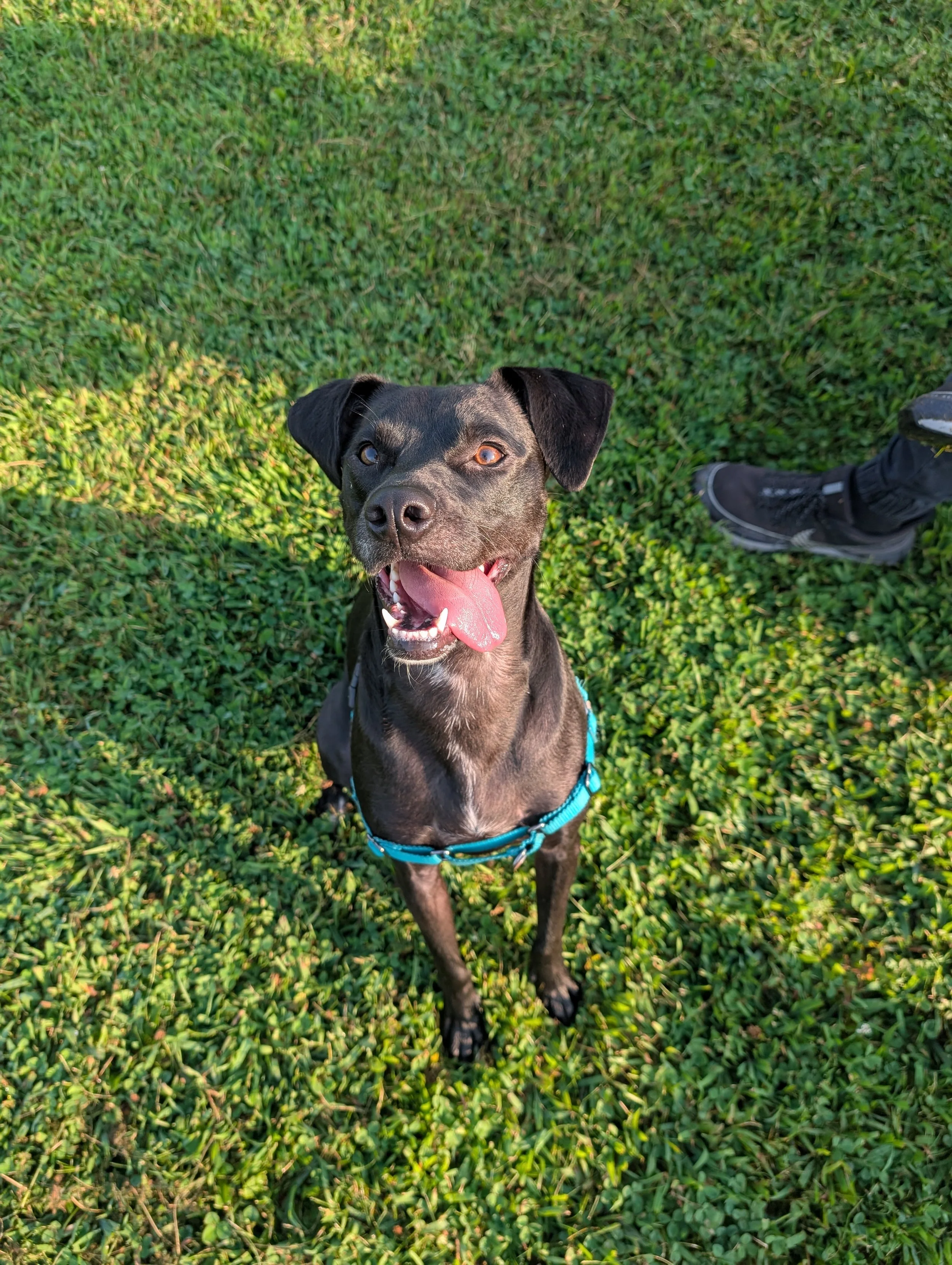 Sunny is a sweet, affectionate girl who forms strong bonds with her people and loves cozy couch time just as much as playful zoomie moments. She has a medium-to-high energy personality with a fun, goofy side and especially enjoys squeaky stuffed toys she can proudly “de-stuff.”