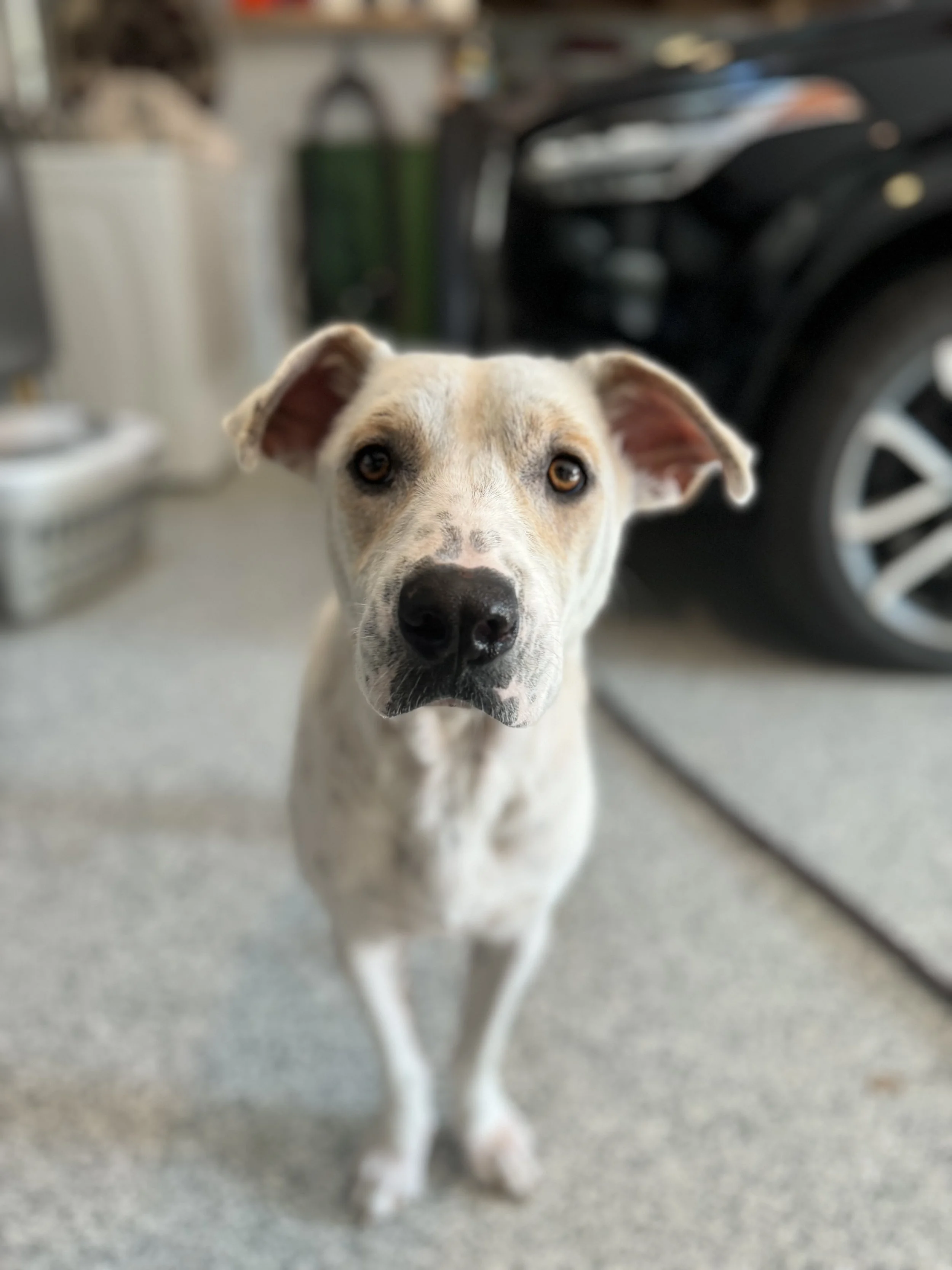 She has done will with dogs prior to coming to Fetch, and has been nothing but a lady while greeting our crazy resident dogs at the fence line. She’s the definition of mellow.